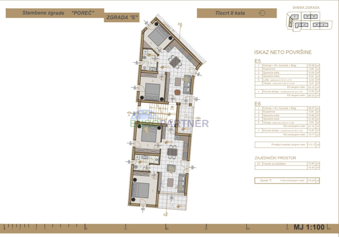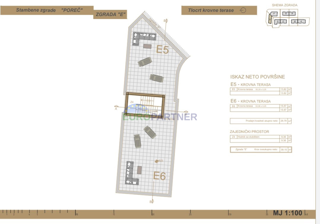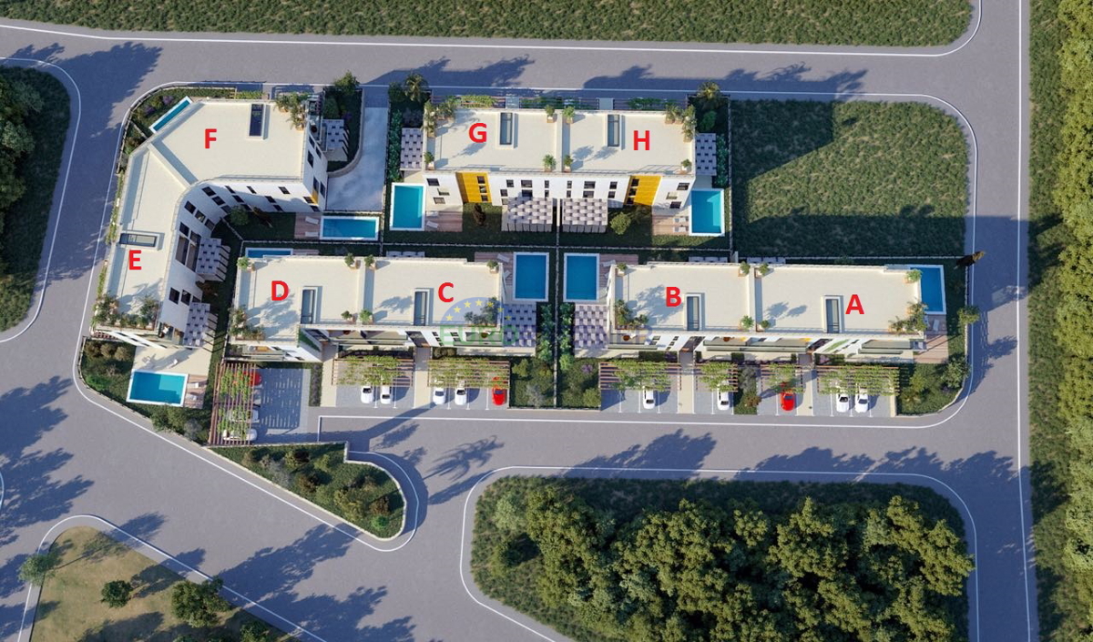 New project with two modern buildings not far away from Center of City Poreč, every building has six apartments. Each building consists of a ground floor, first floor, second floor and roof terrace. In our offer we have apartments from 45 m2 to 100 m2, ea