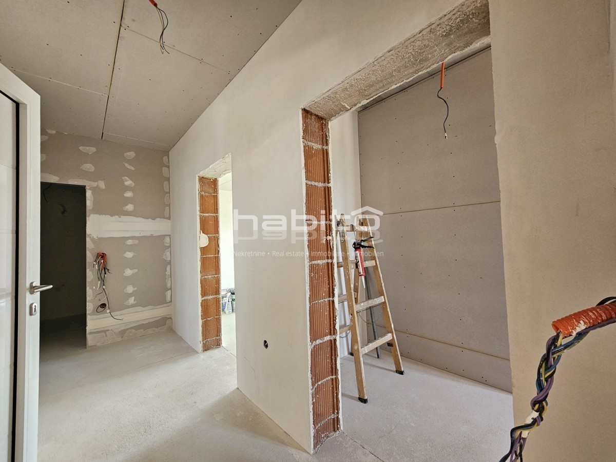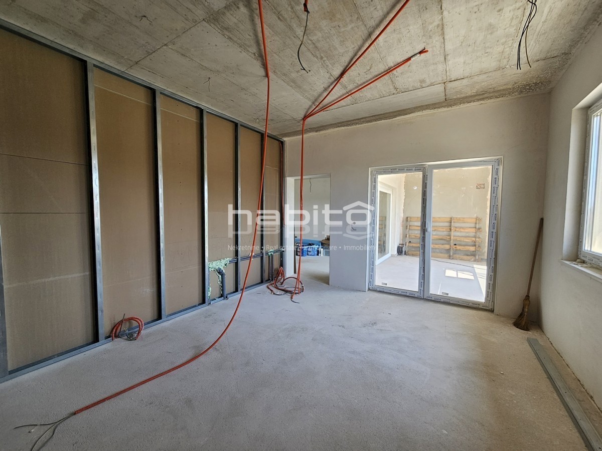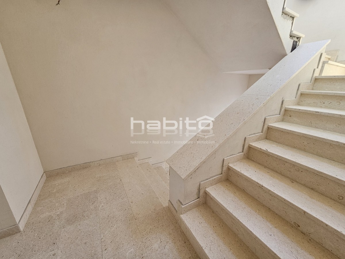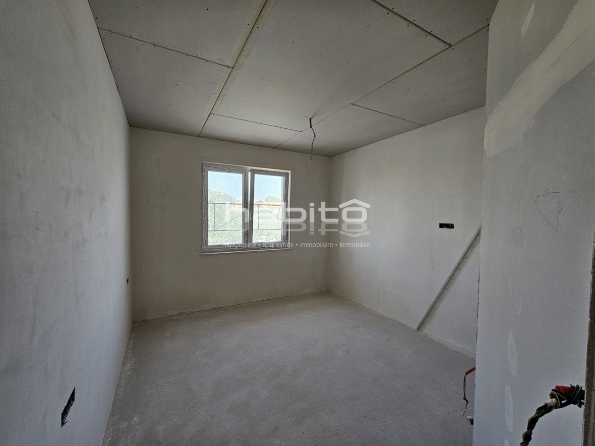 Apartment for sale on the 1st floor of a newly built building in Porec, 2 km from the center and only 600 m from the beach and a handful of restaurants and accompanying facilities. The apartment of 110 m2 contains 3 bedrooms with their own bathrooms, kitc