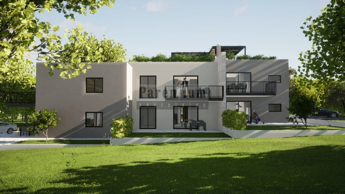 Istria, Poreč - NEW BUILDING An apartment in a new building is for sale a few kilometers from the sea and the city of Poreč. The apartment consists of an entrance, toilet, living room with dining room and kitchen, utility room, two bedrooms and a bathroo