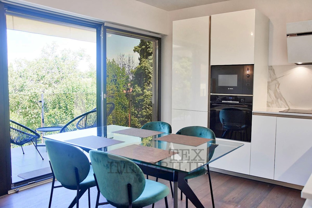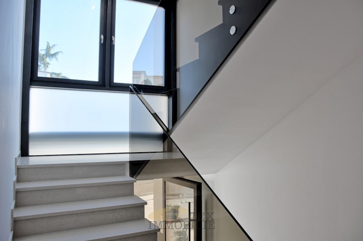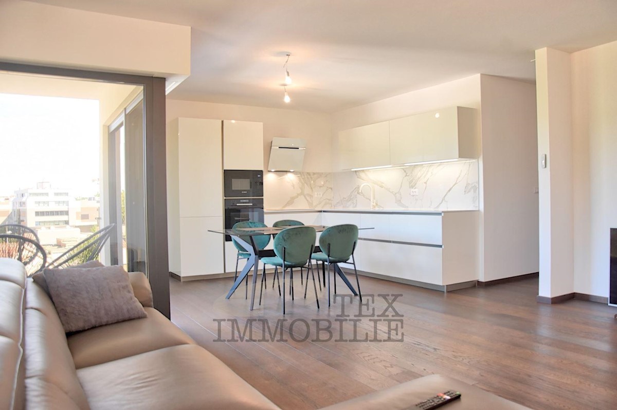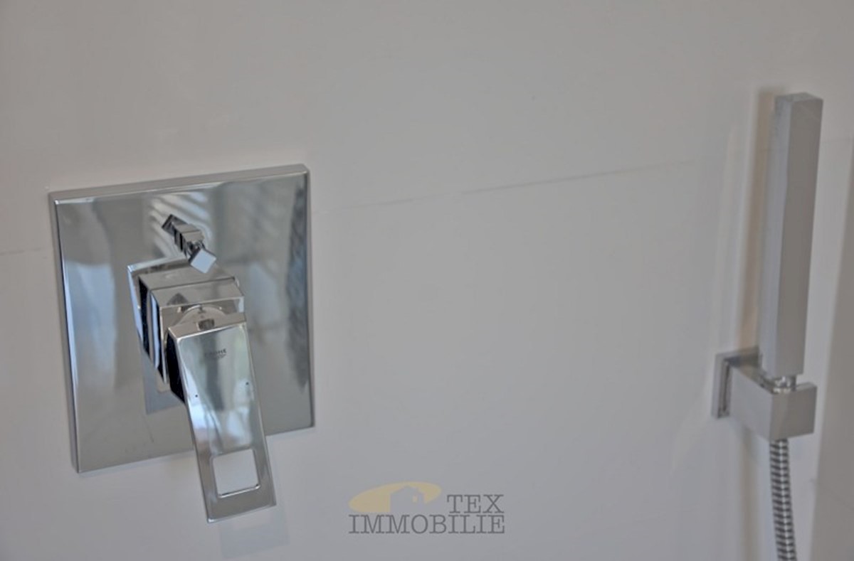 Luxurious apartment of (78.17 m2 apartment + 19.28 m2 storage and parking in the garage + 13.50 m2 outdoor parking) is for sale in a modern new building on the 1st floor of the highest quality in an exclusive location in Porec, 200 m from the sea and the