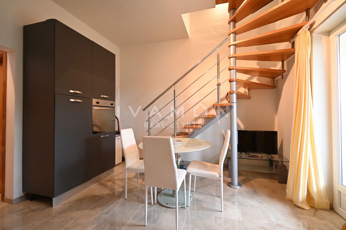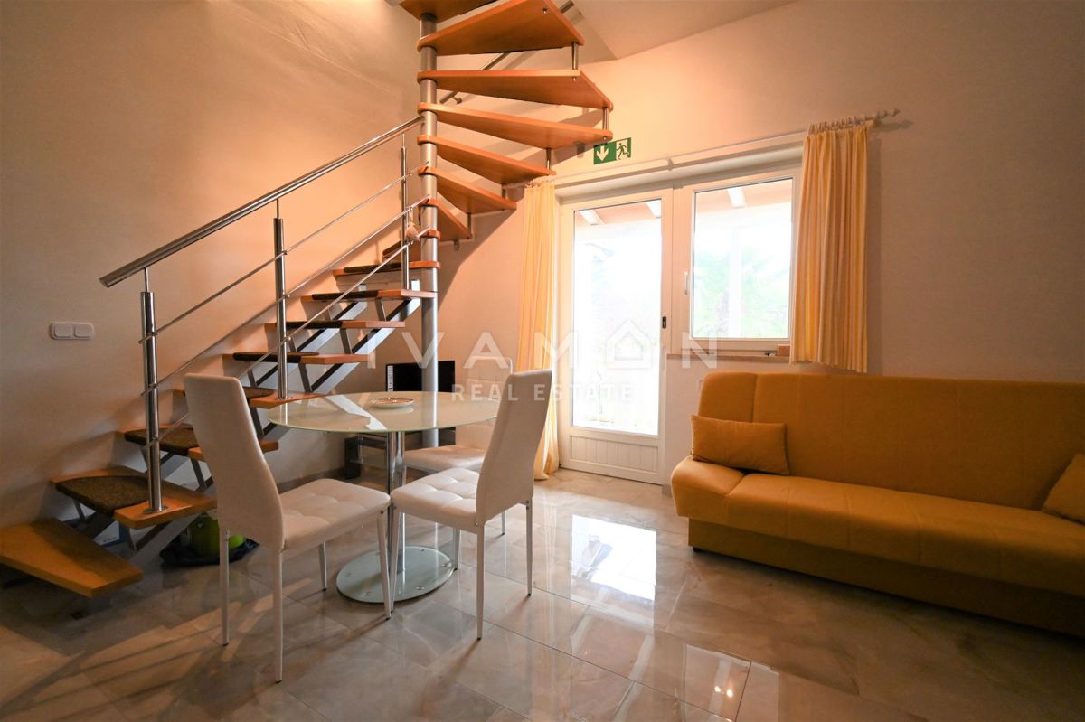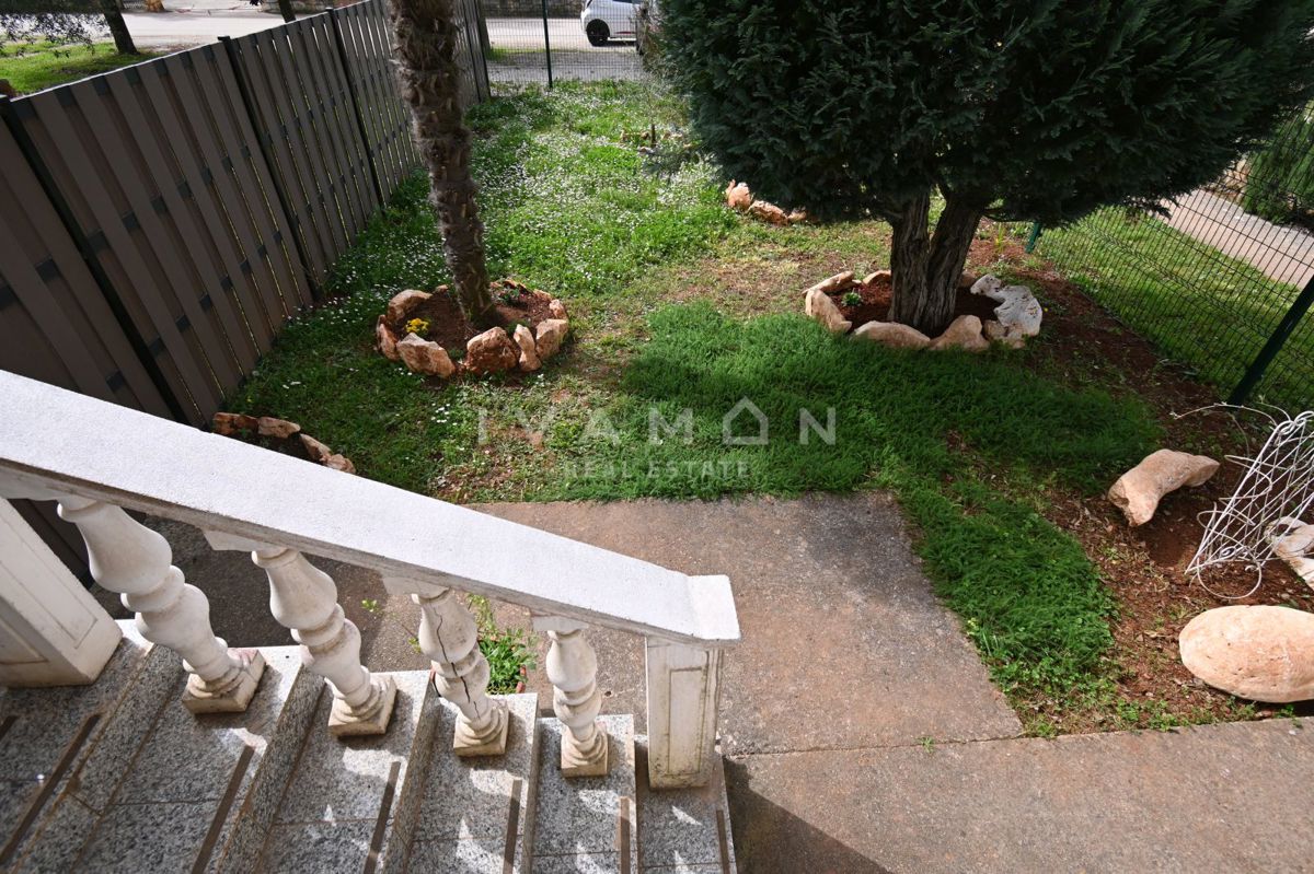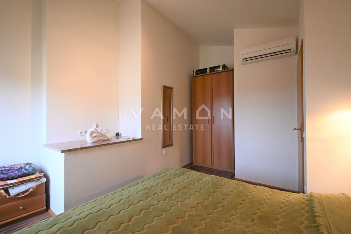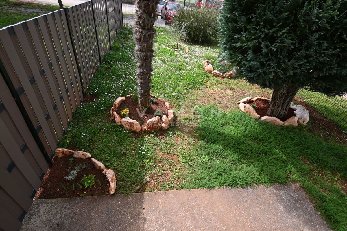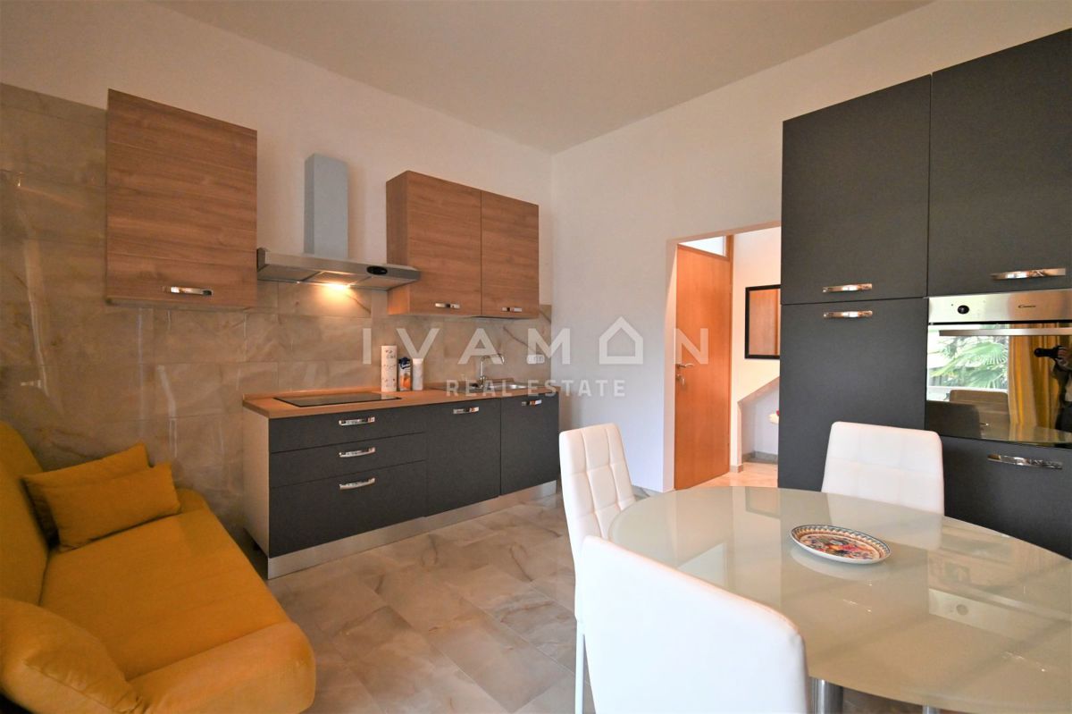 Not far from the center of Poreč, at a distance of 2 km from the beach, a renovated apartment on the ground floor of a residential building is for sale. The apartment has an area of 50 m2, spread over two floors. On the ground floor there is a living r