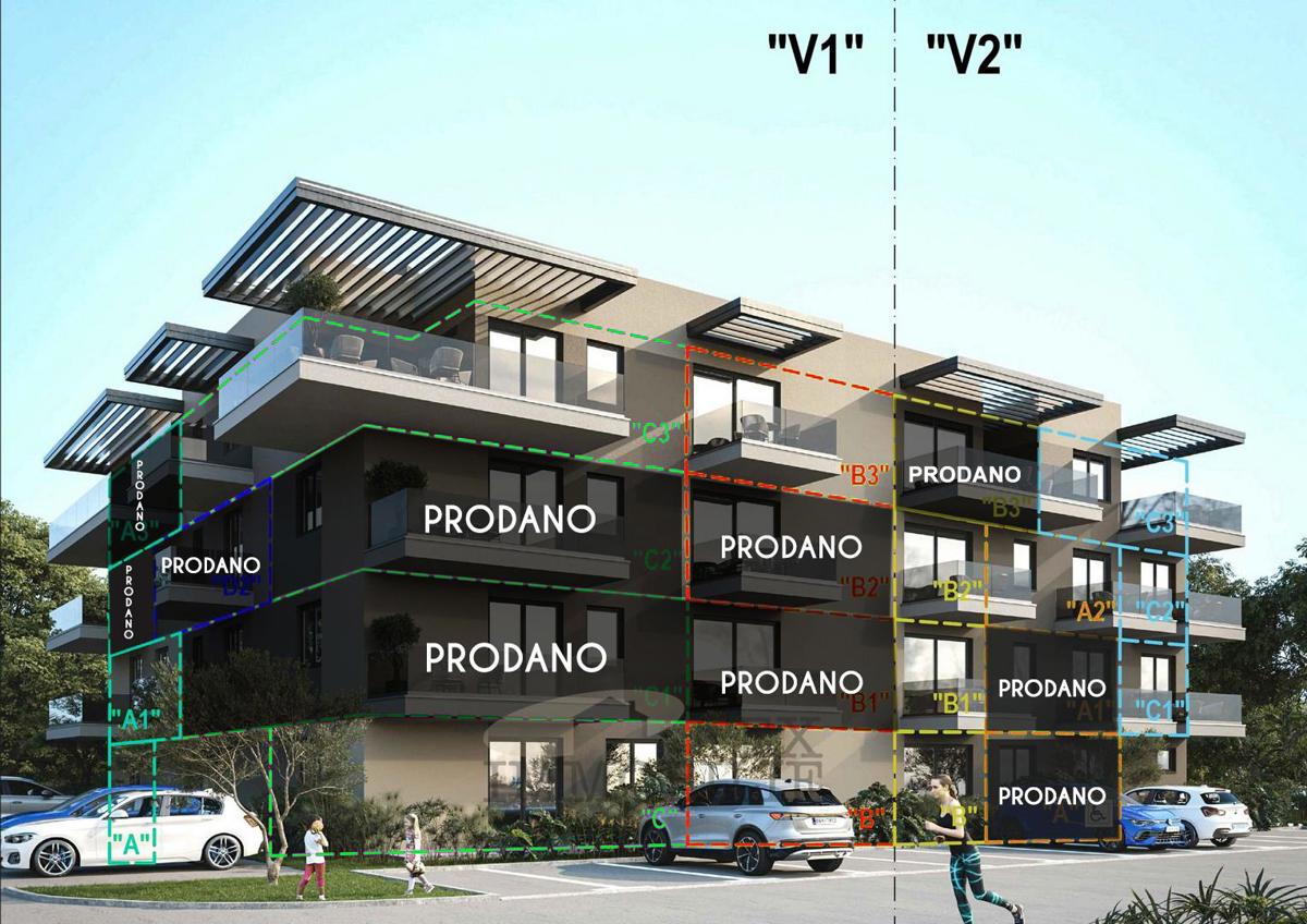 Apartments for sale in a quality new building in a town near beautiful Poreč. They are only 1,300 meters away from a beautiful pebble beach with a gentle entrance to the sea, which attracts many swimmers, especially families with children. The modern mult