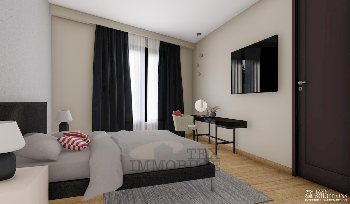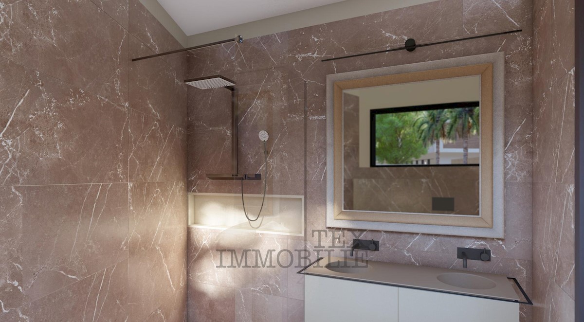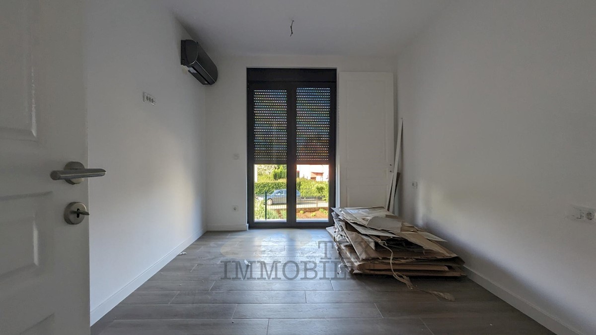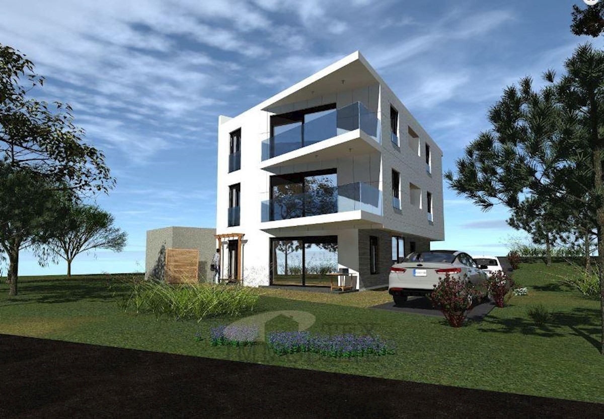 An apartment on the ground floor of a small-residential building near the sea and beautiful beaches is for sale. The apartment consists of two bedrooms, a living room, a kitchen with a dining area, two bathrooms, a terrace, and a storage room. The apartme