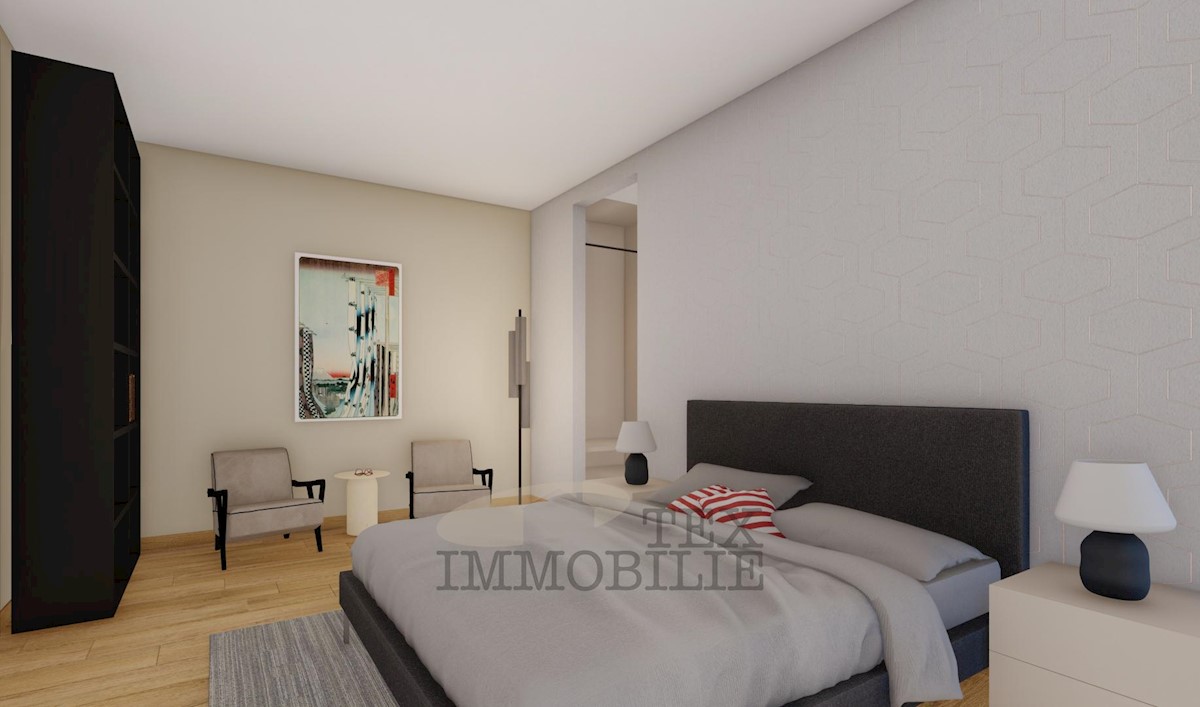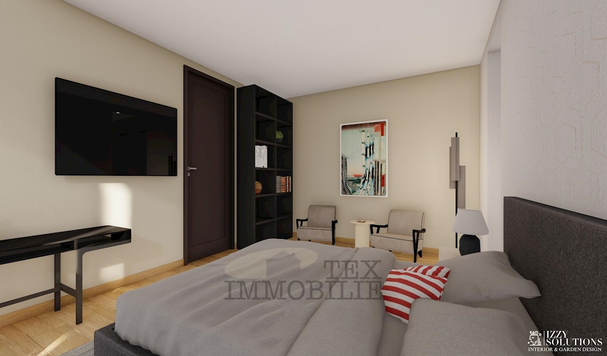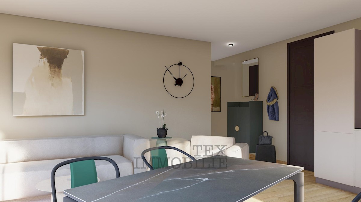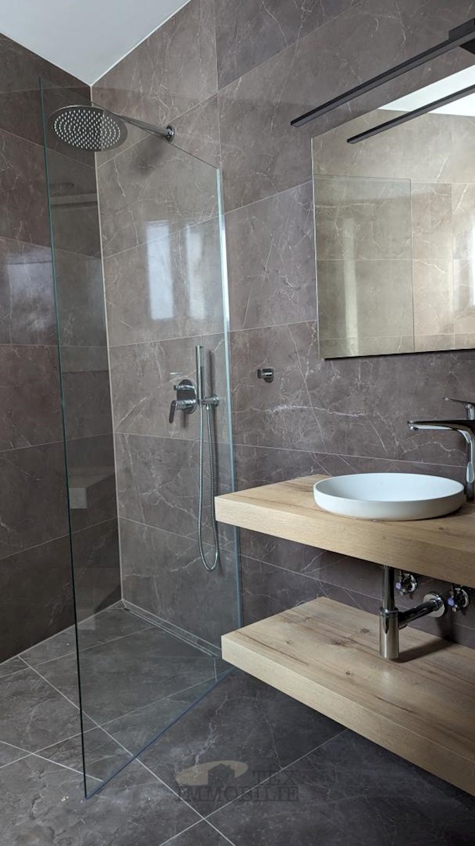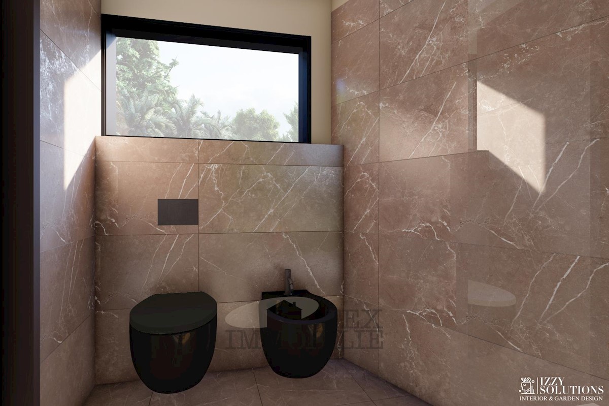 An apartment on the ground floor of a small-residential building near the sea and beautiful beaches is for sale. The apartment consists of two bedrooms, a living room, a kitchen with a dining area, two bathrooms, a terrace, and a storage room. The apartme