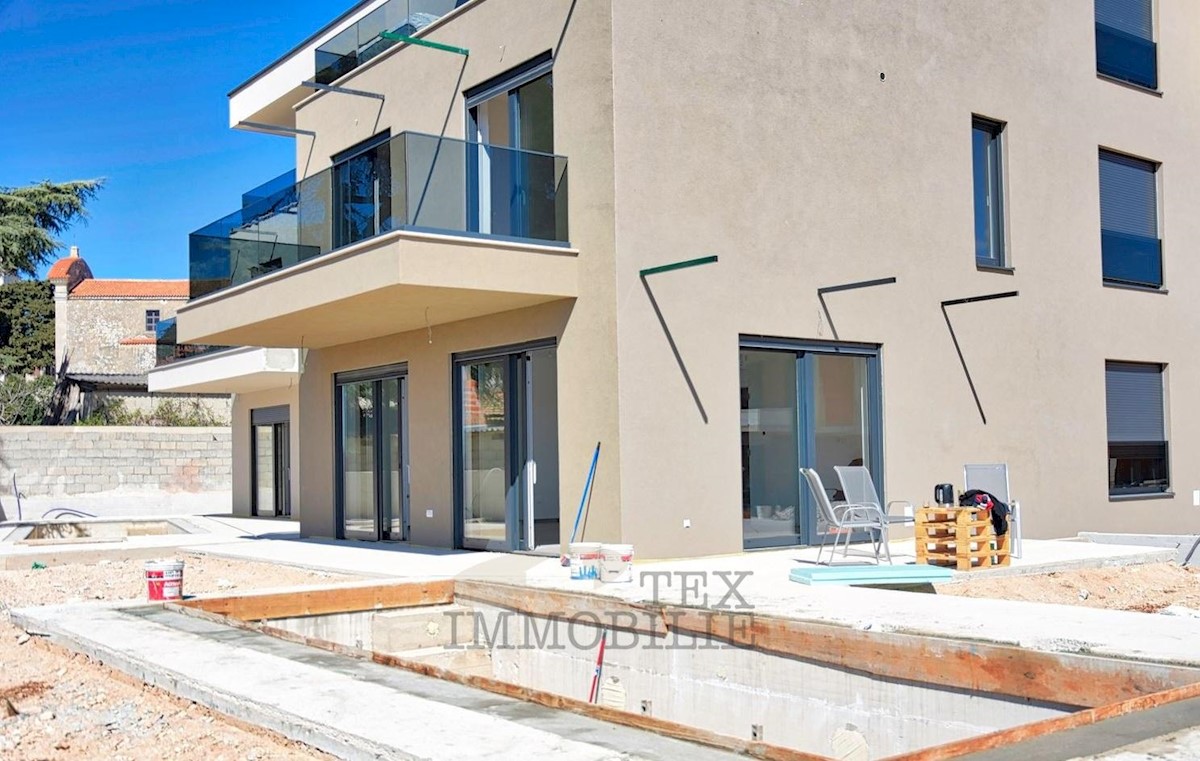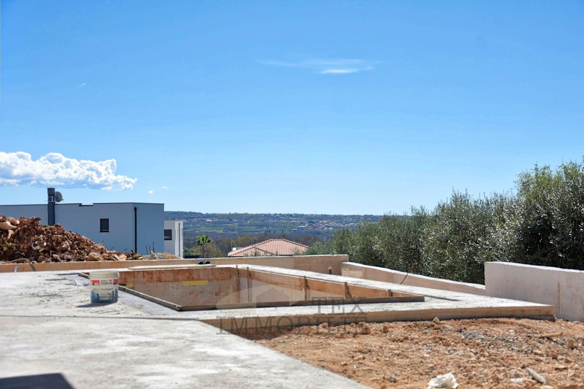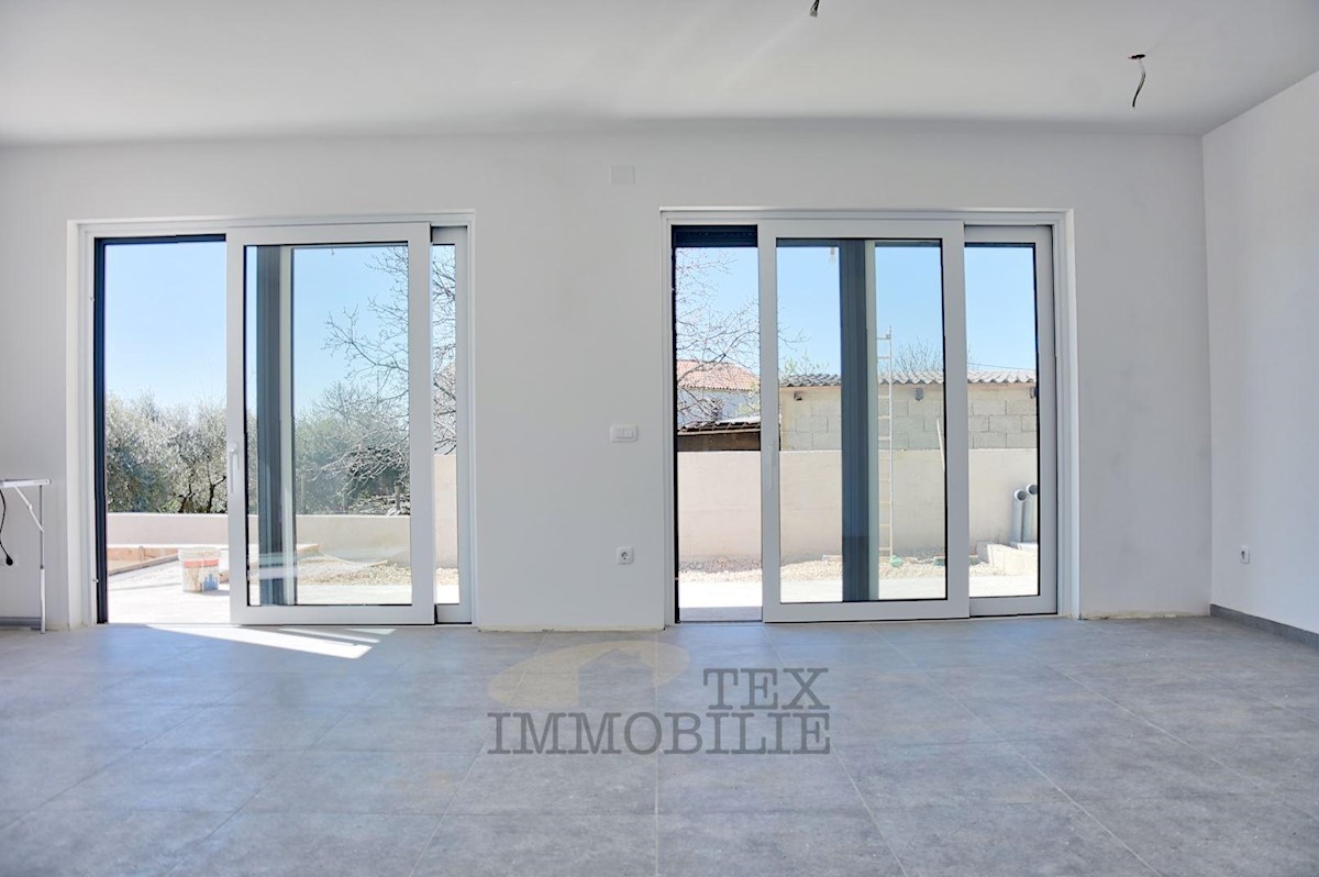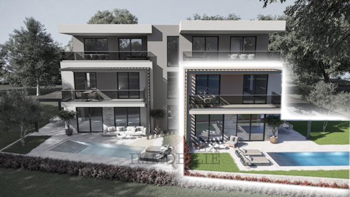 A new apartment under construction is for sale in the town of Tar near Poreč, at a distance of 3 km from the sea. The building is designed as a residential multi-apartment building with a total of 4 apartments. The apartment on the ground floor consists o