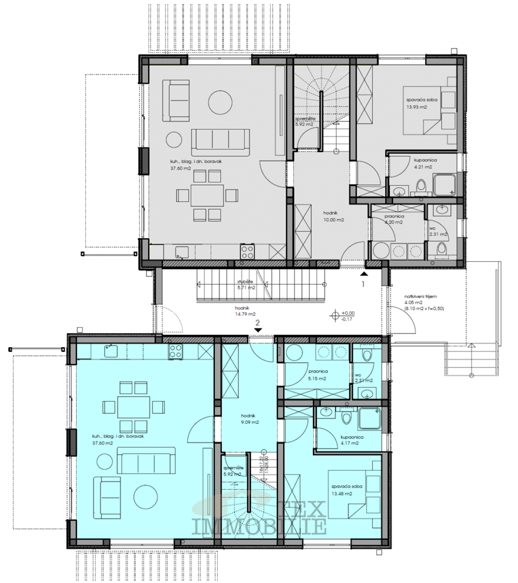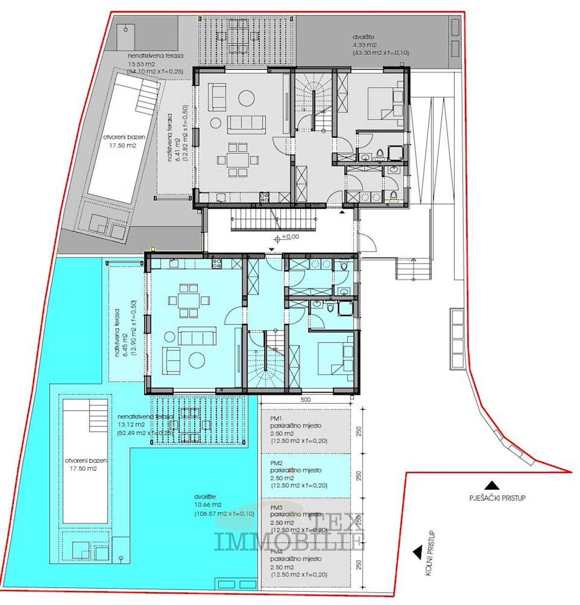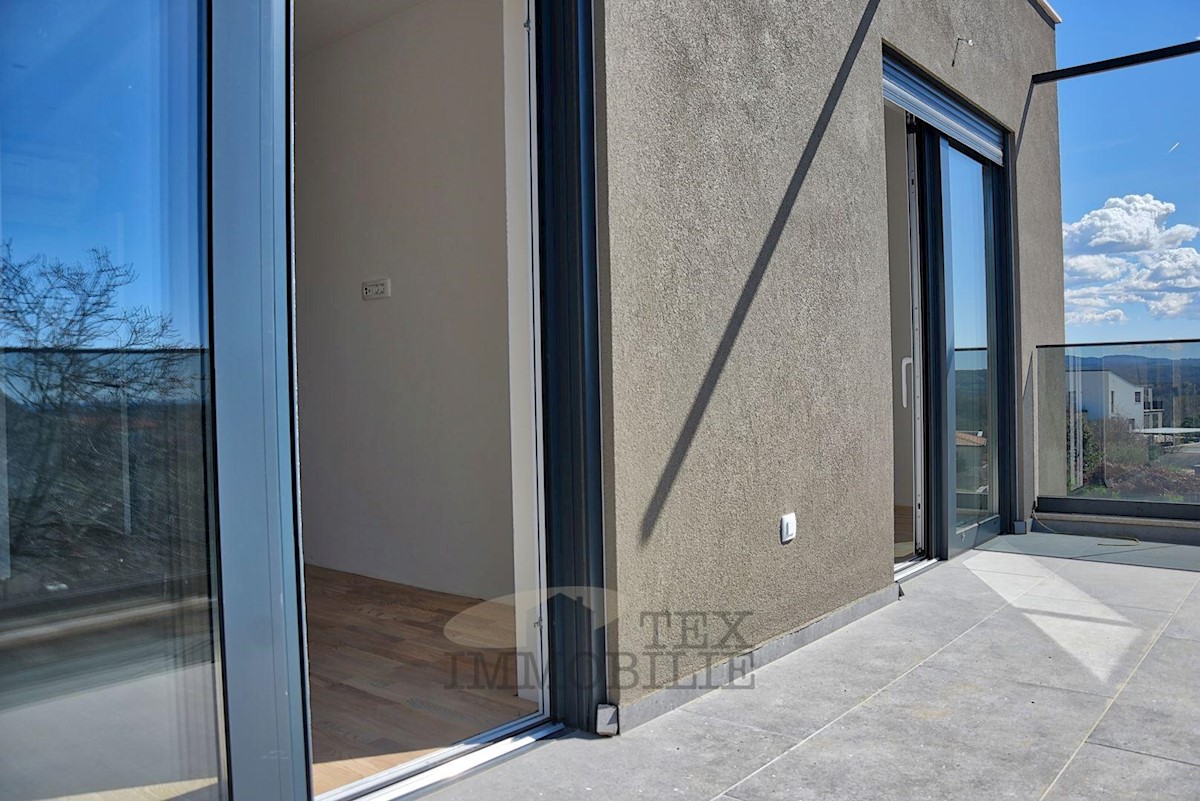 A new apartment under construction is for sale in the town of Tar near Poreč, at a distance of 3 km from the sea. The building is designed as a residential multi-apartment building with a total of 4 apartments. The apartment on the ground floor consists o