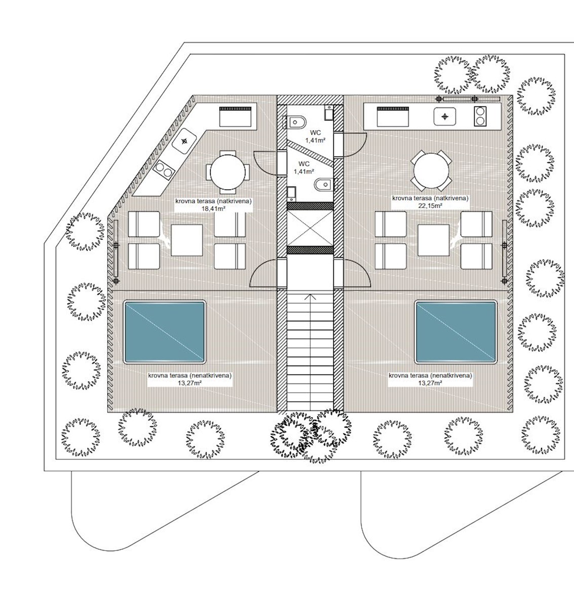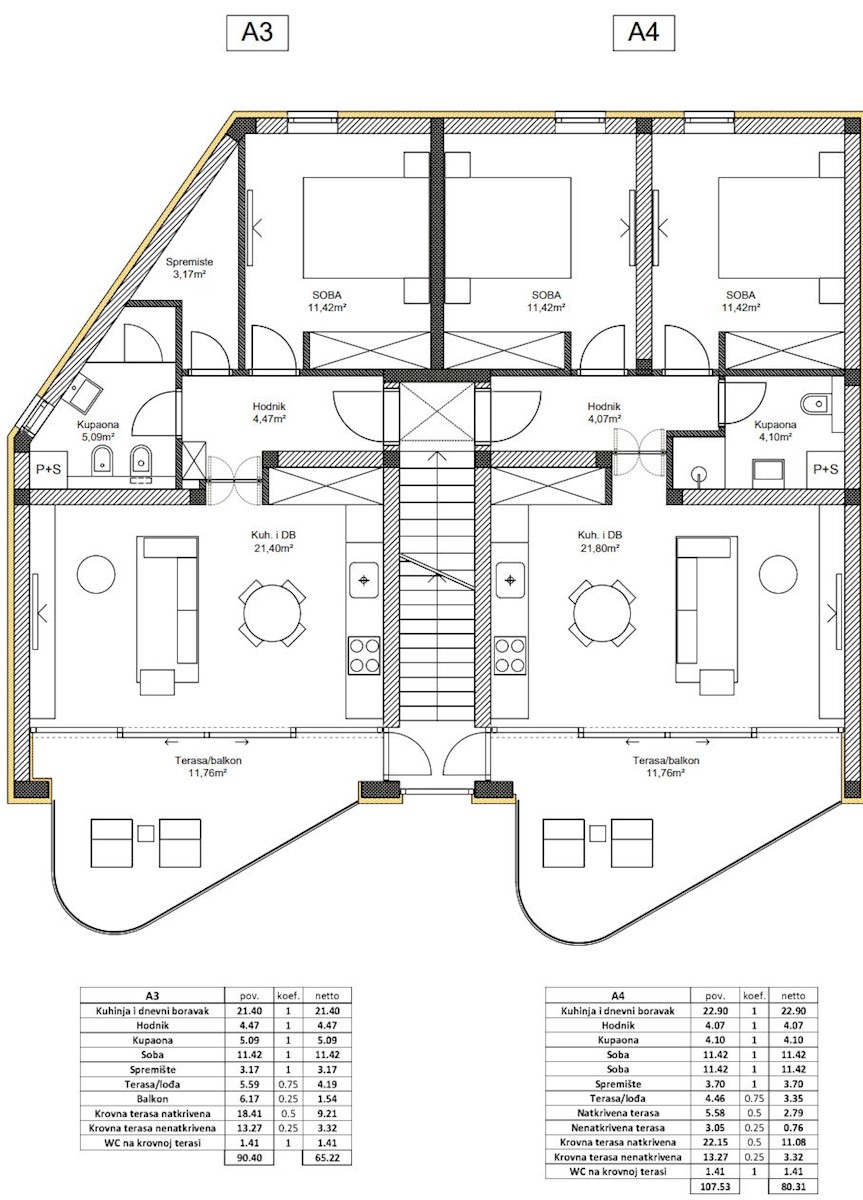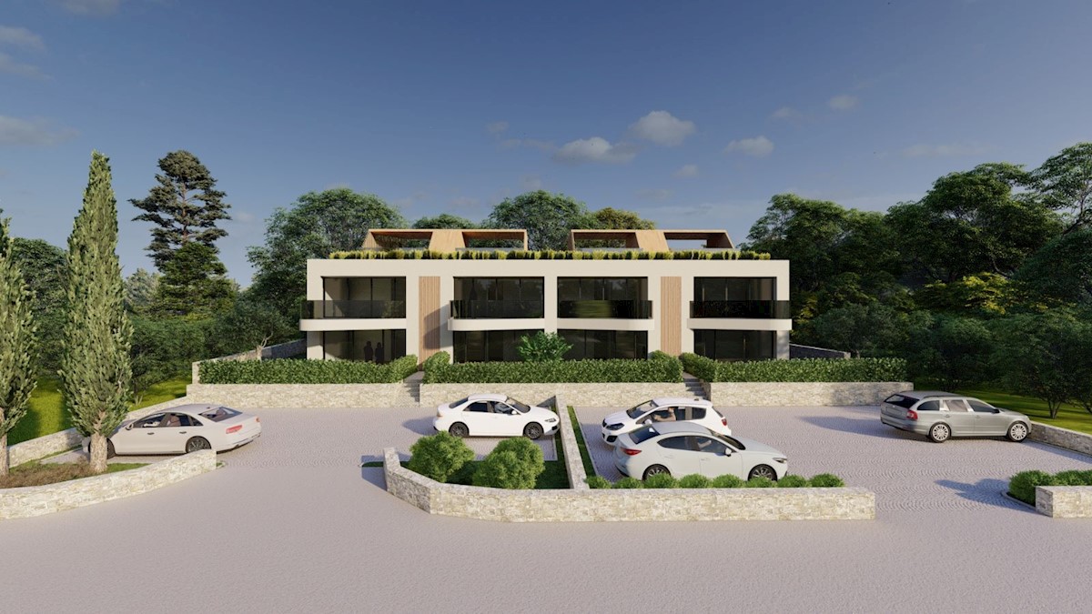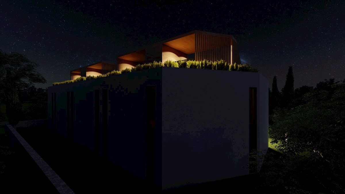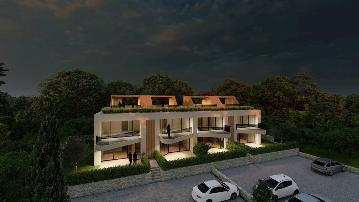 Apartment A4 near Poreč has a total surface of 80,31 m2, situated on the first floor + roof terrace, in construction, only 5 min. (2500m) from sea and from beautiful beaches, 5 min. (500m) from the center. Apartment is composed of kitchen/living room/dini