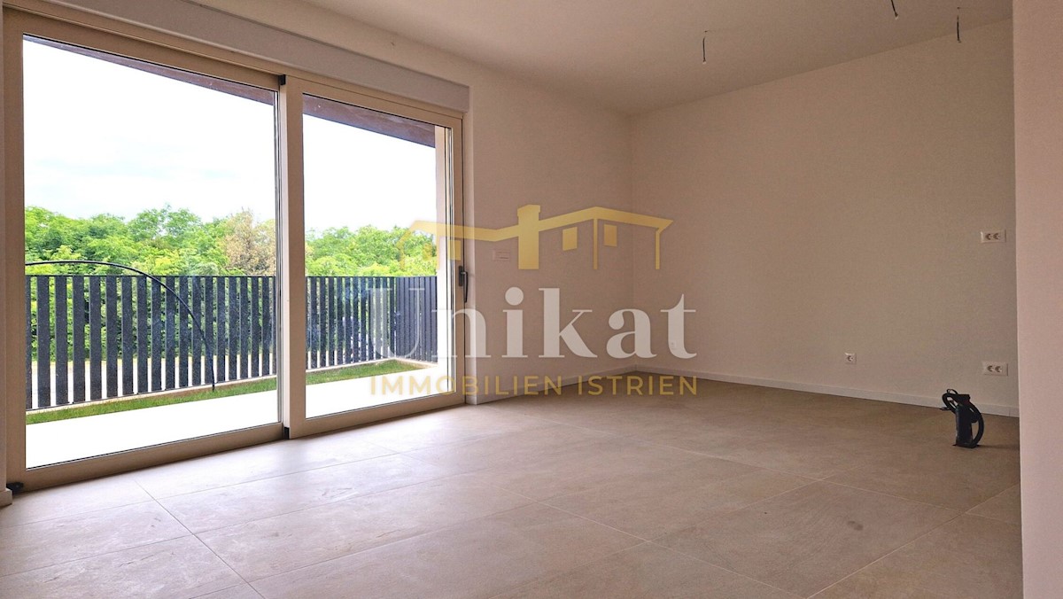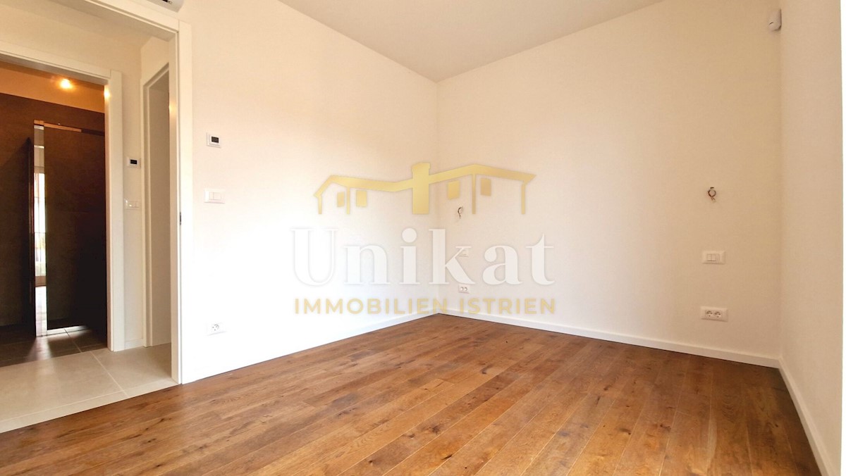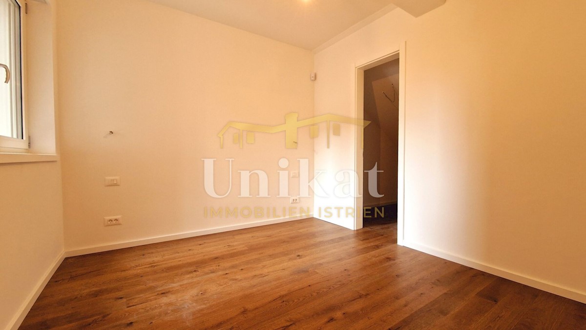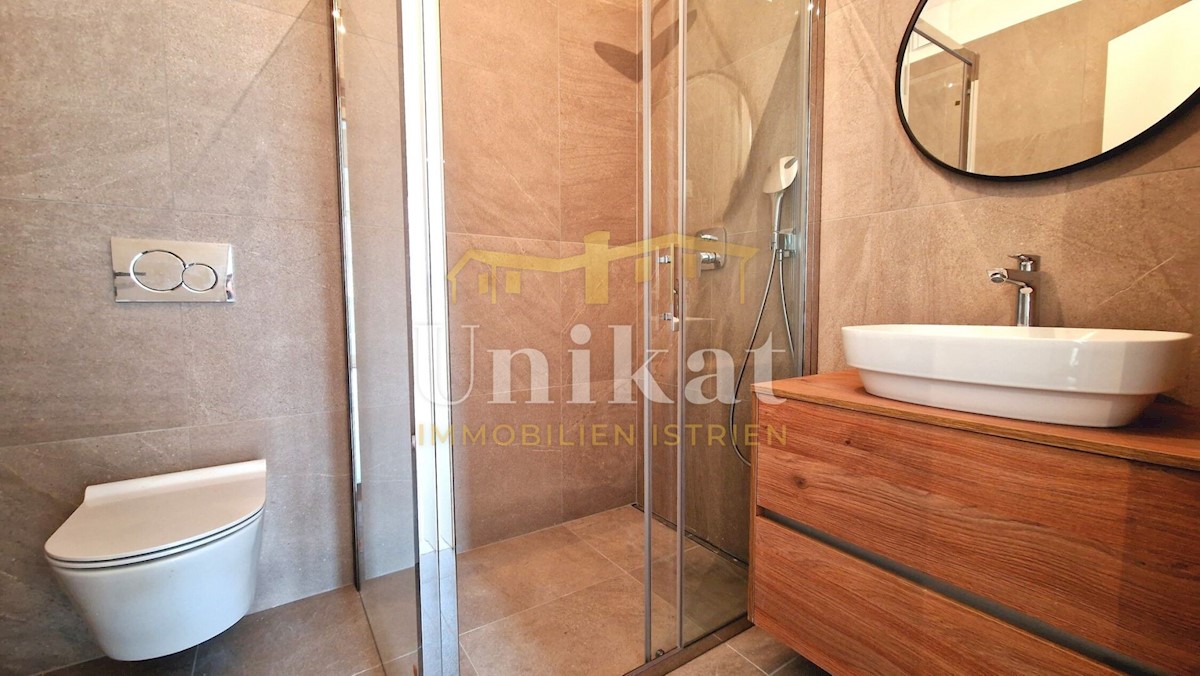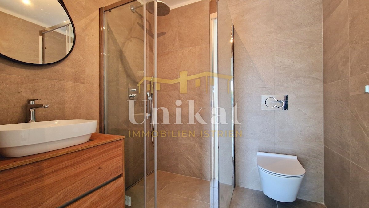 Newly built apartment 2 km from the sea and 3 km from Poreč. It consists of an entrance area, open space living room with kitchen and dining room, two bedrooms, two bathrooms and two terraces. The living area is 68 m2 + two terraces of a total of 18 m2 +