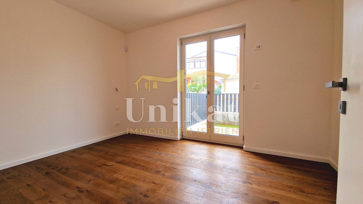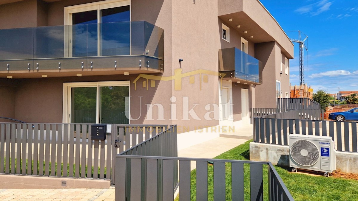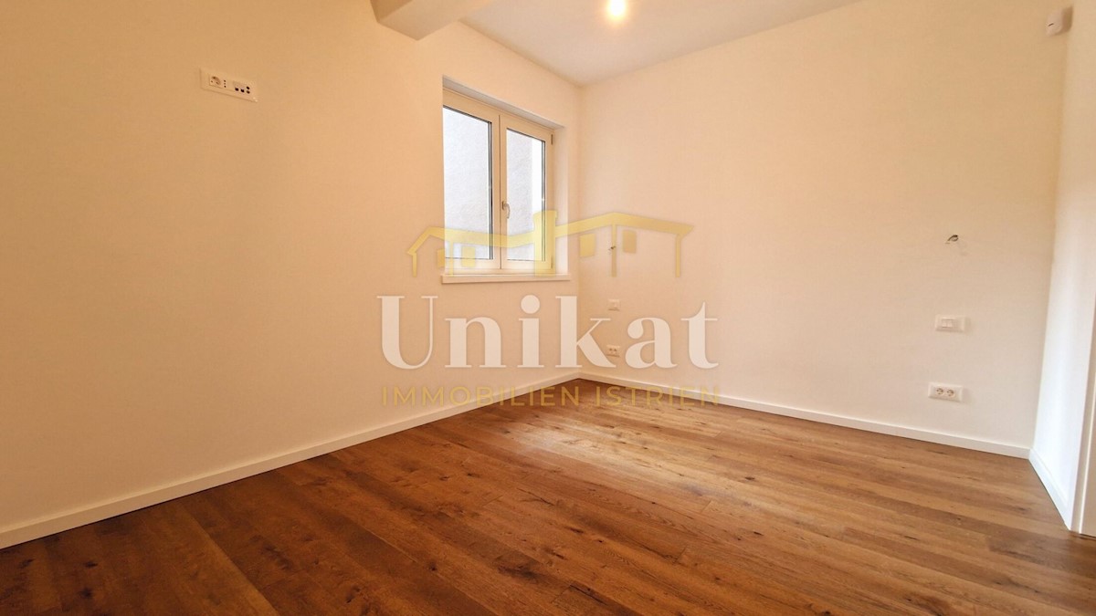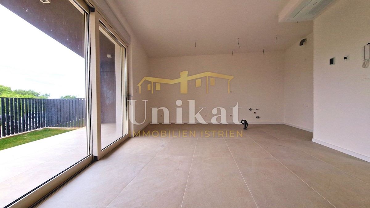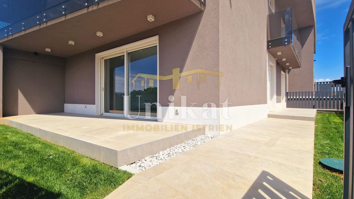 Newly built apartment 2 km from the sea and 3 km from Poreč. It consists of an entrance area, open space living room with kitchen and dining room, two bedrooms, two bathrooms and two terraces. The living area is 68 m2 + two terraces of a total of 18 m2 +