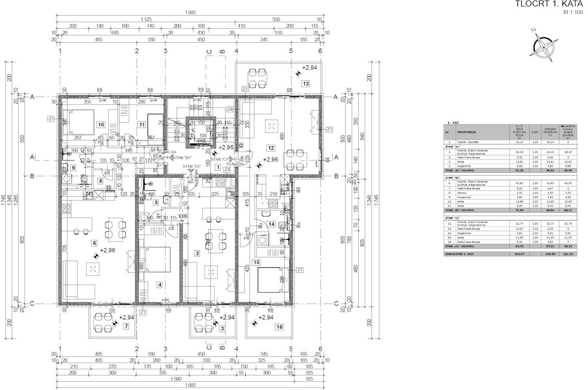 The apartment in the vicinity of Poreč has a total of 68,84 m2, it is located on the first floor, the construction phase, it is 5 min. (1000m) from the sea and from the beautiful landscaped beach, 5 min. (800m) away from the center. The apartment consists