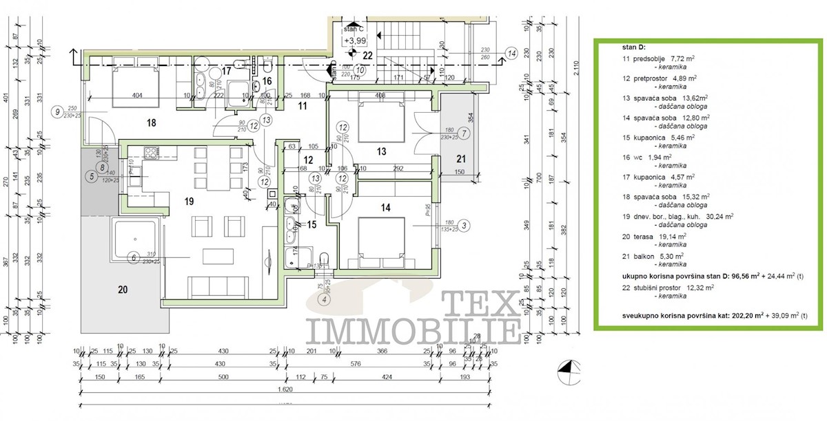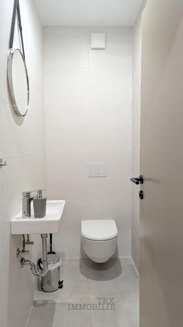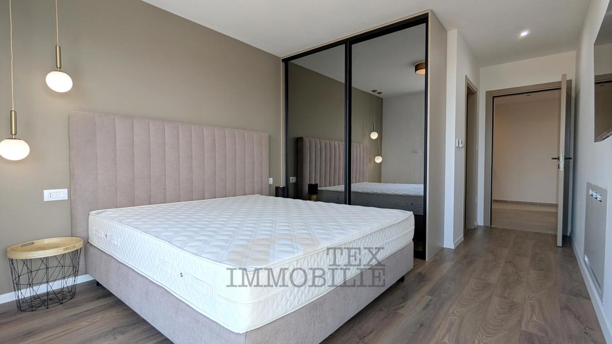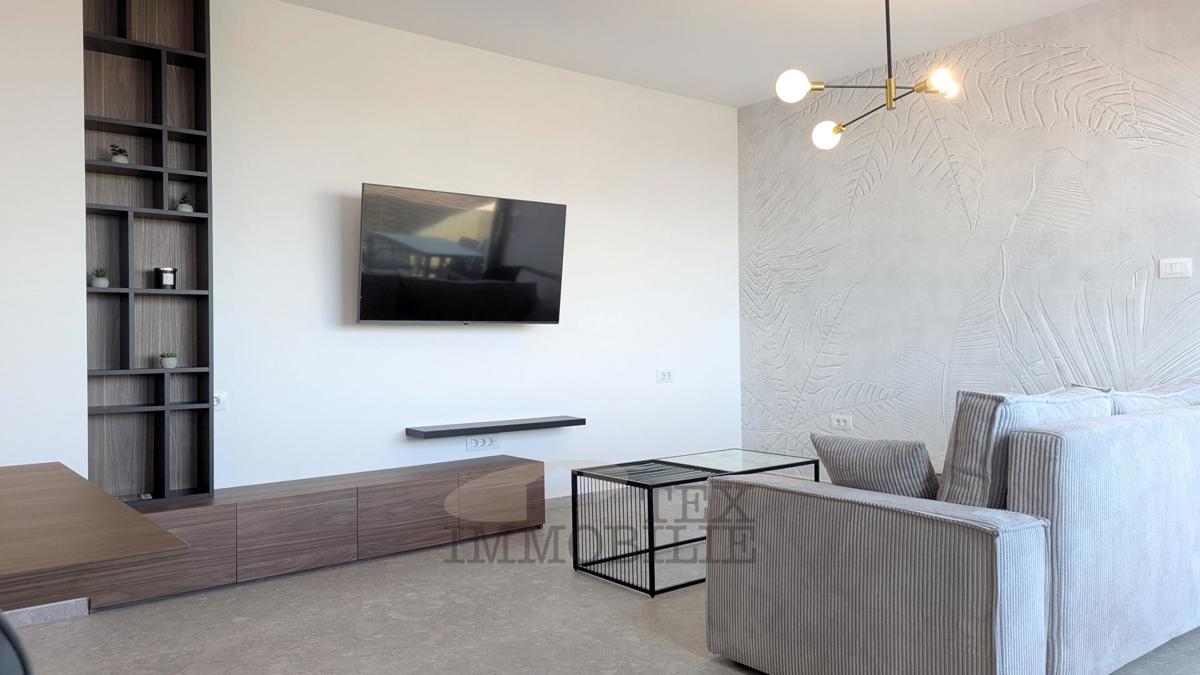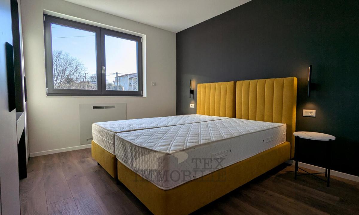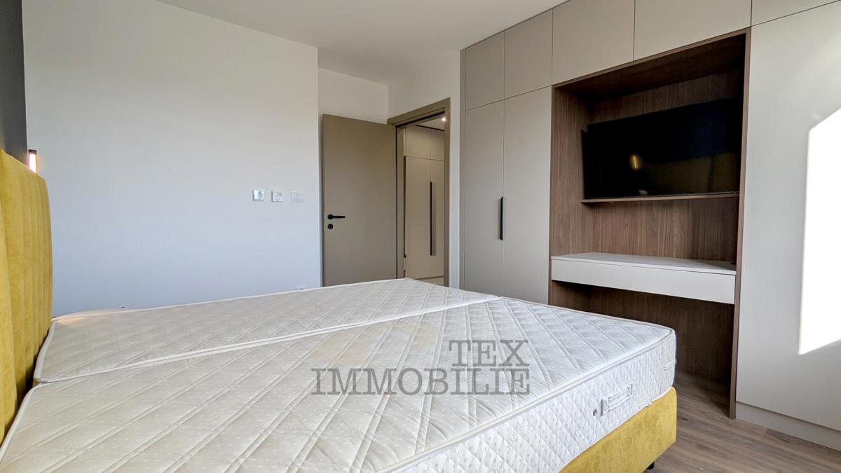 A brand new apartment for sale in a quiet village near Poreč, just 4 km from the sea. This apartment has a total area of 96.56 m2, including a 15.63 m2 terrace with a jacuzzi. It consists of a spacious living room with kitchen and dining area, hallway,