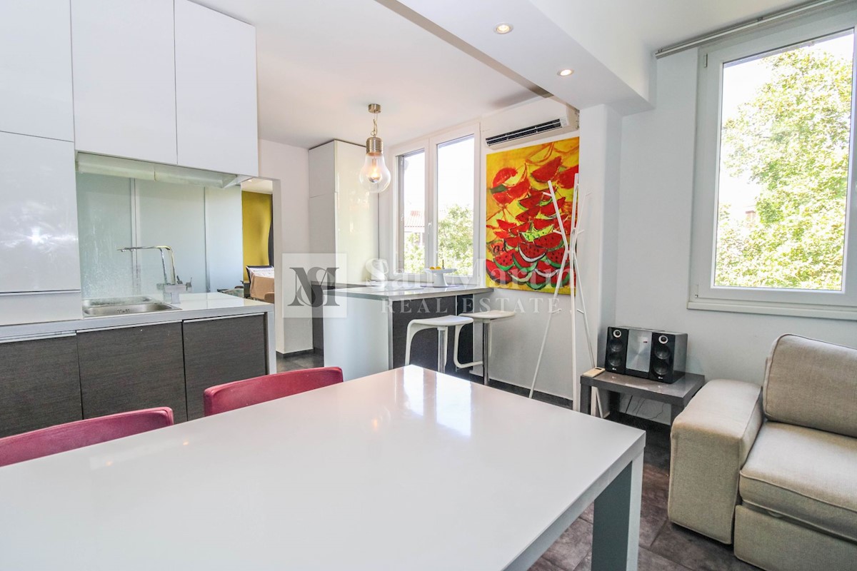 Poreč - surroundings, apartment near the sea In the vicinity of Poreč, just 30 meters from the sea, there is this beautiful modern apartment with a total area of 46.75 m2. The apartment consists of an entrance hall, living room, dining room, kitchen, one