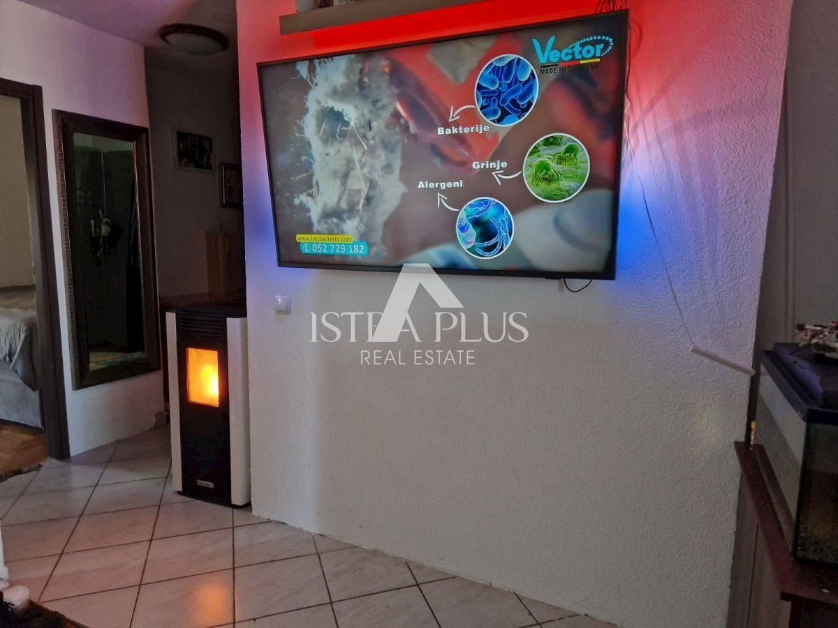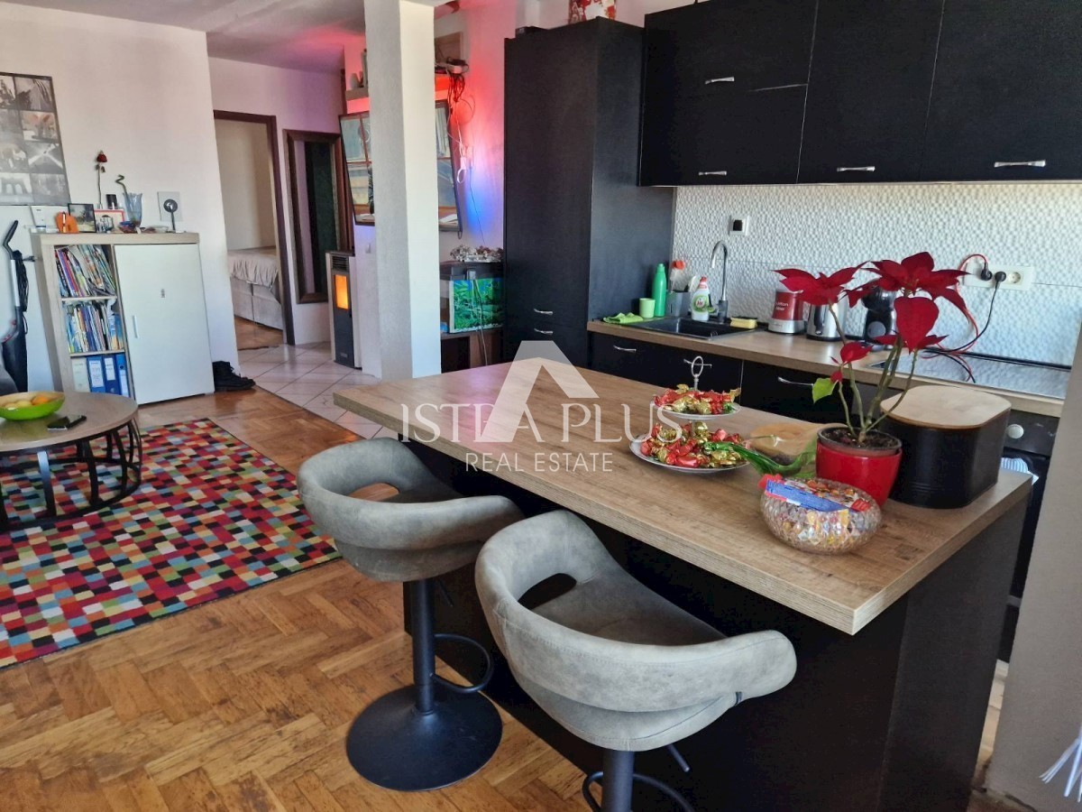 S58 Apartment in Červar-Porat it is located on the 3rd floor, area 62.22, first row to the sea. It consists of a hallway, bathroom, living room with kitchen and dining room, two terraces and two bedrooms. Renovated in 2020