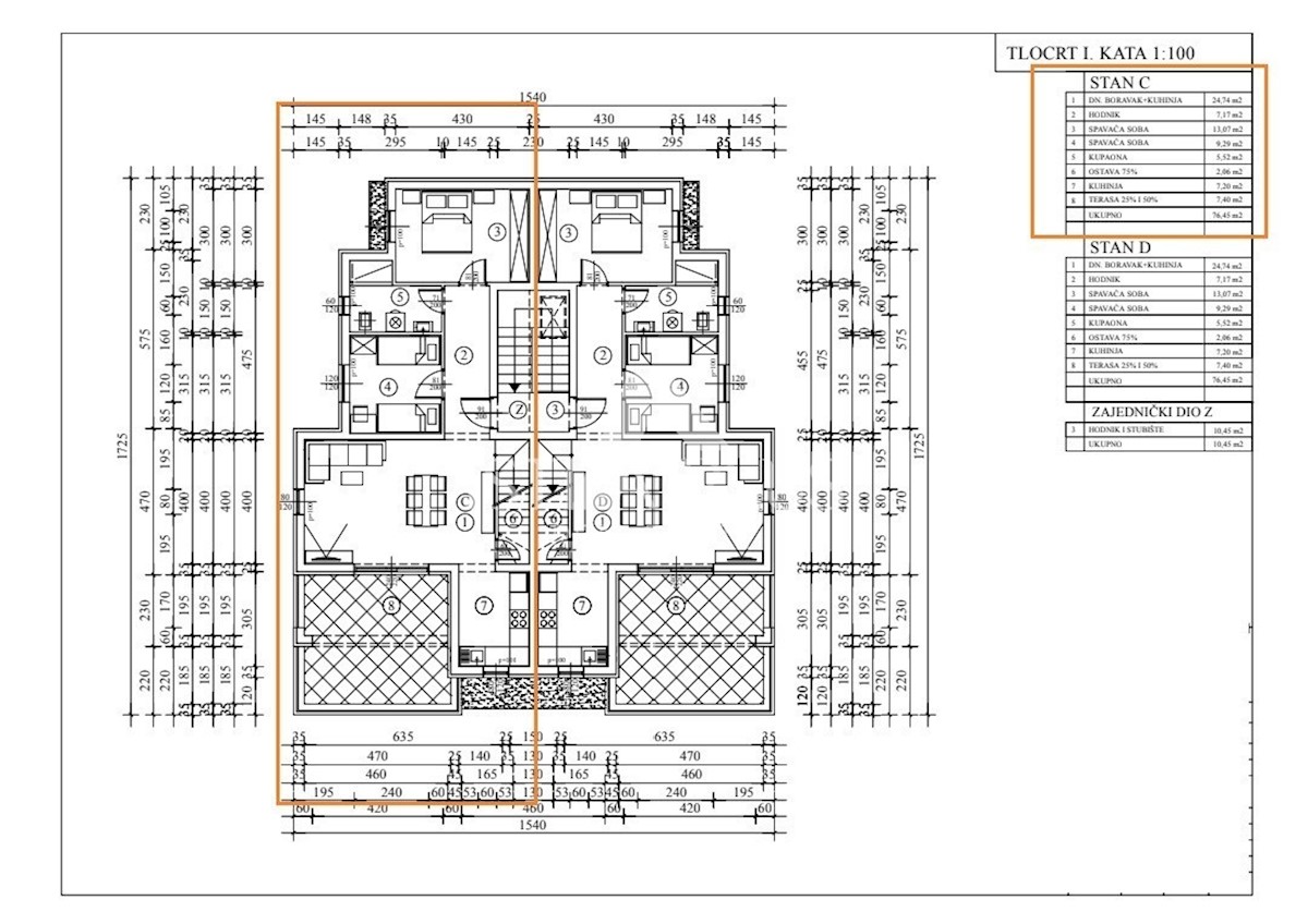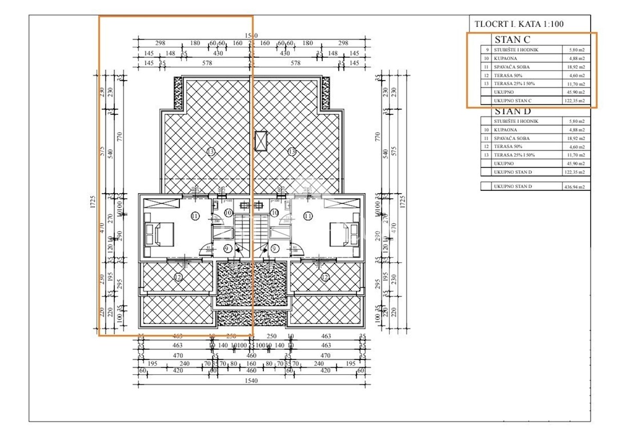S60 FLAT C, In a building with 4 apartments. 2 on the ground floor and 2 on the first floor. The apartment is spread over two floors, 1st floor + 2nd floor, the area is 124 m2 and a terrace with a view of the sea! The apartment consists of a hallway on th