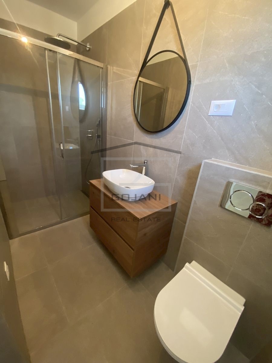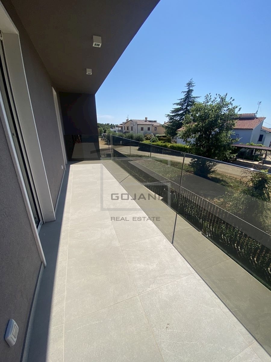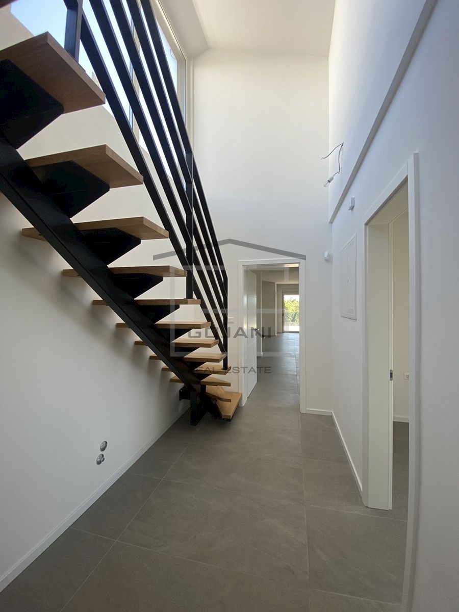 A spacious apartment on top of a new urban villa is located in a nice residential area in Poreč, only 1500 m away from the sea and the center. The apartment is located on the second floor and consists of 109 m2 net usable area, 162 m2 terrace + 128 m2 roo