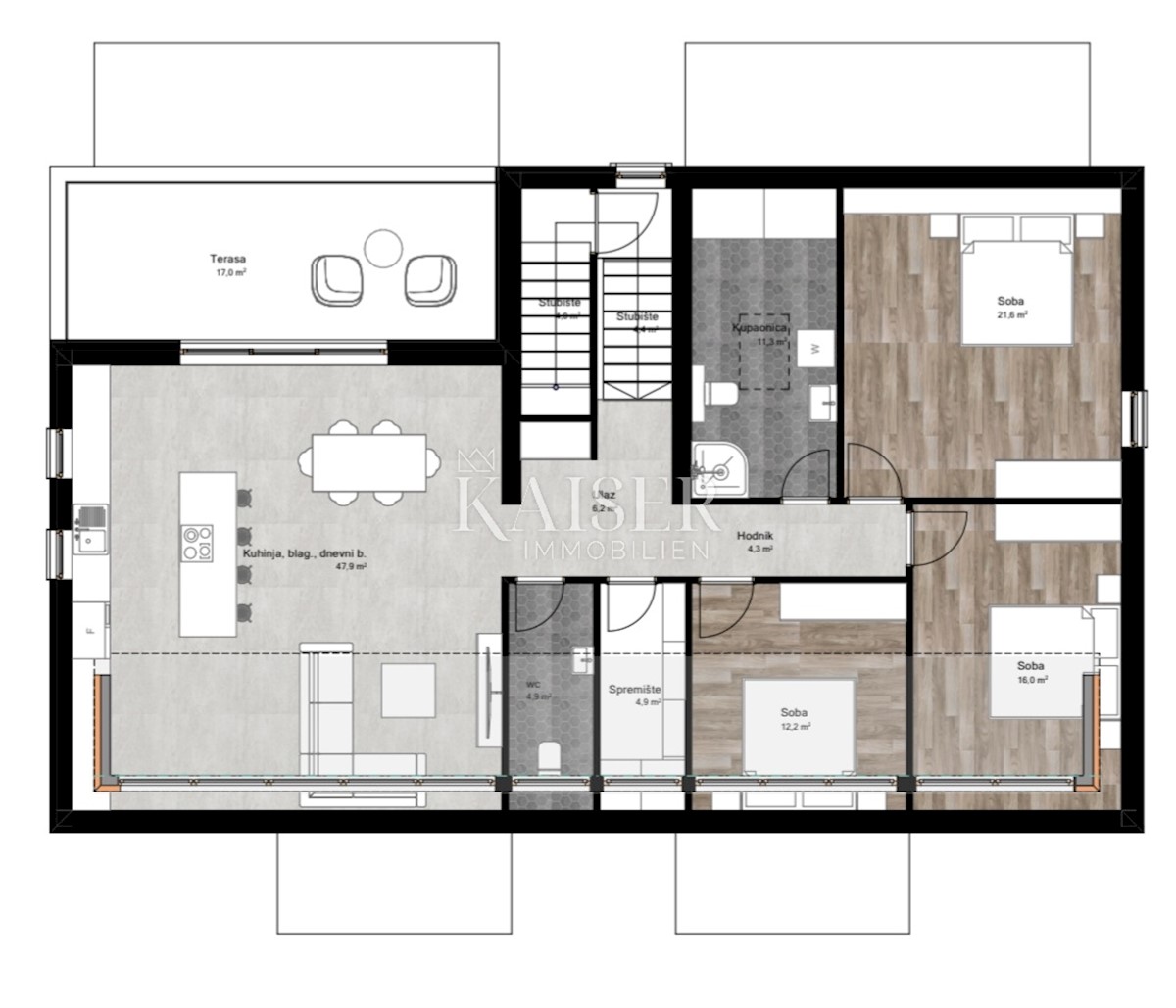 Kaiser Immobilien is selling a beautiful apartment with construction starting in autumn 2023, which will be available in mid-early 2025. It is located in an excellent location, only 4 kilometers from the center of Poreč and only 2 km from the picturesque
