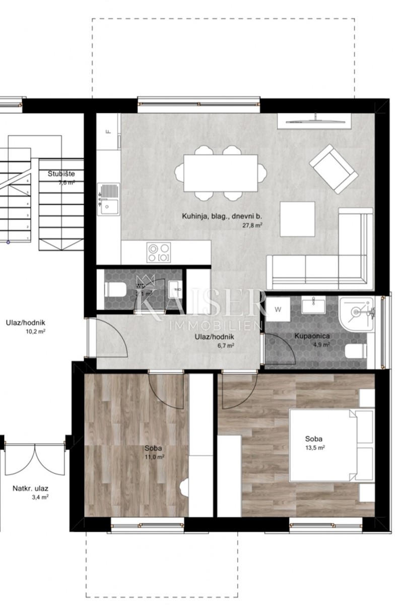 Kaiser Immobilien offers for sale a 66m2 apartment with a garden. In a quiet place, only 4 km from the city of Poreč and only 2 km from the first beaches, there will be two buildings with a total of ten apartments. This apartment is located on the ground