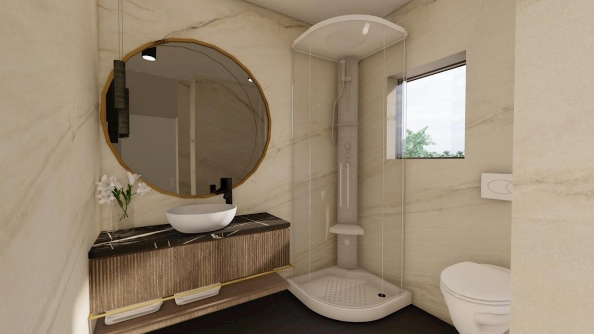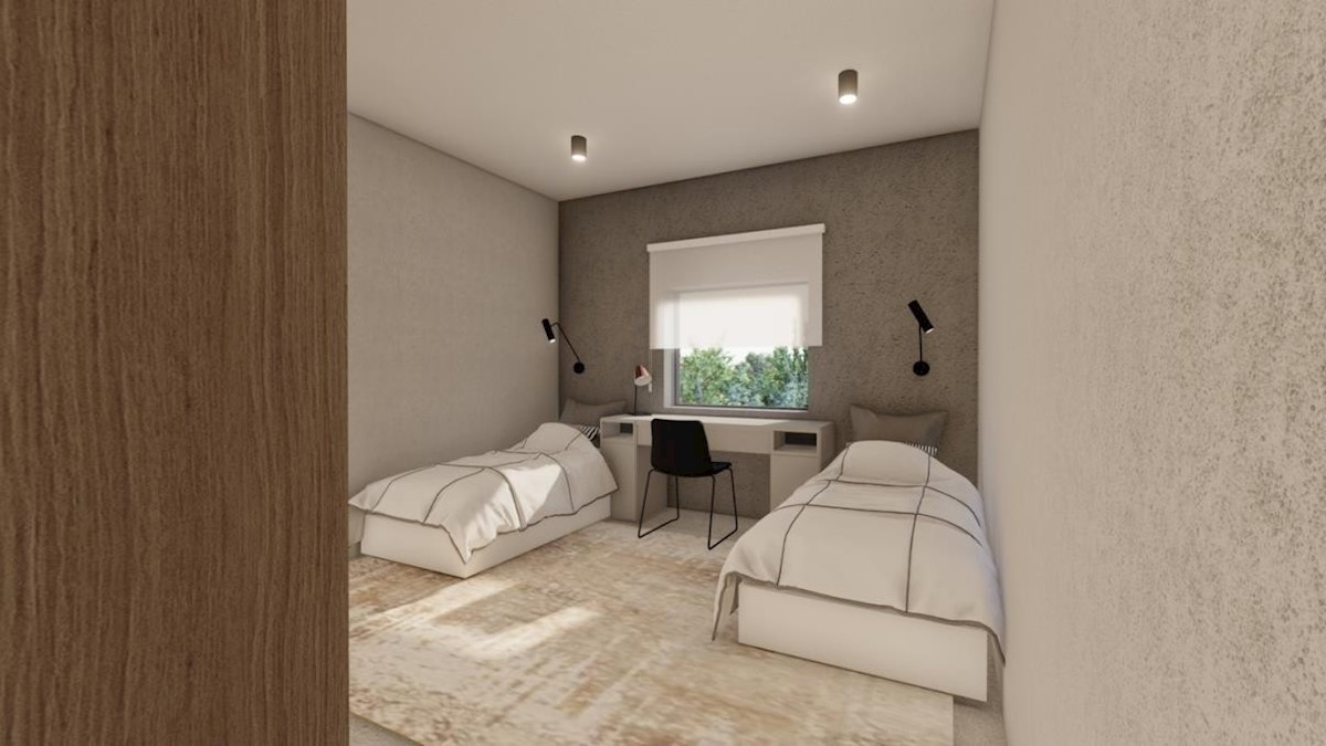 Apartment for sale approx. 5 km from Poreč and the sea - two-bedroom apartment under construction on the second floor of 76.5 m2 - entrance hall, living room, kitchen and dining room, bathroom, two bedrooms, toilet, terrace and storage room - first phase