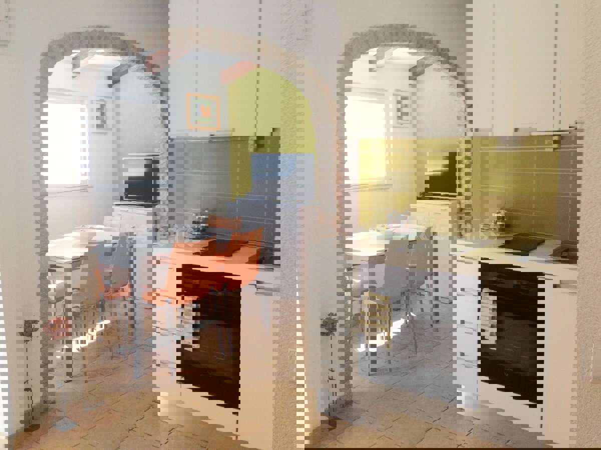 - Červar Porat – approx. 50 m from the sea is an apartment for sale, surface of 37 m2. The apartment is situated on the third floor of a residential building. Contains: living room with kitchen, dining room, bedroom, bathroom and low-ty