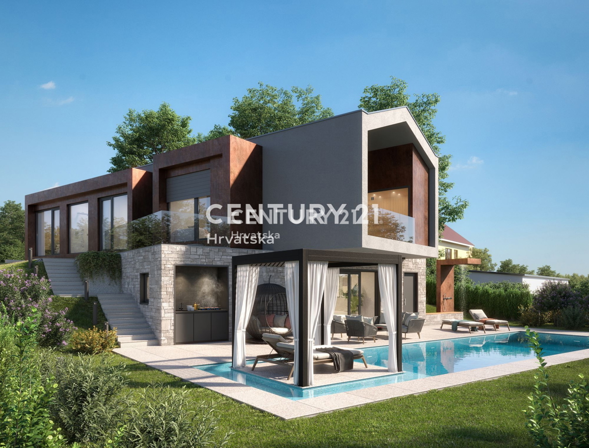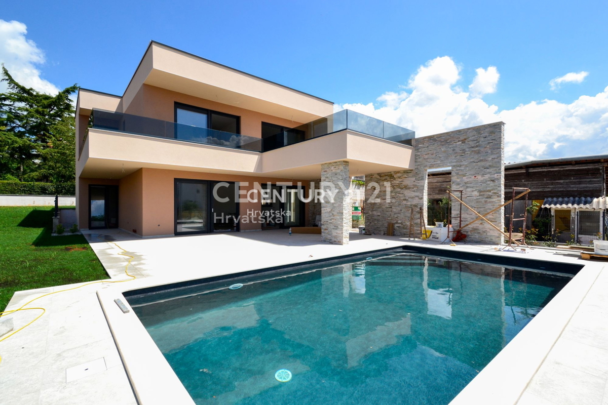- Eine moderne, luxuriöse Villa mit Pool wird in einem Dorf 12 km von Porec und dem Meer entfernt liegen. Der Innenraum der Villa ist 200 m2 groß und besteht aus einem Wohnzimmer, einer Küche, einer Toilette und einem Abstellraum im Er
