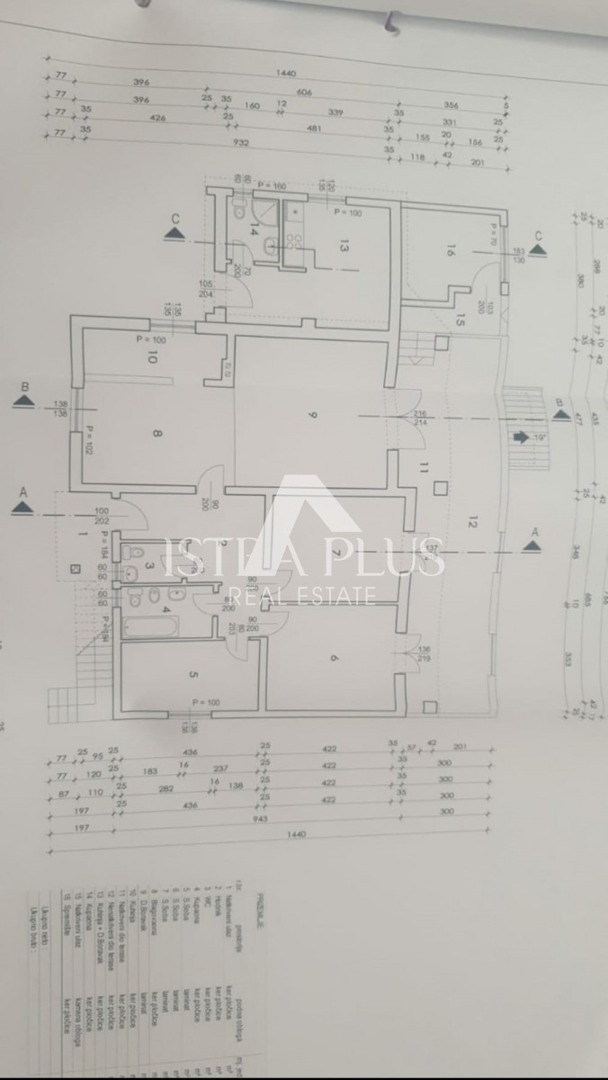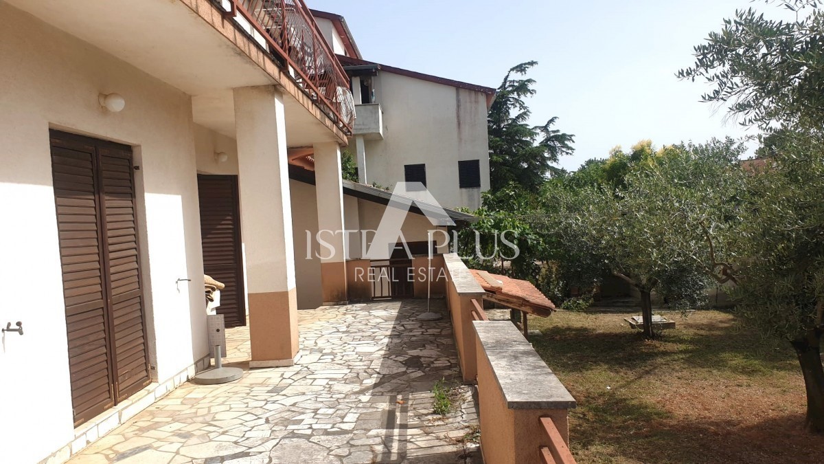 K112 Freistehendes Haus in der Nähe von Poreč mit Garten. Im Erdgeschoss gibt es eine Wohnung von 120 m2, ein Studio-Apartment von 20 m2 und einen Abstellraum, und im ersten Stock gibt es eine Wohnung von 150 m2. Die Wohnung im Erdgeschoss besteht aus Flu