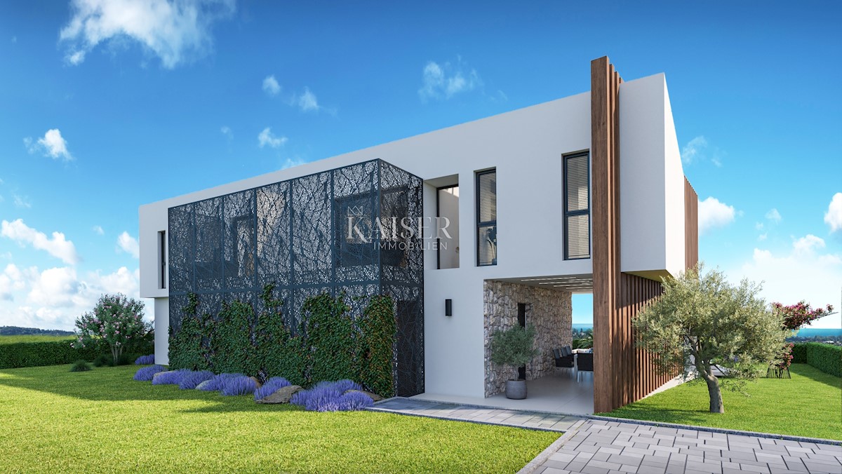 Kaiser Immobilien bietet eine neue einzigartige Luxusimmobilie zum Verkauf an, eine moderne Villa mit Meerblick. Die Villa liegt nur 13 km vom Zentrum von Poreč und 10 km von den ersten Stränden entfernt. Mit einem einzigartigen modernen Design, authentis