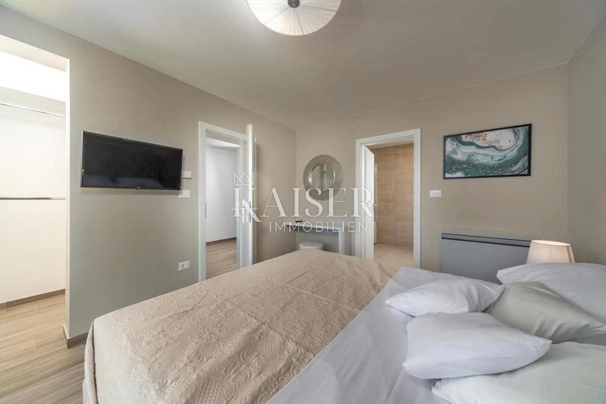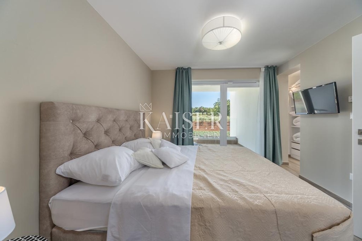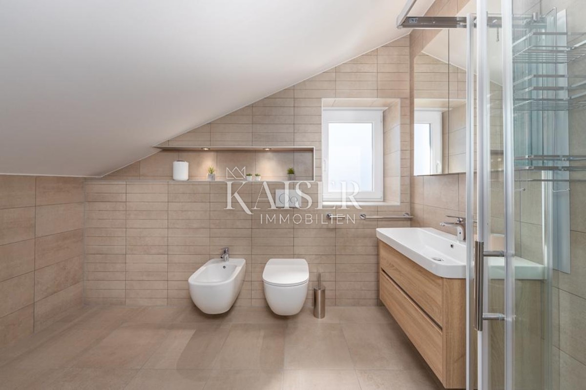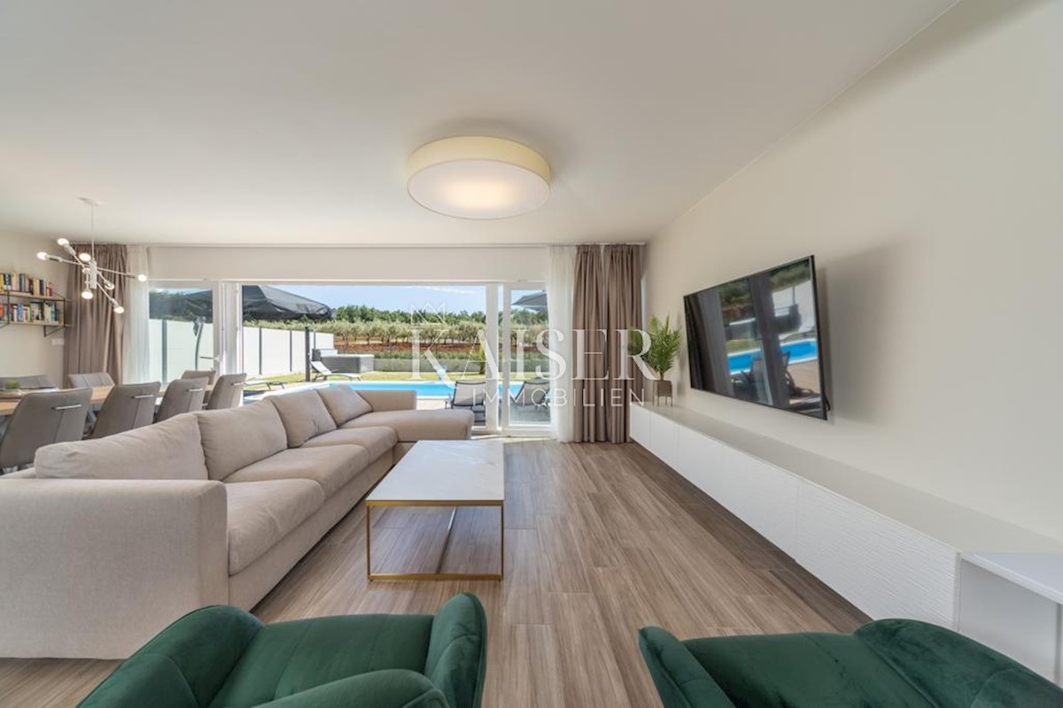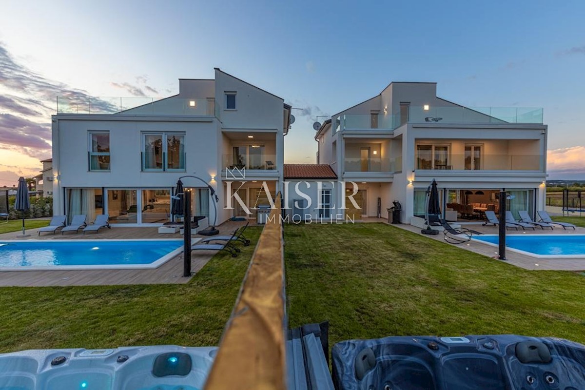 Kaiser Immobilien präsentiert Ihnen eine freistehende Villa mit Pool und Meerblick in der Nähe von Poreč. Das Haus besteht aus einem Erdgeschoss und zwei Etagen mit sechs Schlafzimmern, drei Badezimmern, einer Toilette, einem Wohnzimmer, einer Küche, eine
