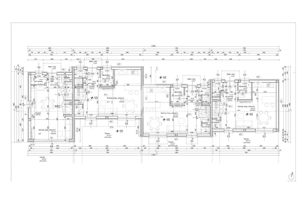 K121 Dieses Reihenhaus erstreckt sich über zwei Etagen. Das Erdgeschoss besteht aus einer Eingangshalle, einem Abstellraum, einer Gästetoilette, einer Küche mit Esszimmer und einem Wohnzimmer mit Zugang zu einer geräumigen Terrasse mit Pergola, wo sich ei