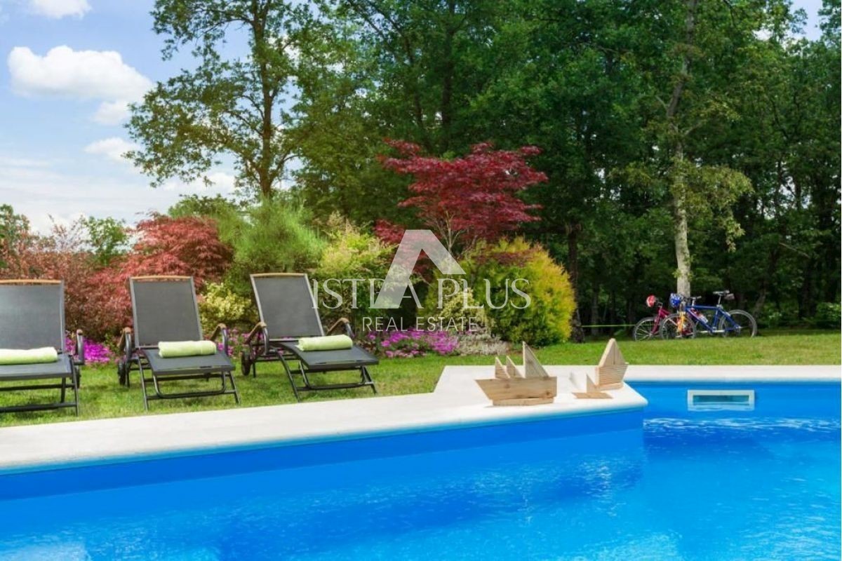 K149 Diese wunderschöne Villa ist mit einem weitläufigen Garten und einem 70 m2 großen Swimmingpool ausgestattet und stellt einen idealen Ort zum Leben dar. Dieses idyllische Haus liegt versteckt in einem Dorf in der Nähe von Višnjan, unweit von Poreč,