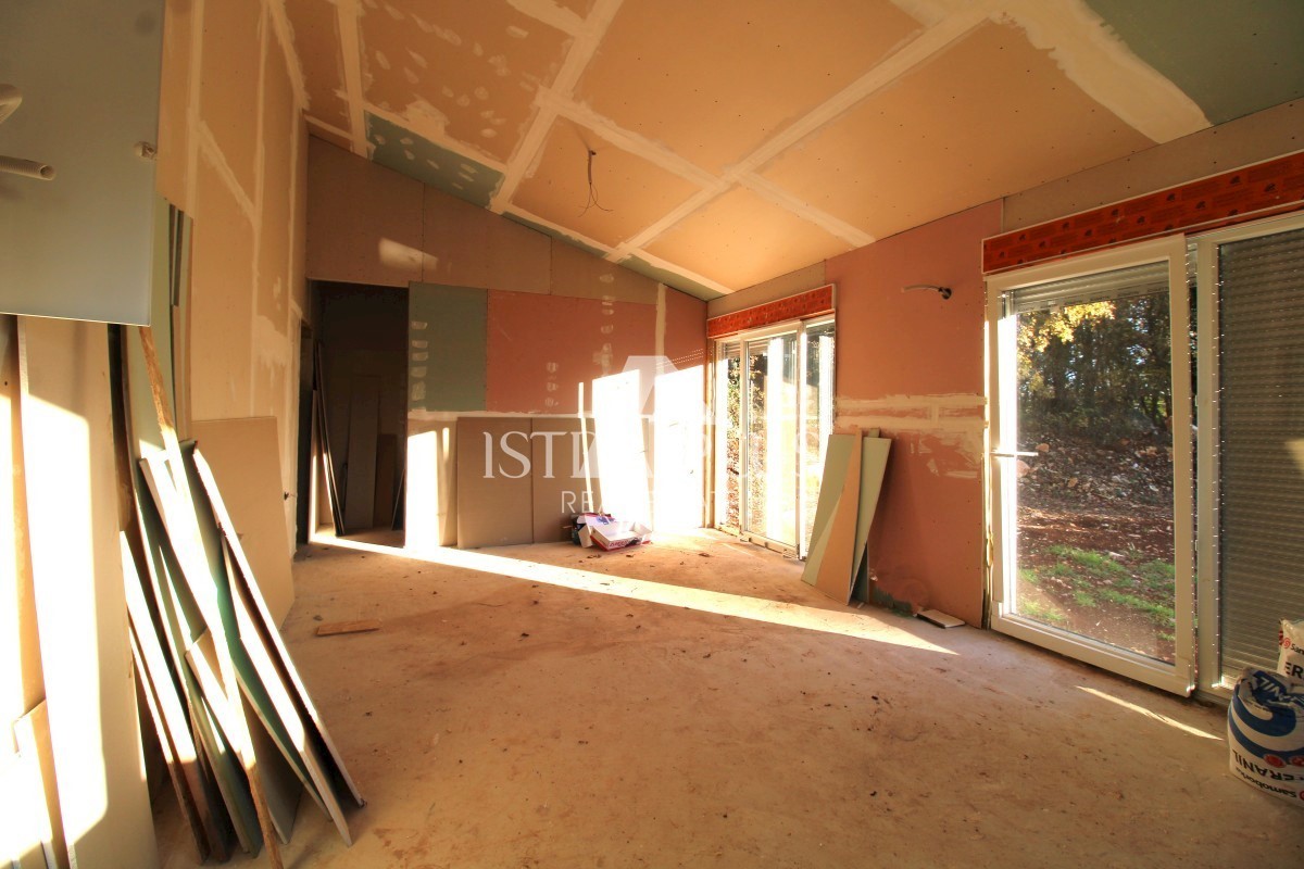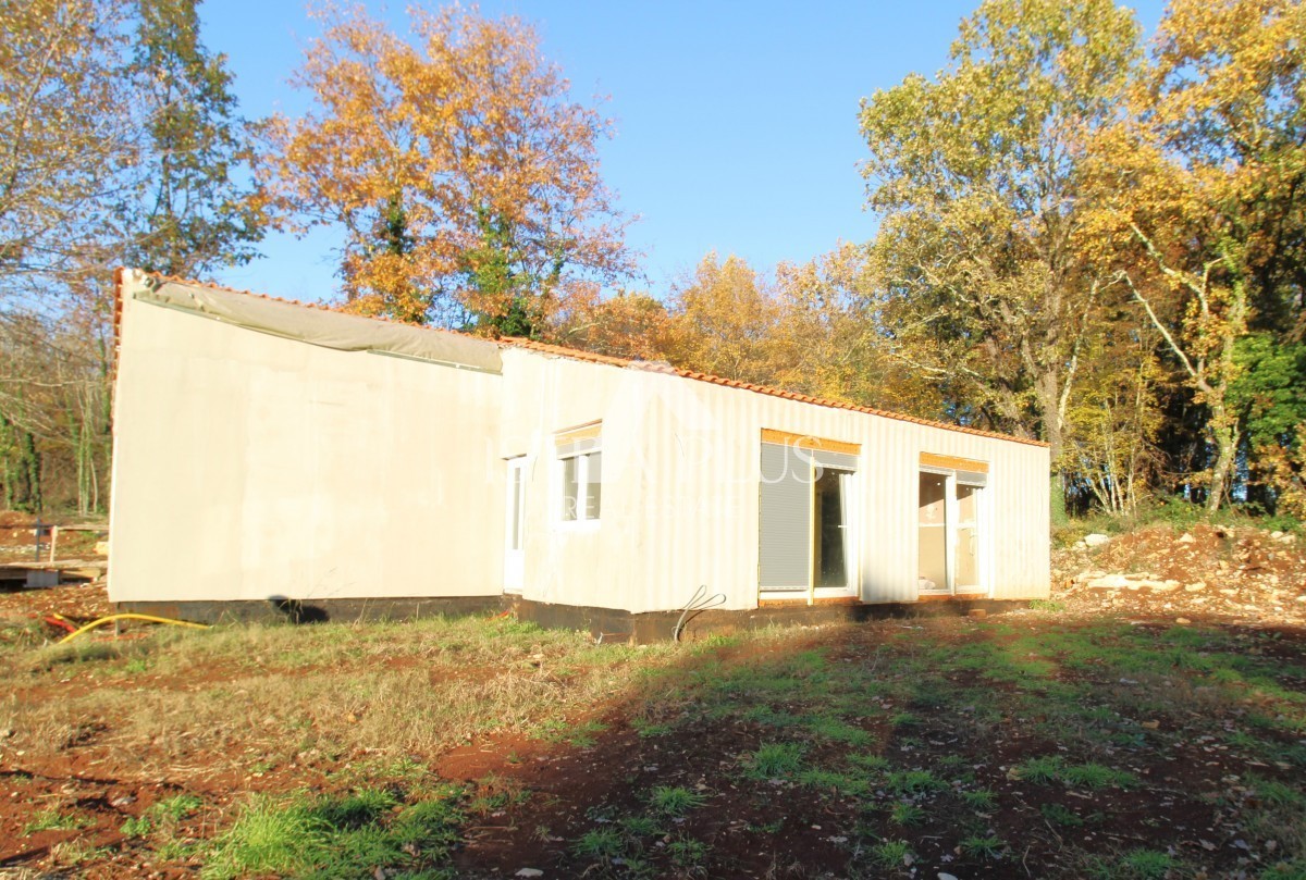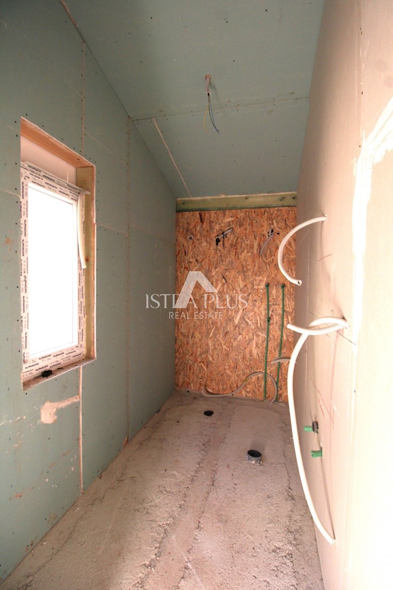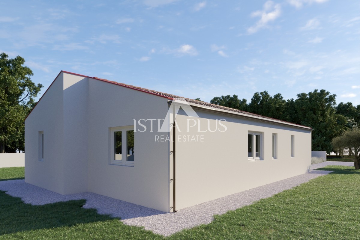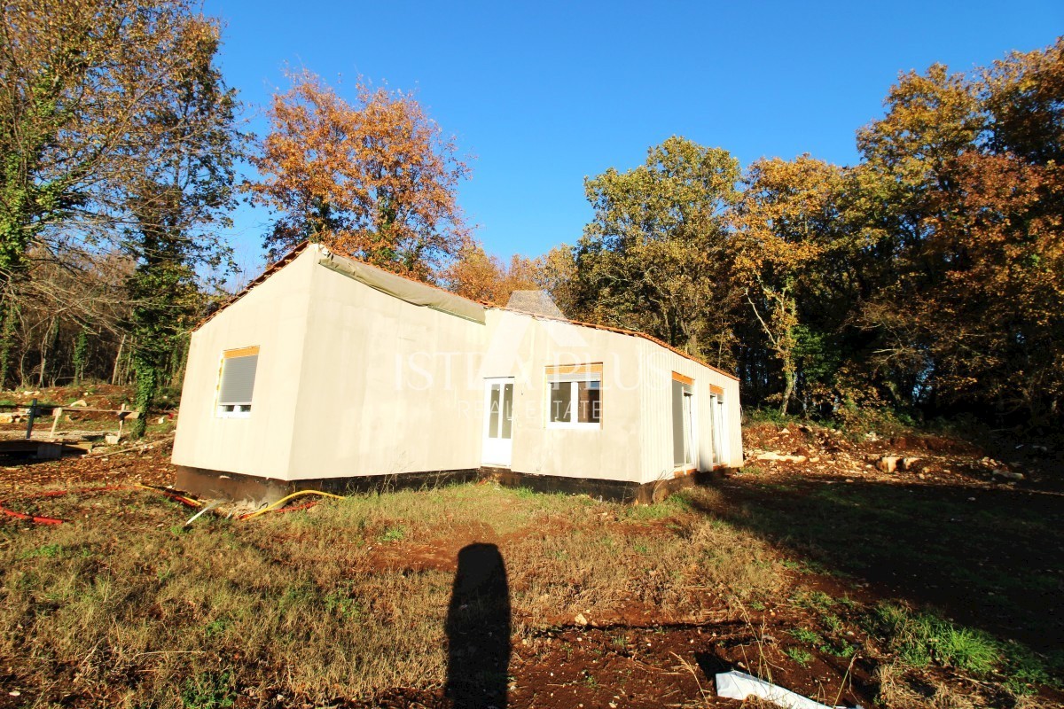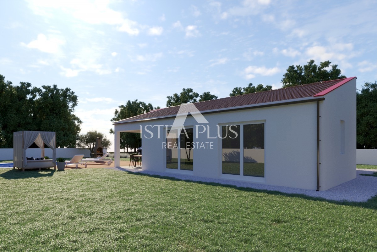 K151 Fertighaus mit Pool in ruhiger Naturidylle - Umgebung von Tinjan. Das Haus wird aus einer überdachten Terrasse, einem Wohnzimmer, einem Esszimmer und einer Küche, drei Schlafzimmern und drei Badezimmern bestehen. Die überdachte Terrasse bietet einen