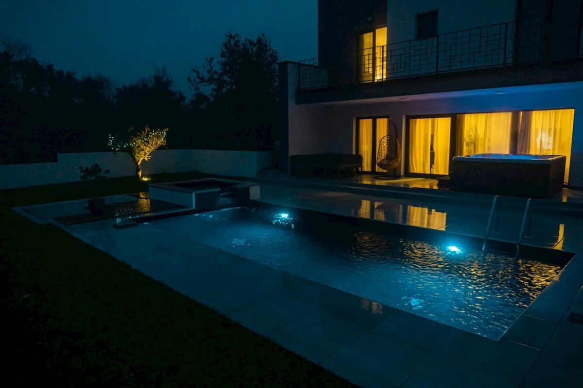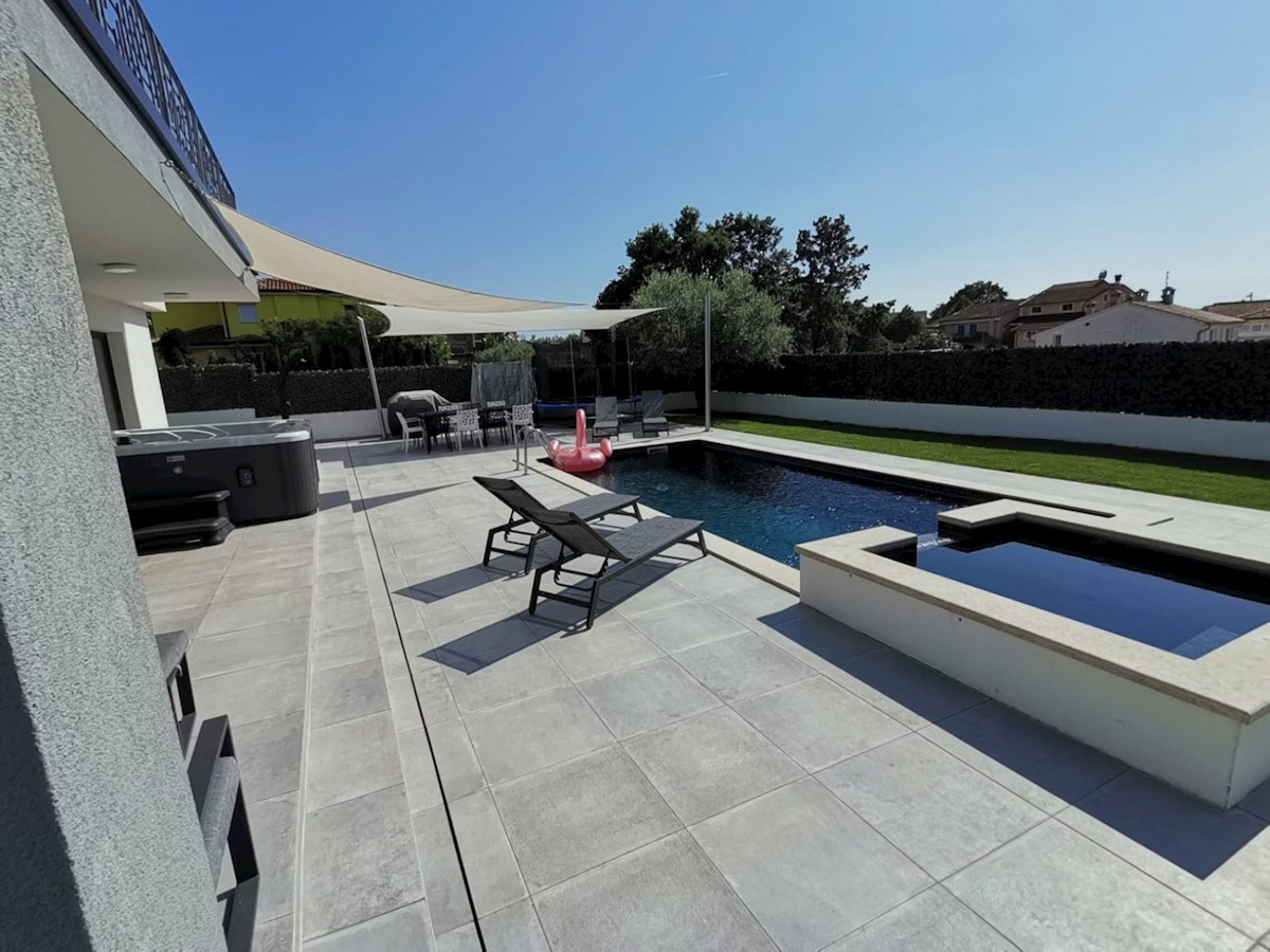 Poreč, ca. 5 km von Poreč entfernt, in wunderschöner Lage, steht eine moderne freistehende Villa mit 168 m2 Nettofläche (204 m2 brutto) zum Verkauf - Erdgeschoss: Wohnzimmer, Küche, Esszimmer, Schlafzimmer, Badezimmer, Gäste-WC, Heizraum - Etage: 3 Schlaf