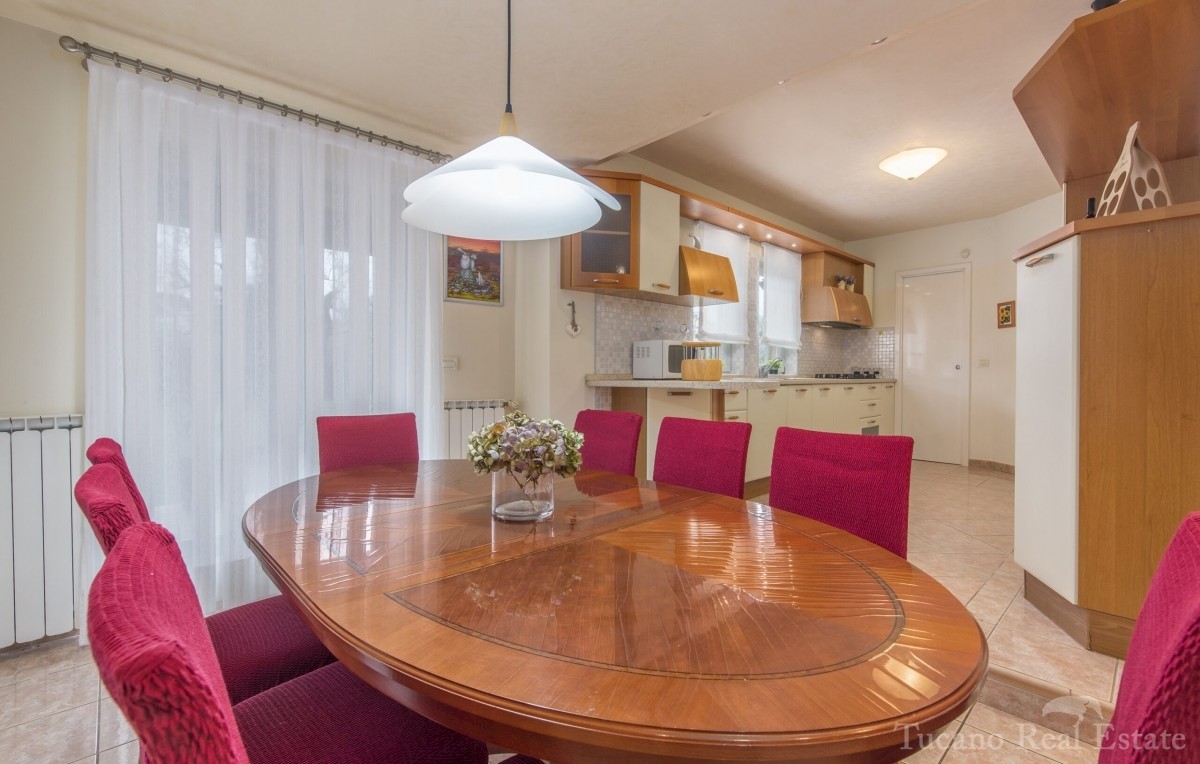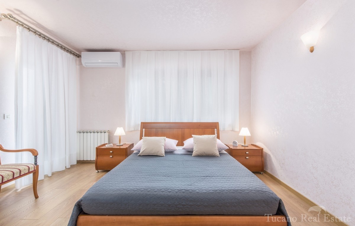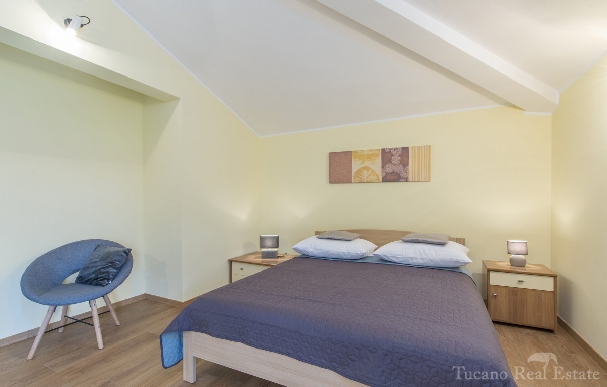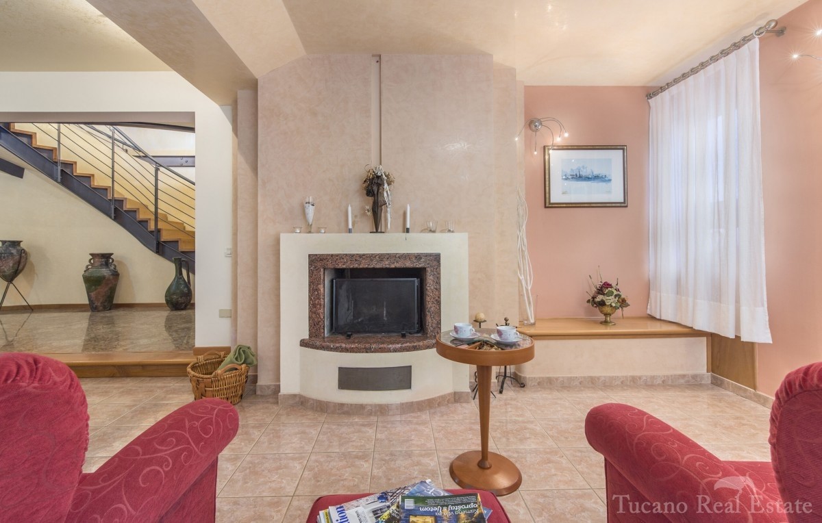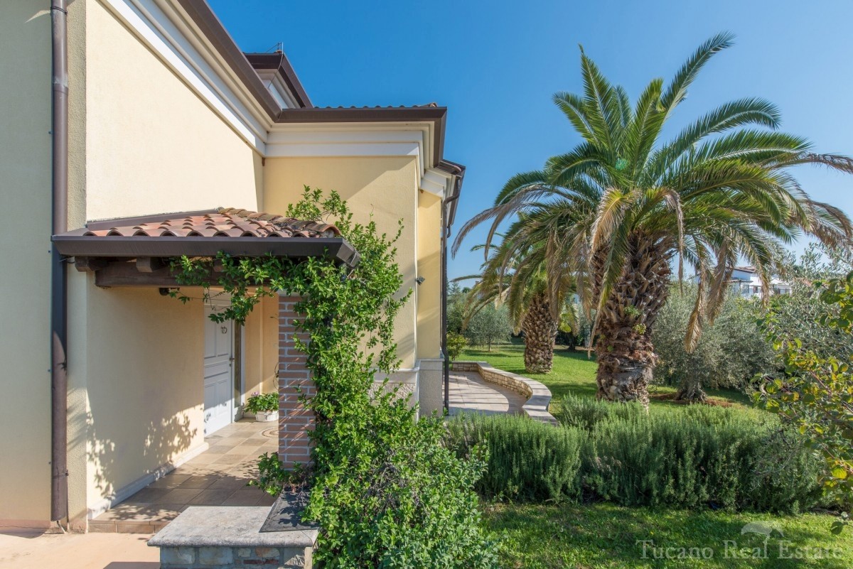 Eine wunderschöne Villa in Poreč, in einem ruhigen Dorf inmitten der Natur, 1 km vom Meer entfernt. Fläche 420m2, verteilt auf drei Etagen. Im Keller des Hauses finden Sie etwas Besonderes und Wertvolles: eine traditionelle istrische Taverne mit einer kle