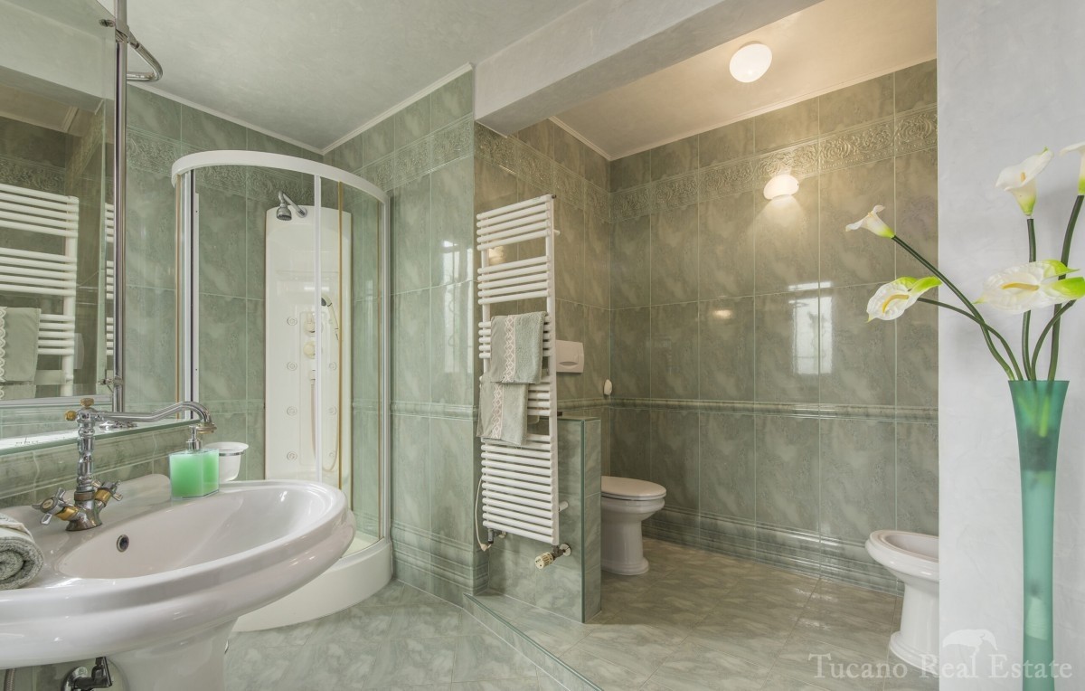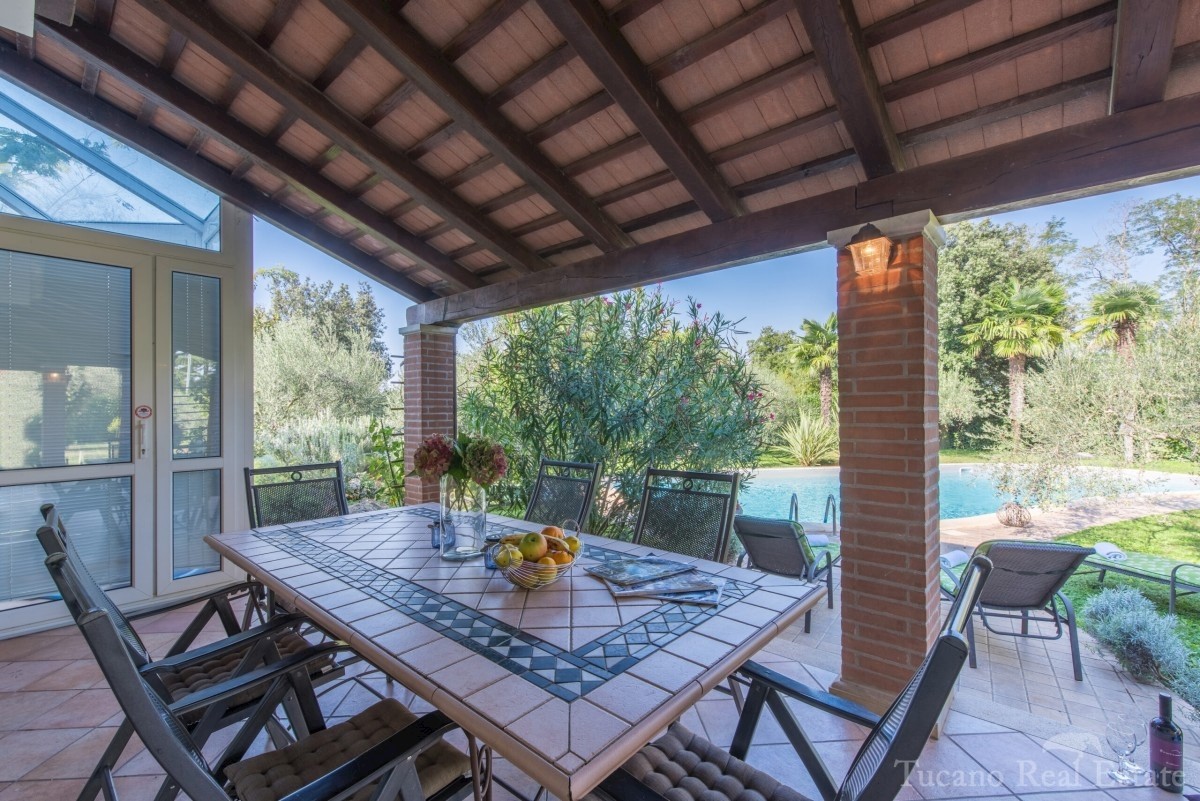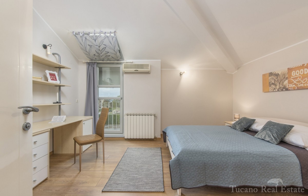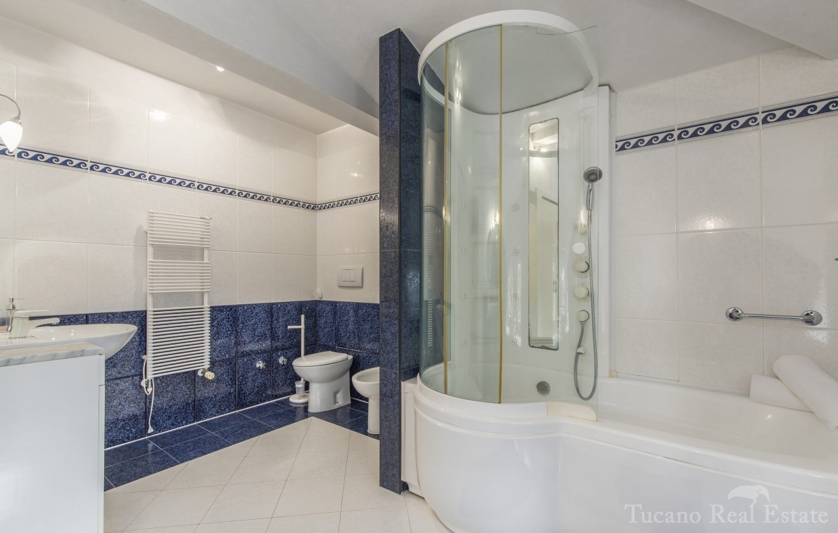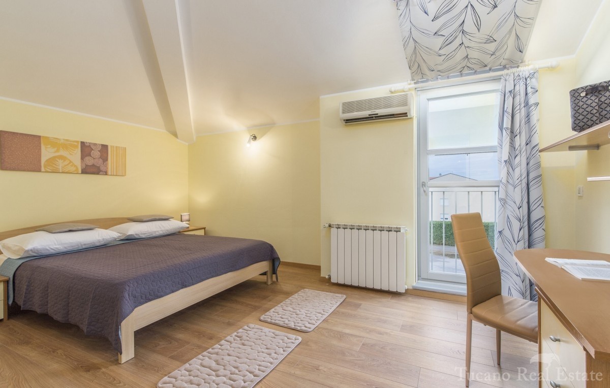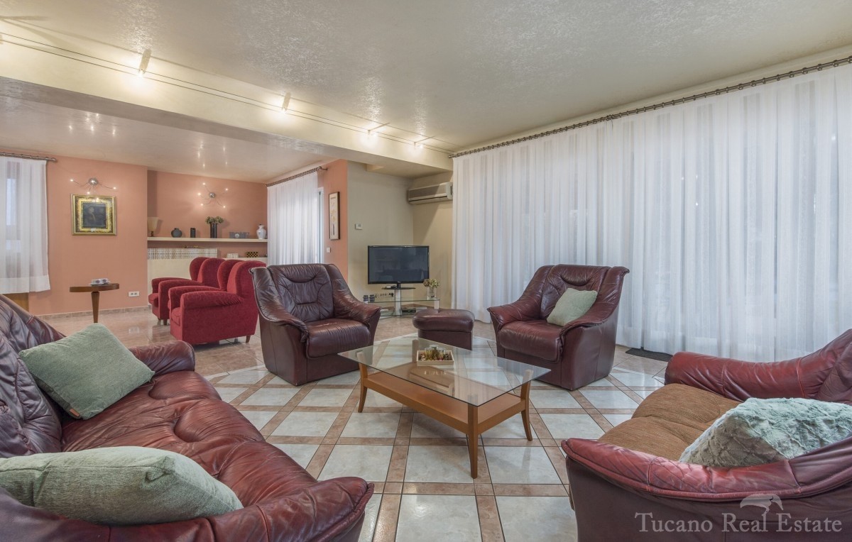 Eine wunderschöne Villa in Poreč, in einem ruhigen Dorf inmitten der Natur, 1 km vom Meer entfernt. Fläche 420m2, verteilt auf drei Etagen. Im Keller des Hauses finden Sie etwas Besonderes und Wertvolles: eine traditionelle istrische Taverne mit einer kle