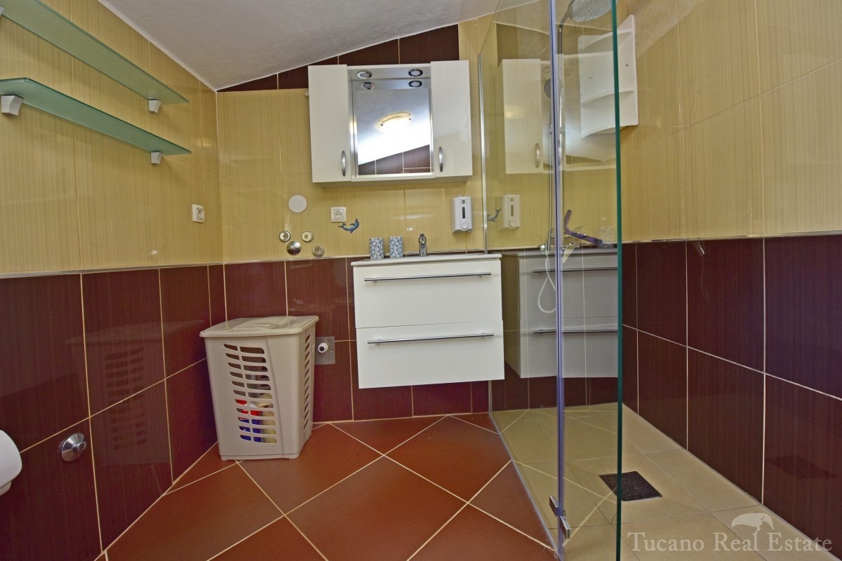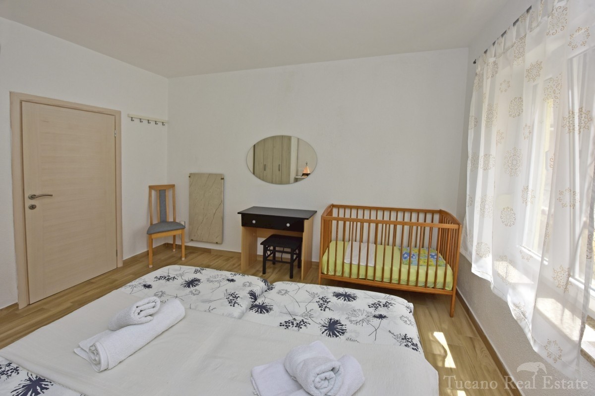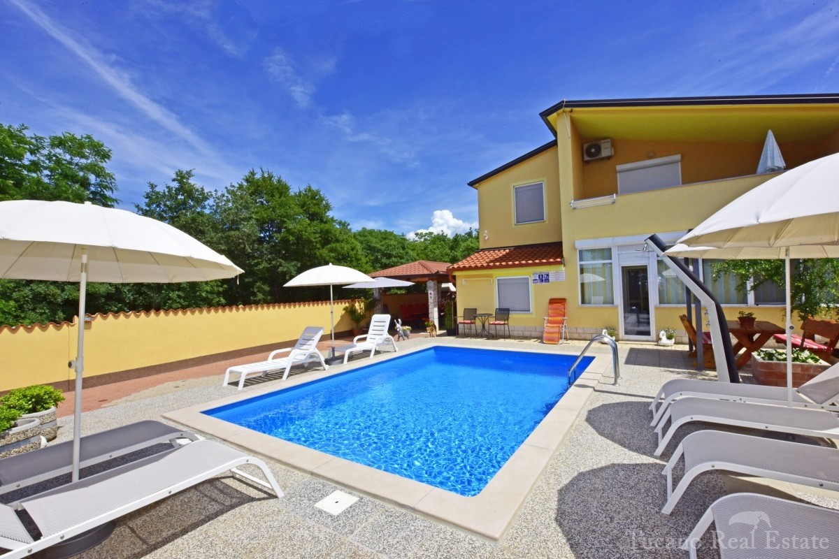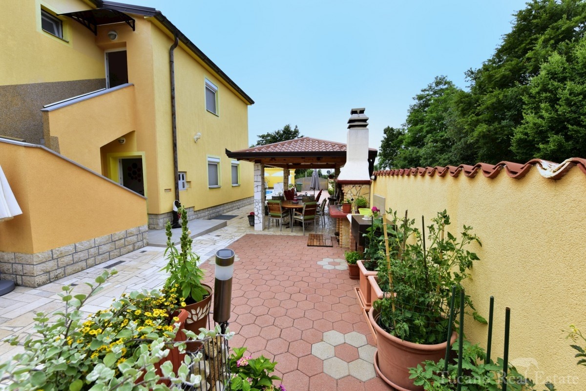 Ein wunderschönes Apartmenthaus in der Nähe der Stadt Poreč! Dieses Apartmenthaus, das über insgesamt fünf Apartments verfügt, befindet sich in der Nähe der Stadt Poreč. Seine Gesamtfläche beträgt 280 m2. Das Haus erstreckt sich über zwei Etagen, wovon s