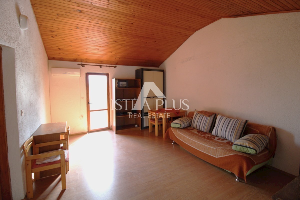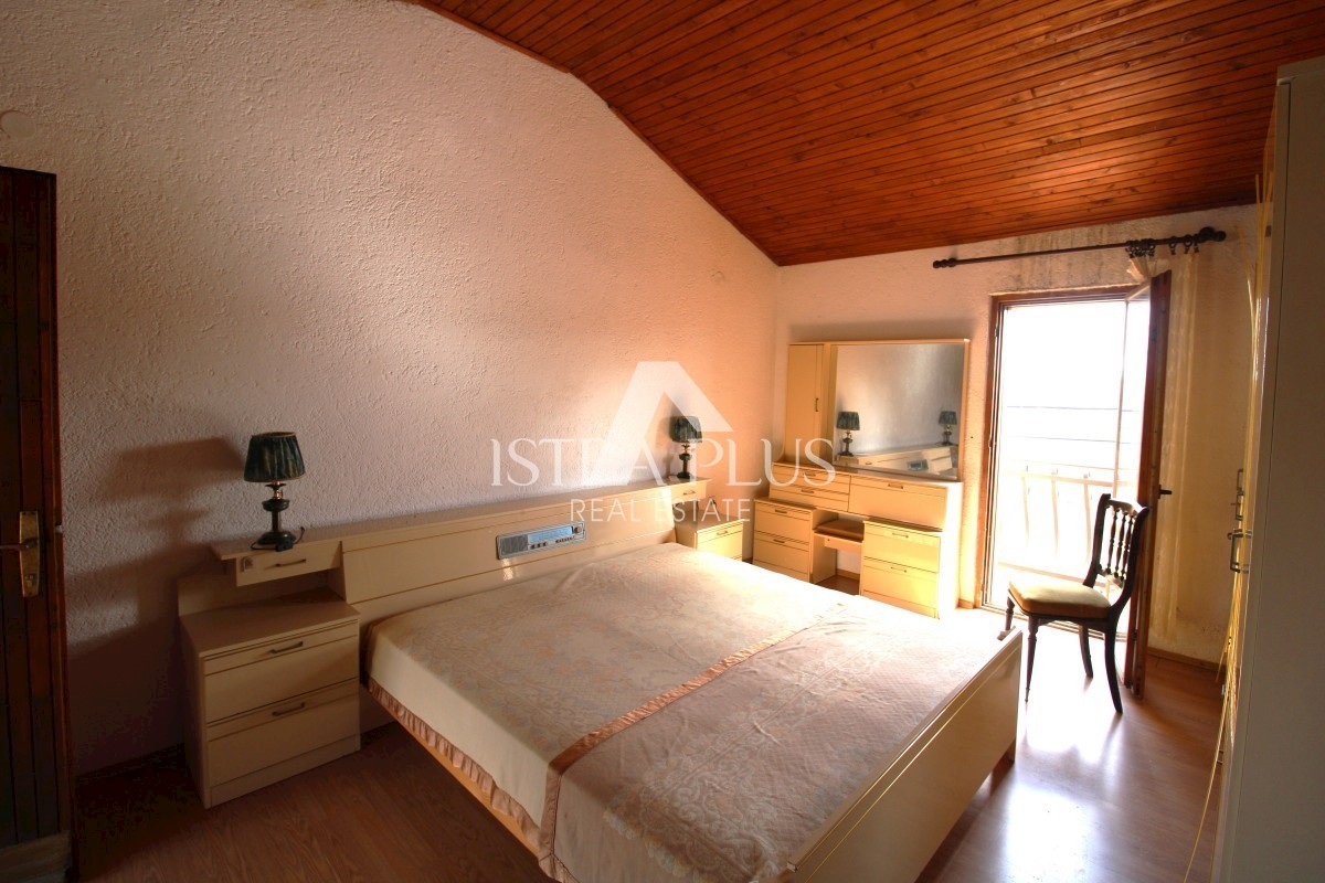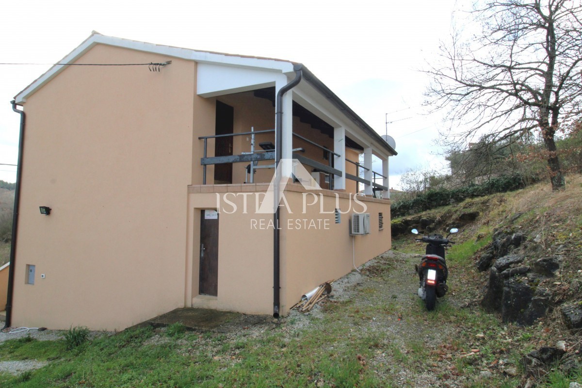 K179 Haus 14 km vom Meer und der Stadt Poreč entfernt mit Panoramablick auf Motovun. Das Haus besteht aus 2 Wohnungen im Erdgeschoss und 1. Stock. Im Erdgeschoss gibt es ein Wohnzimmer mit Esszimmer, eine Küche, 2 Schlafzimmer, ein Badezimmer und einen Ab