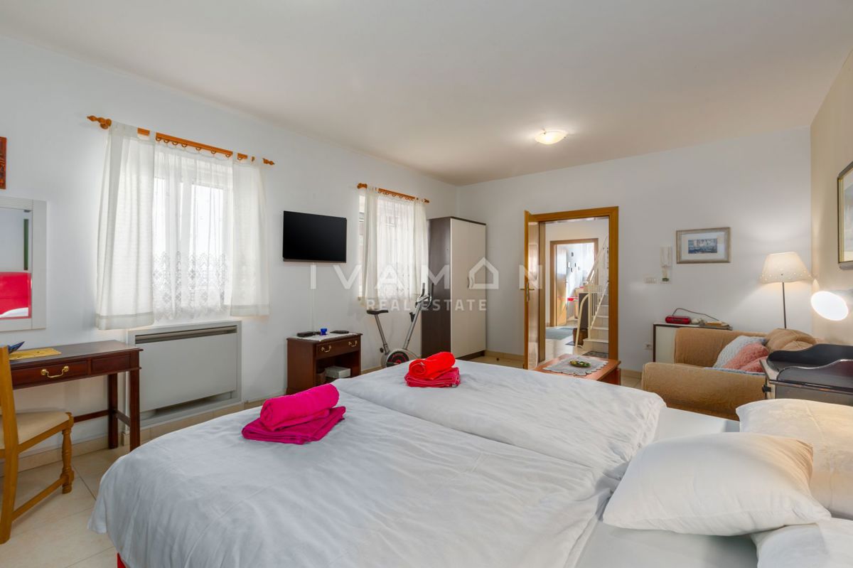 Zum Verkauf steht eine äußerst funktionale Villa mit Swimmingpool, die vollständig für Menschen mit Behinderungen geeignet ist. Im Erdgeschoss befindet sich eine Wohnung mit einem Schlafzimmer, einem Badezimmer, einem großen Wohnzimmer und einem Abstellra
