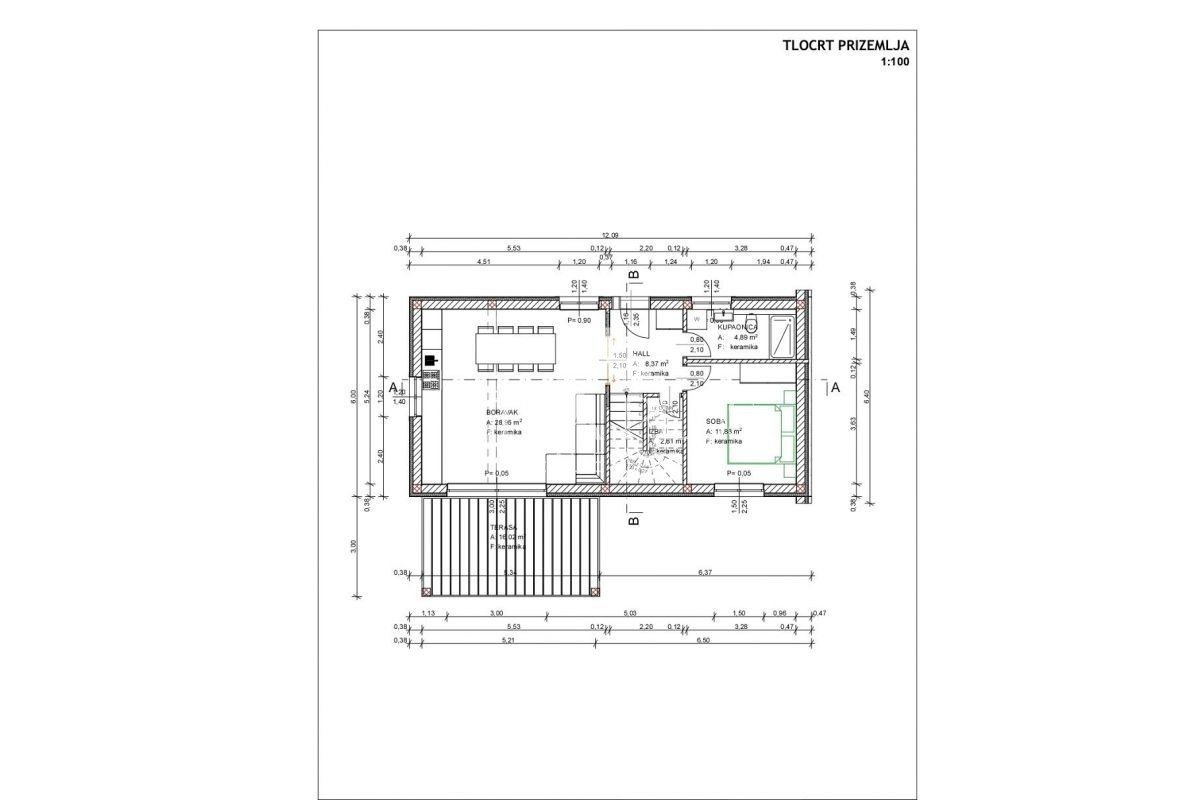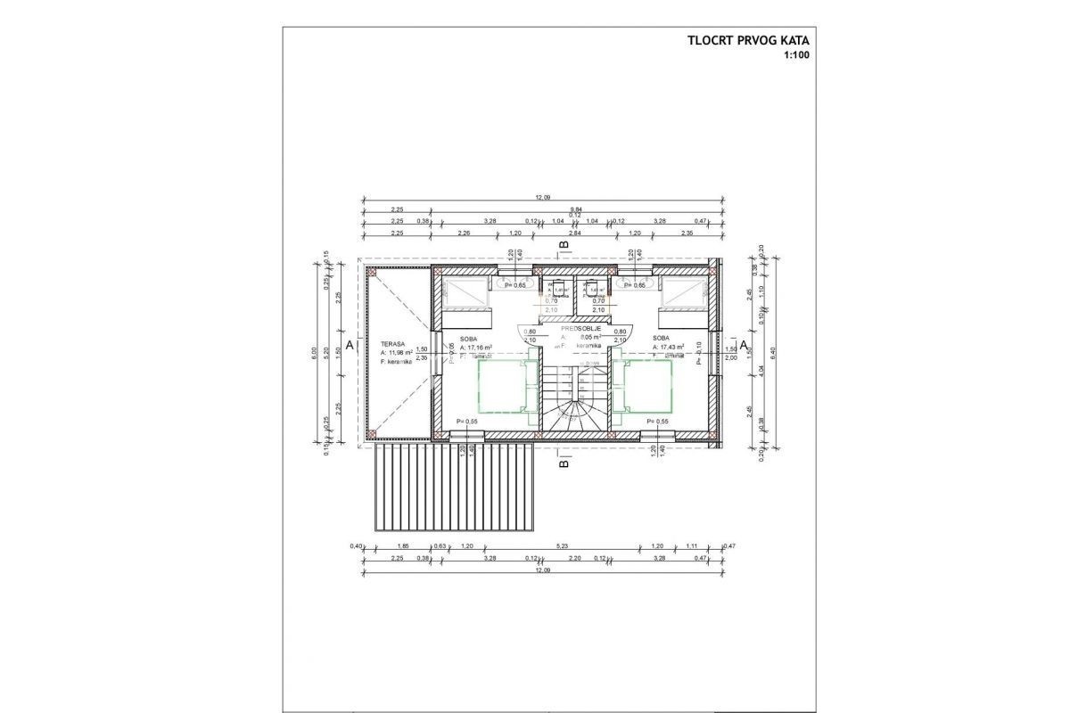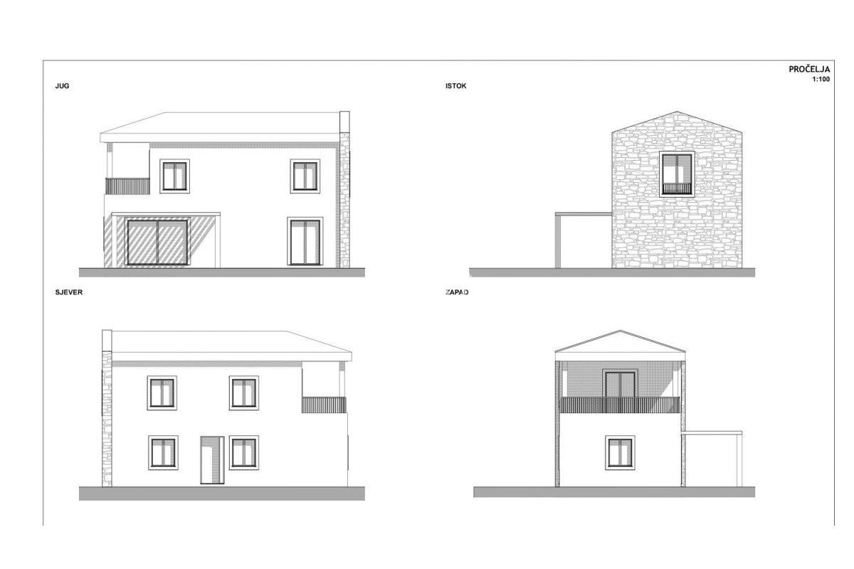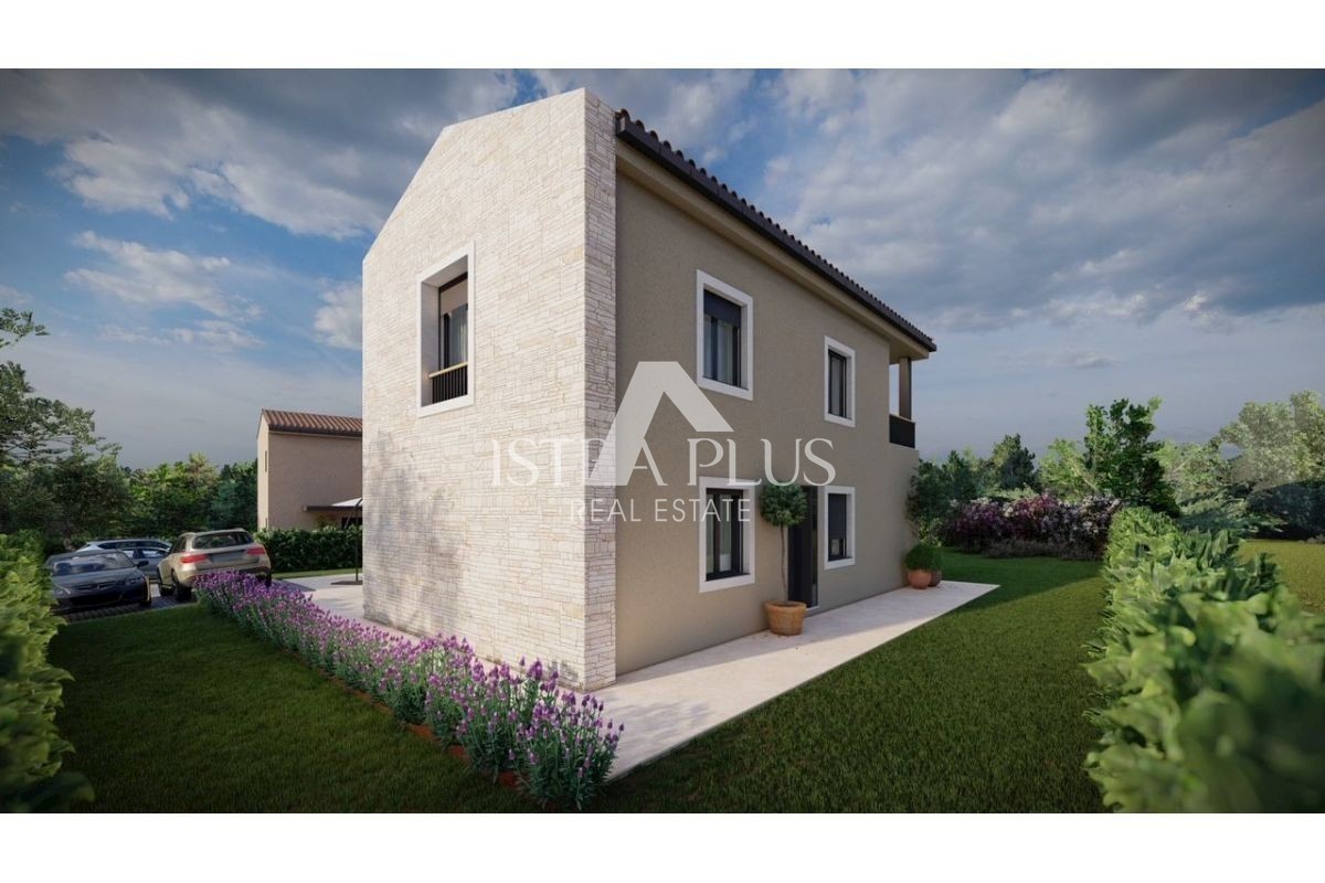 K181 Villa im Bau in der Nähe von Baderna. Die Villa besteht im Erdgeschoss aus einer Eingangshalle, einer Küche mit Esszimmer und einem Wohnzimmer, Ausgang zu einer überdachten Terrasse und einem Garten mit Swimmingpool. Im Erdgeschoss befinden sich pra