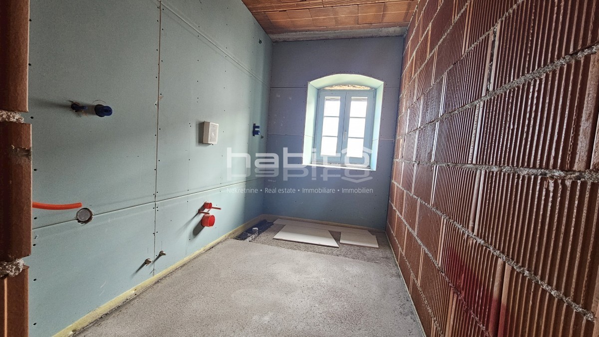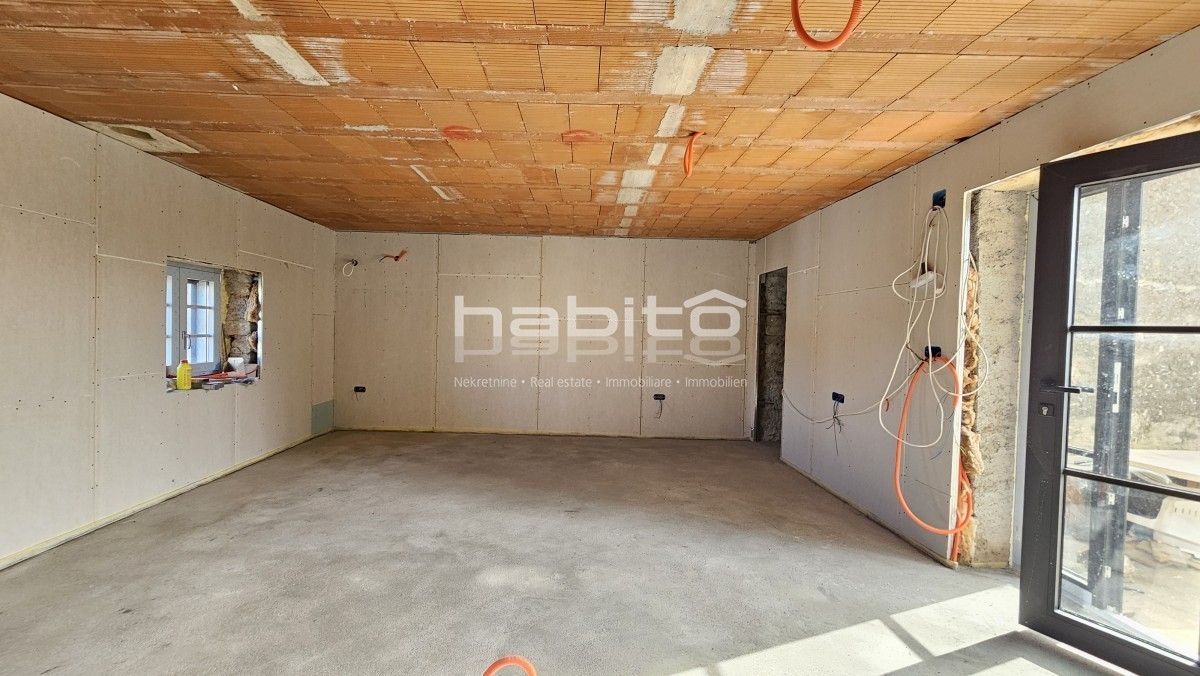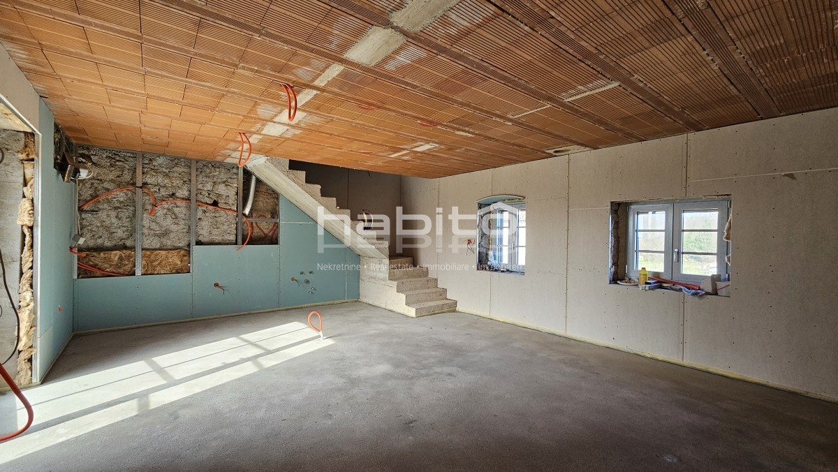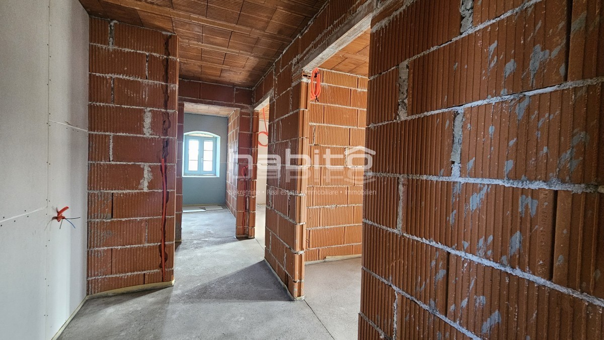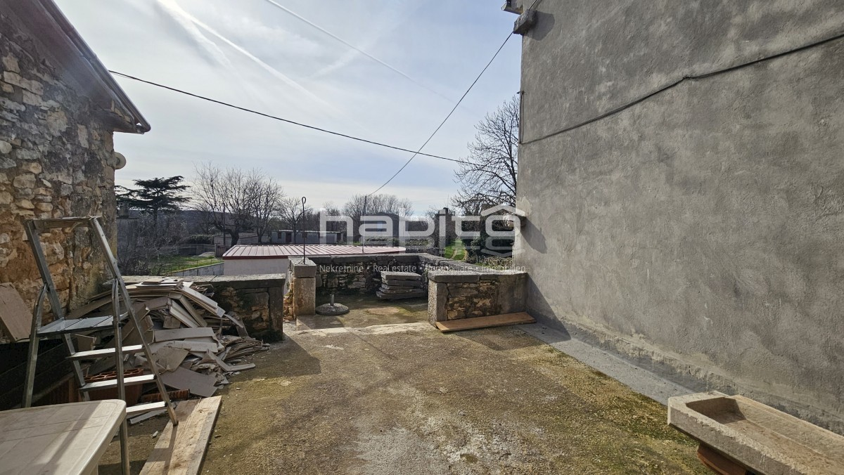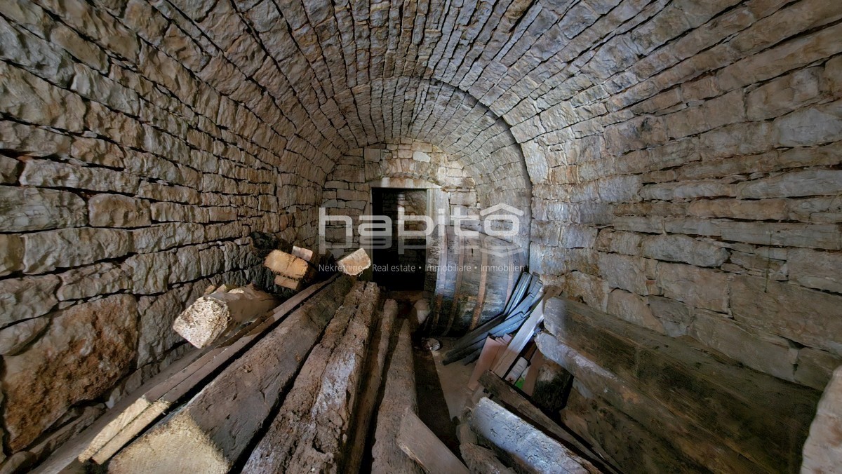 Steinhaus zum Verkauf in der Nähe von Višnjan und 15 km von Poreč entfernt Dies ist das letzte Haus in einer Reihe, das 2023 bis zur Rohbauphase renoviert wurde. Das Haus bietet 210 m2 Wohnfläche und 234 m2 Garten (mit einem Nebengebäude von ca. 35 m2 Br