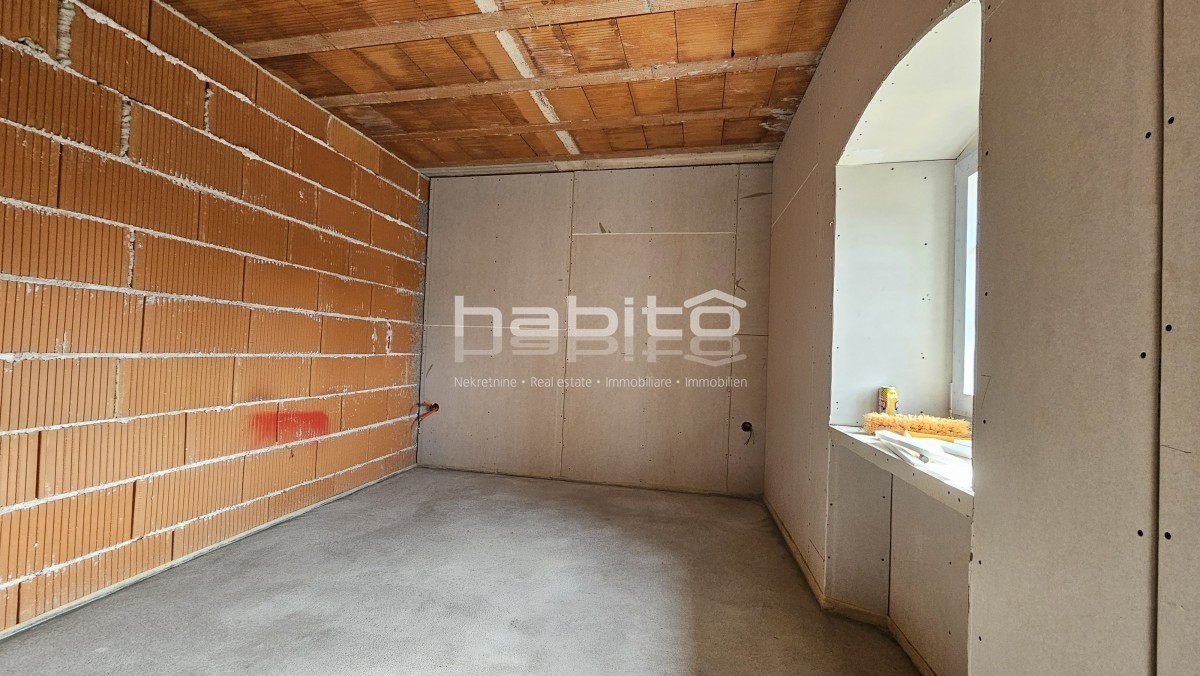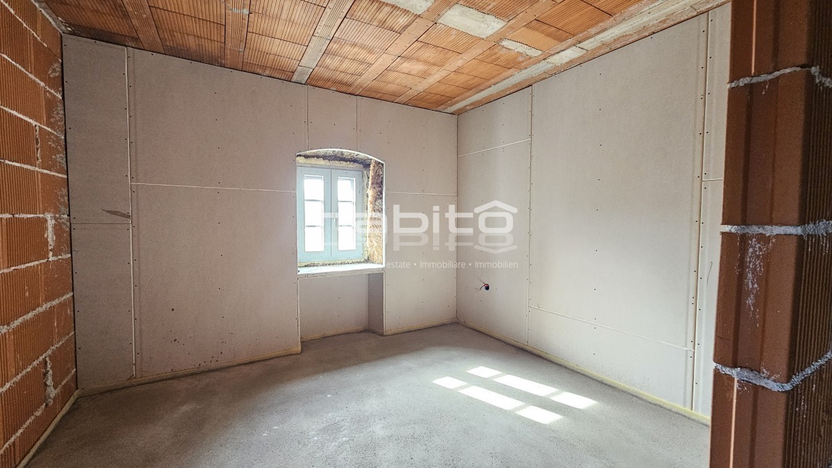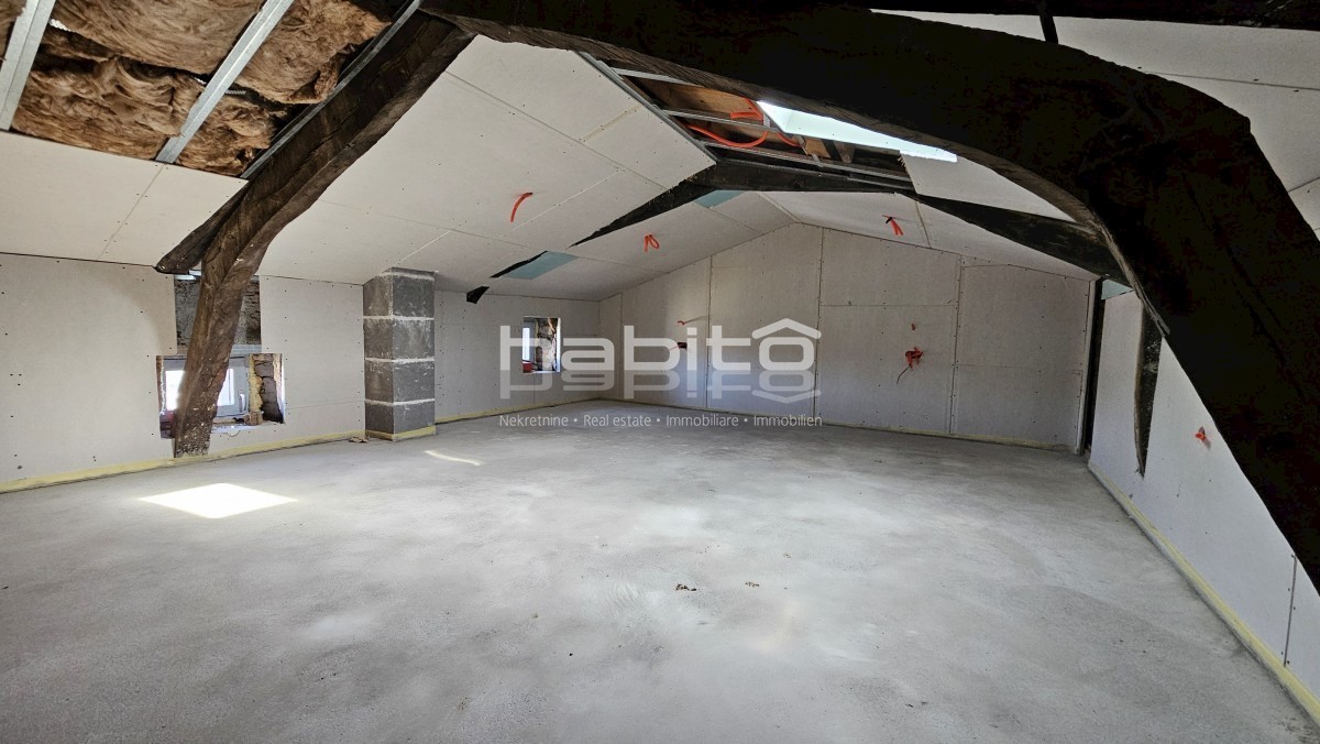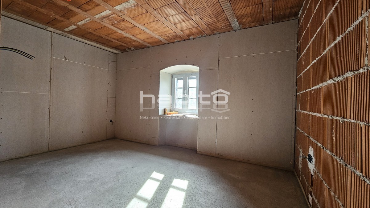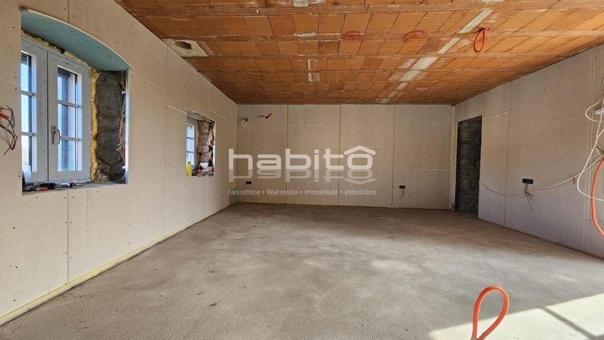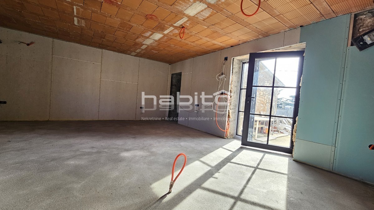 Steinhaus zum Verkauf in der Nähe von Višnjan und 15 km von Poreč entfernt Dies ist das letzte Haus in einer Reihe, das 2023 bis zur Rohbauphase renoviert wurde. Das Haus bietet 210 m2 Wohnfläche und 234 m2 Garten (mit einem Nebengebäude von ca. 35 m2 Br