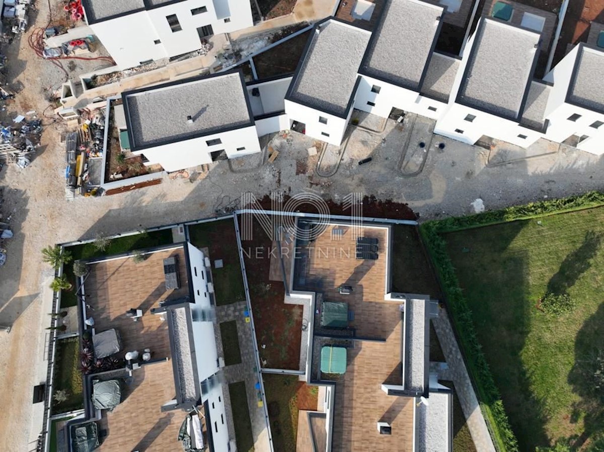 Zum Verkauf steht eine wunderschöne Villa mit Meerblick, nur 1000 m vom öffentlichen Stadtstrand entfernt. Es liegt in einem elitären Teil von Poreč, umgeben von Villen mit Swimmingpools und Ferienimmobilien. Dieses moderne Reihenhaus mit einer Größe von