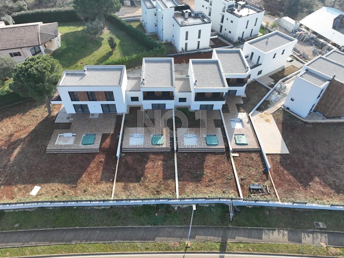 Zum Verkauf steht eine wunderschöne Villa mit Meerblick, nur 1000 m vom öffentlichen Stadtstrand entfernt. Es liegt in einem elitären Teil von Poreč, umgeben von Villen mit Swimmingpools und Ferienimmobilien. Dieses moderne Reihenhaus mit einer Größe von