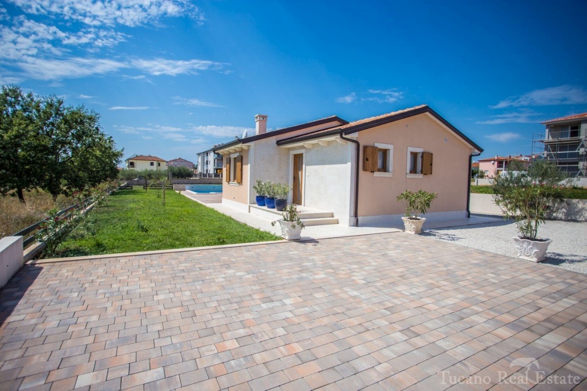Zum Verkauf stehen ein einstöckiges Haus und ein Grundstück mit einem Projekt in der Nähe von Poreč. Die Größe des Hauses beträgt 85m2, es befindet sich auf einer Hälfte des Grundstücks, 500m2 Grundstück sind komplett eingezäunt. Auf der anderen Hälfte