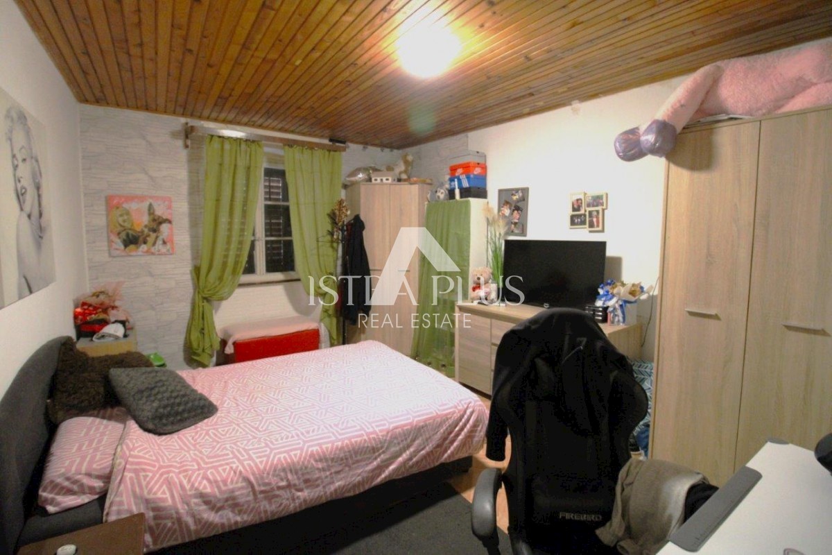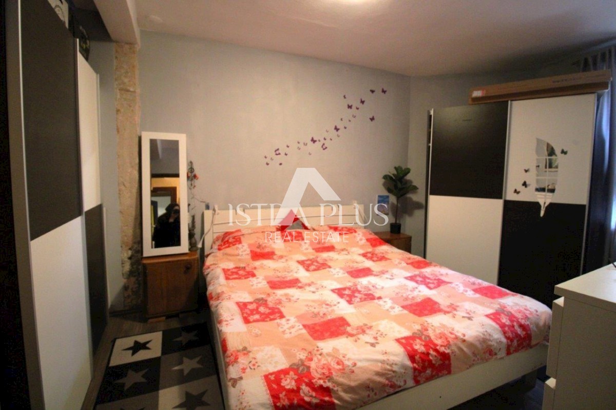 S194 GELEGENHEIT! Ein Steinhaus im Zentrum der kleinen malerischen Stadt Sv. Lovreč auf 3 Etagen Erdgeschoss: Flur, Schlafzimmer, Küche und Esszimmer mit Wohnzimmer, Badezimmer, Flur und einem Raum, der derzeit als Abstellraum und Fitnessraum dient und e