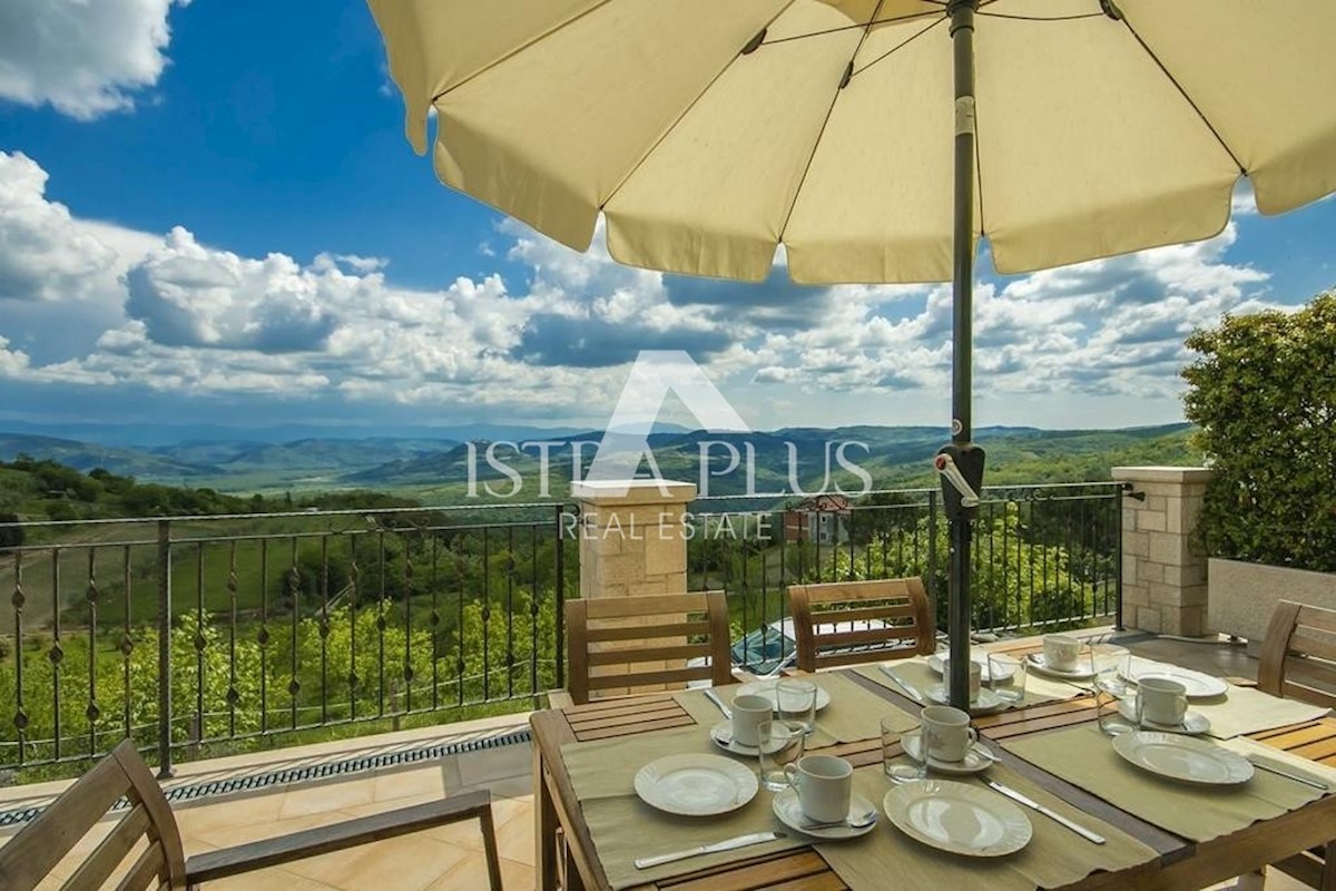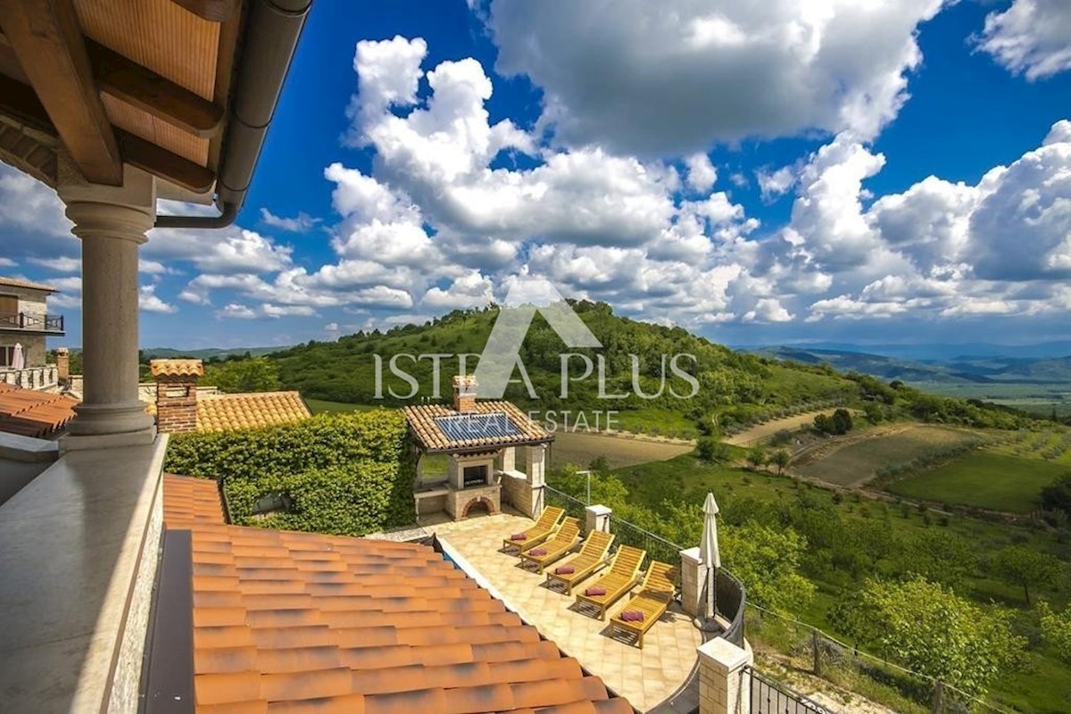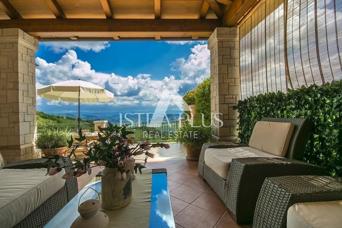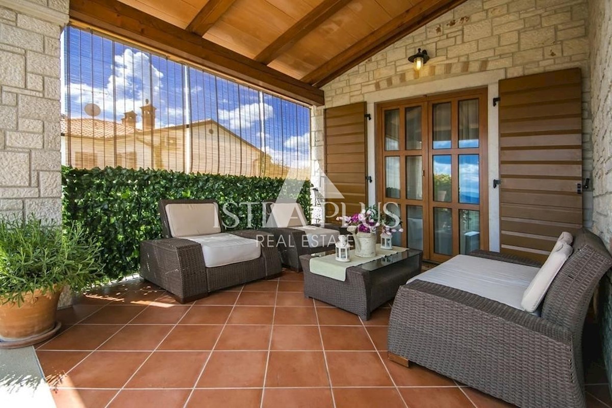 K440 Neu erbaute rustikale Villa am Rande einer malerischen Stadt in Zentralistrien, 18 km von Poreč und 17 km vom Meer entfernt. Das Hauptmerkmal des Hauses ist ein wunderschöner Panoramablick auf die grünen Hügel und das Tal des Flusses Mirna sowie auf