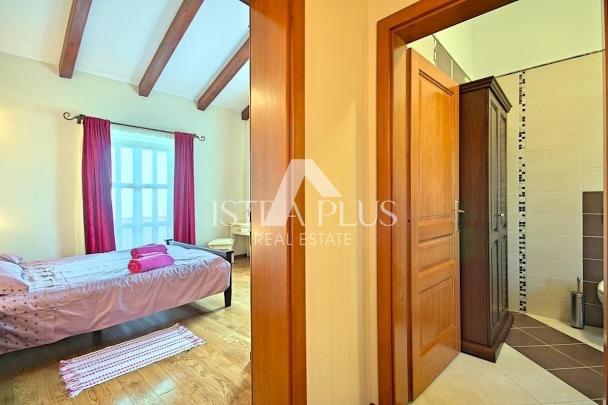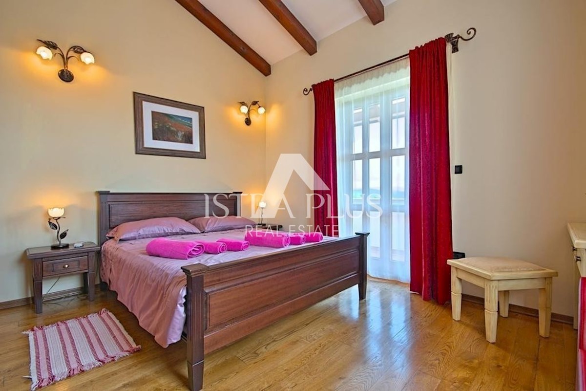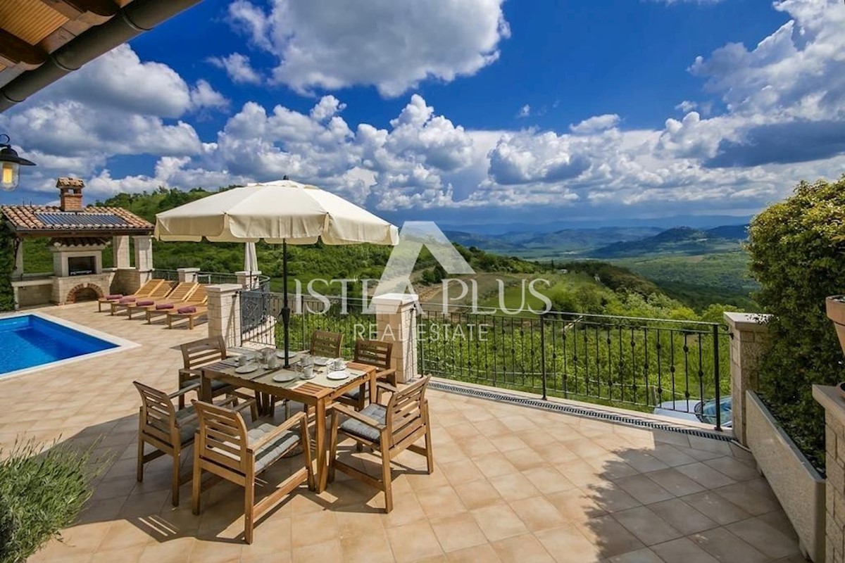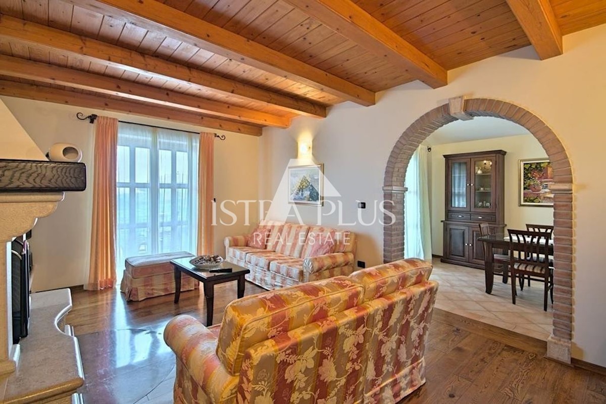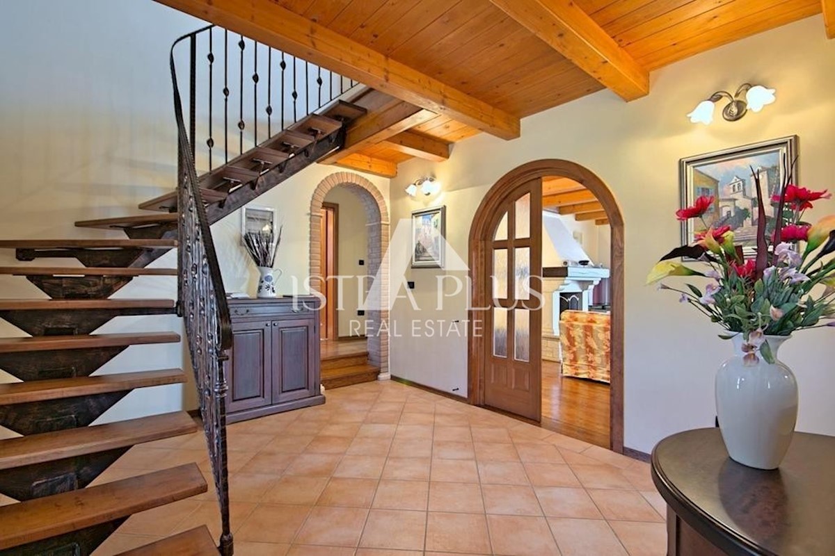 K440 Neu erbaute rustikale Villa am Rande einer malerischen Stadt in Zentralistrien, 18 km von Poreč und 17 km vom Meer entfernt. Das Hauptmerkmal des Hauses ist ein wunderschöner Panoramablick auf die grünen Hügel und das Tal des Flusses Mirna sowie auf