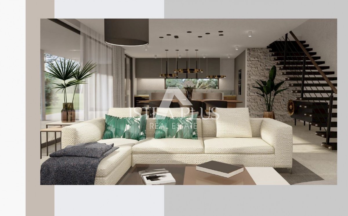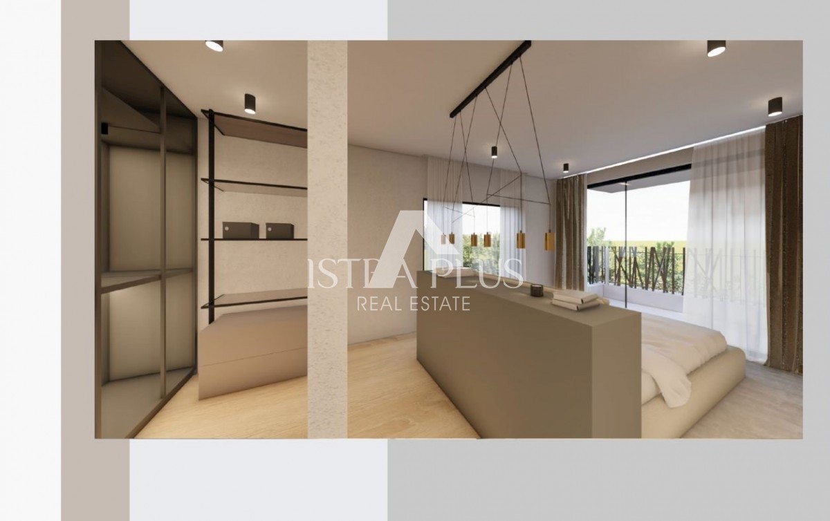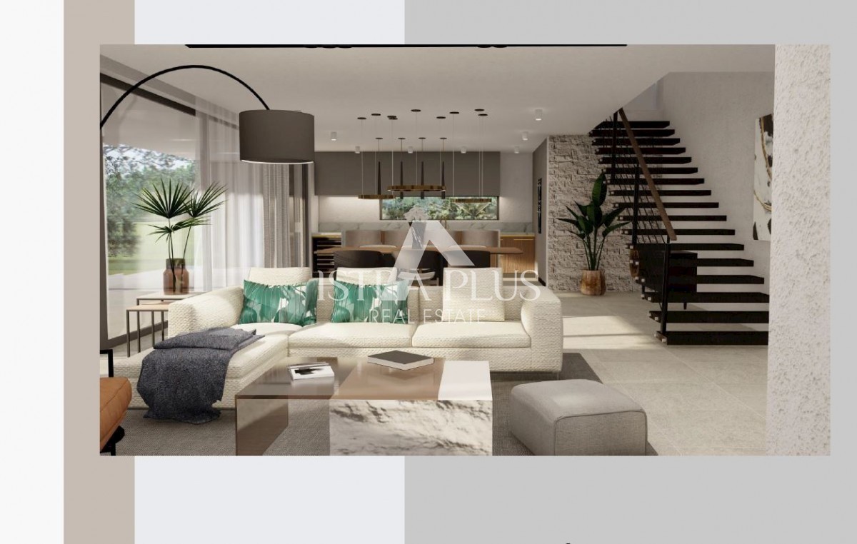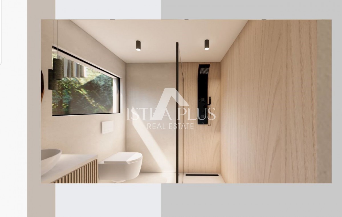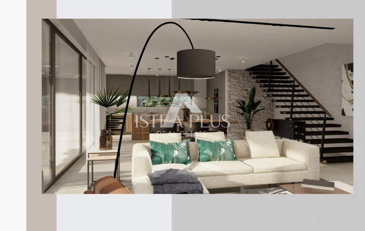 K197 Modern villa with swimming pool and roof terrace 300m from the sea. The villa will spread over three floors, ground floor, first floor and roof terrace. On the ground floor there is a guest toilet, boiler room/laundry room, spacious living room, kitc