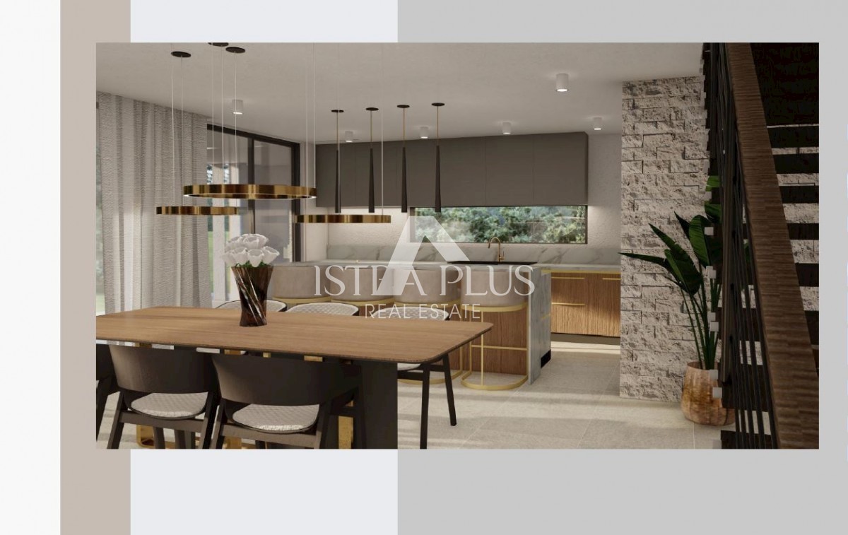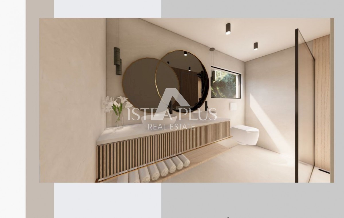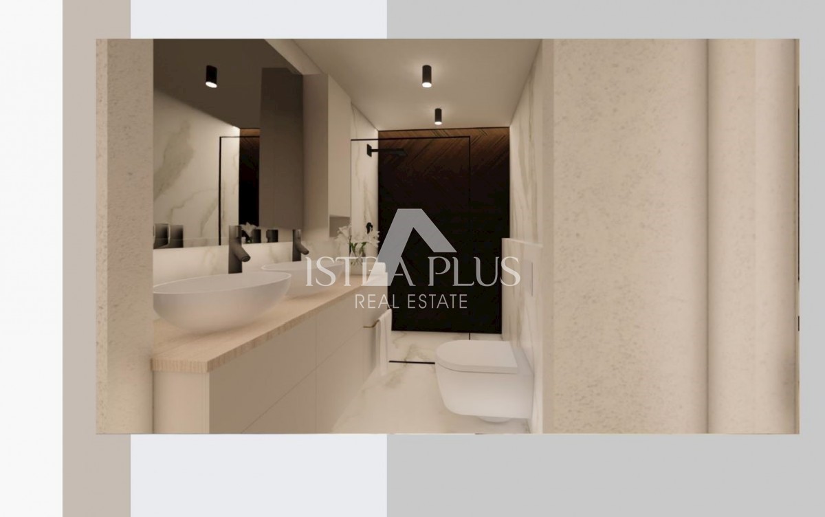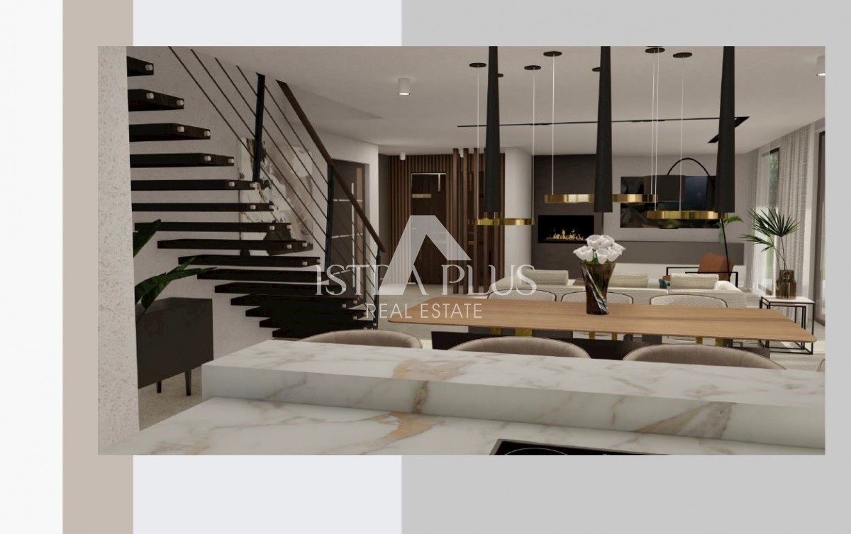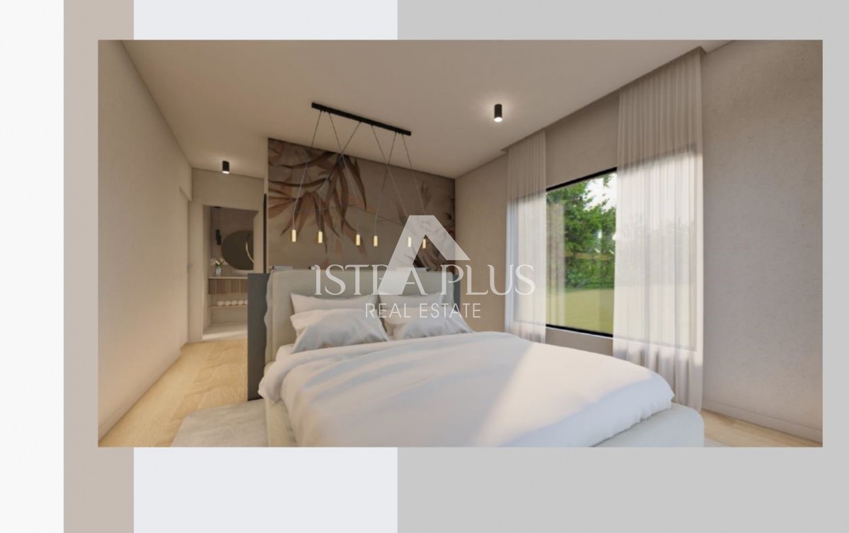 K197 Modern villa with swimming pool and roof terrace 300m from the sea. The villa will spread over three floors, ground floor, first floor and roof terrace. On the ground floor there is a guest toilet, boiler room/laundry room, spacious living room, kitc
