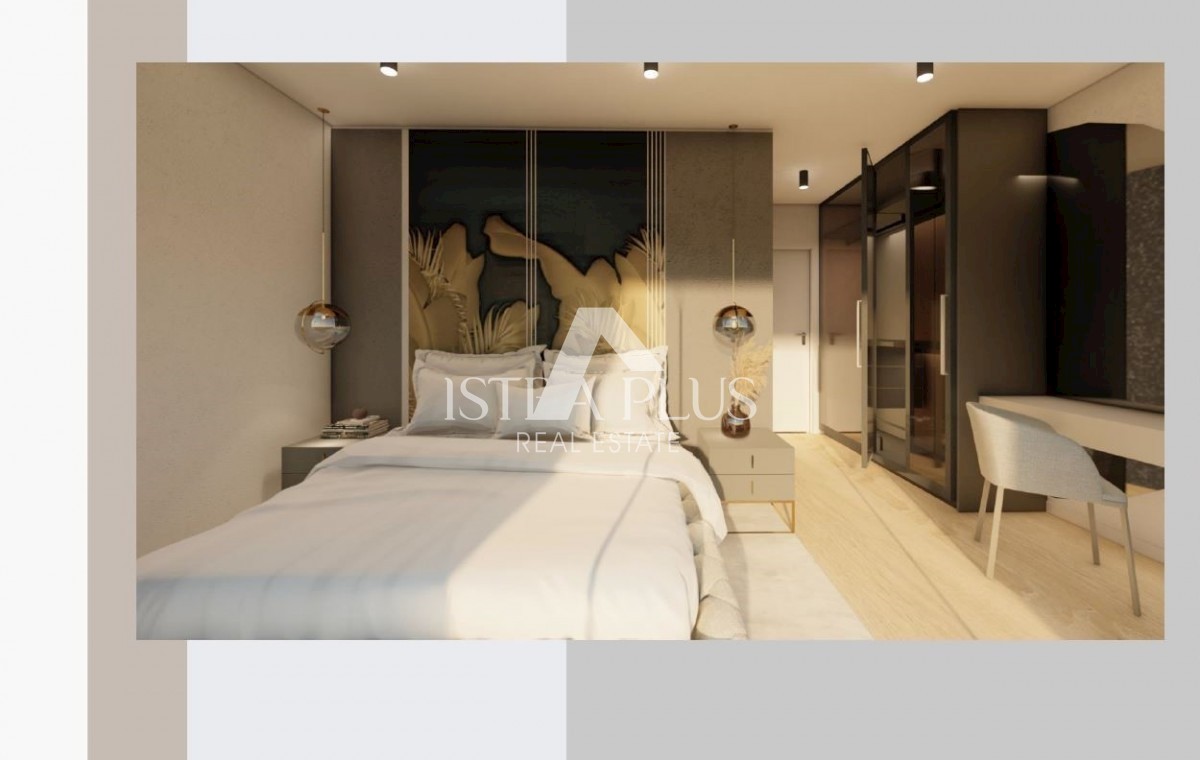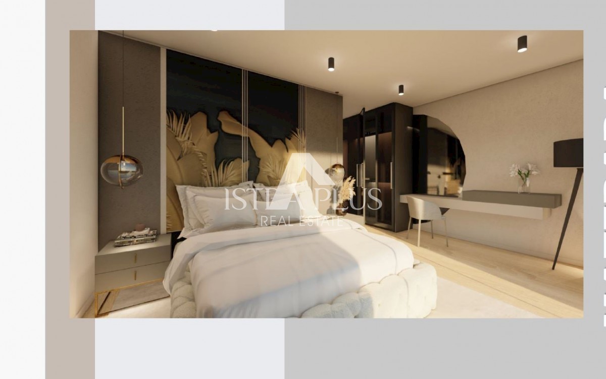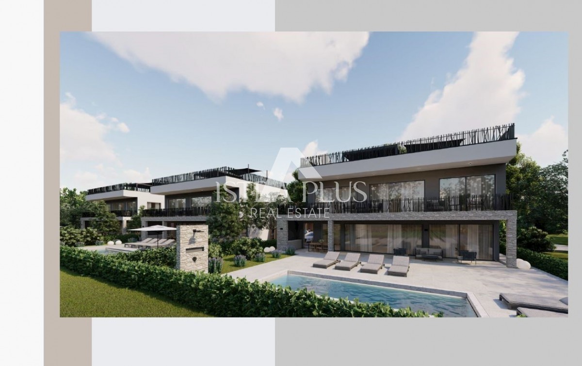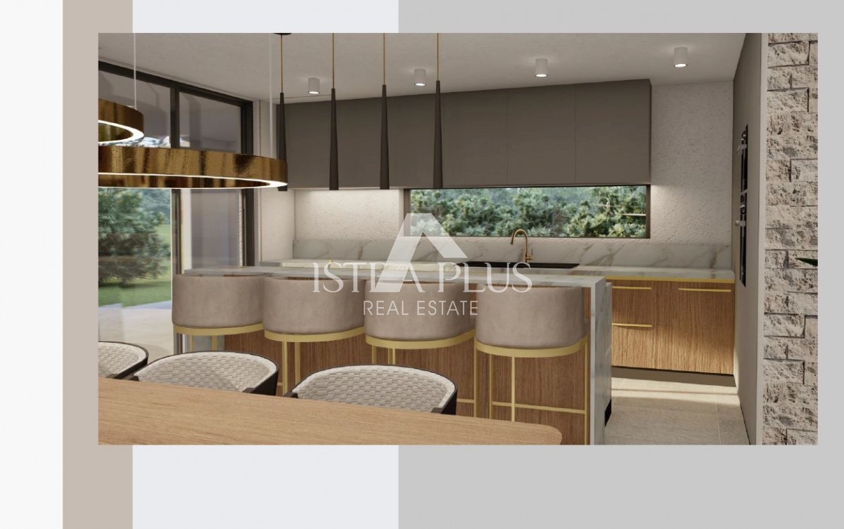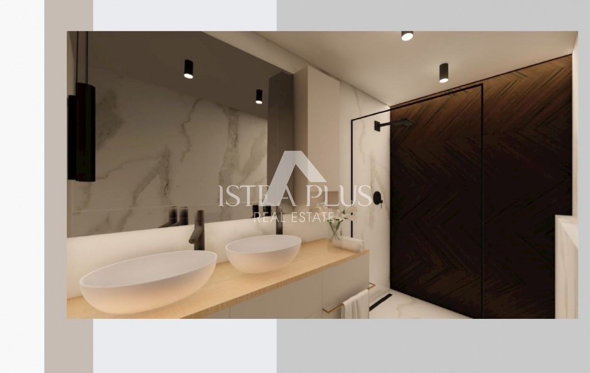 K197 Modern villa with swimming pool and roof terrace 300m from the sea. The villa will spread over three floors, ground floor, first floor and roof terrace. On the ground floor there is a guest toilet, boiler room/laundry room, spacious living room, kitc