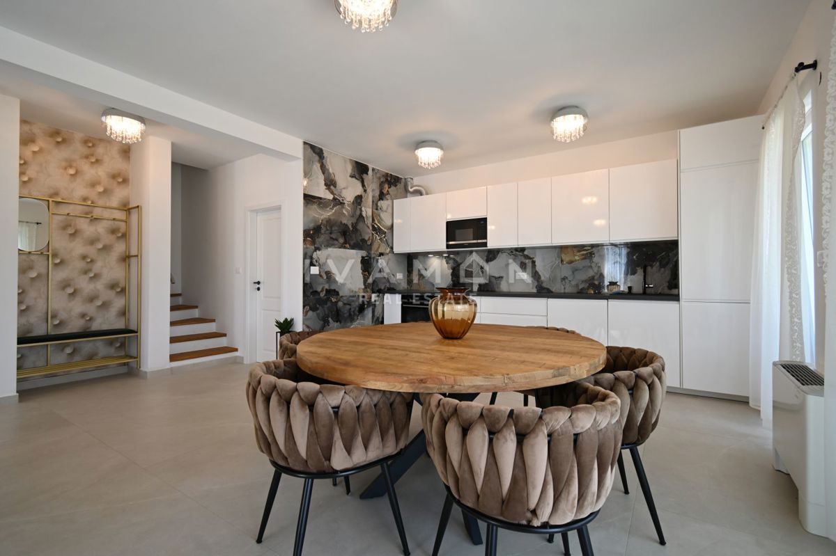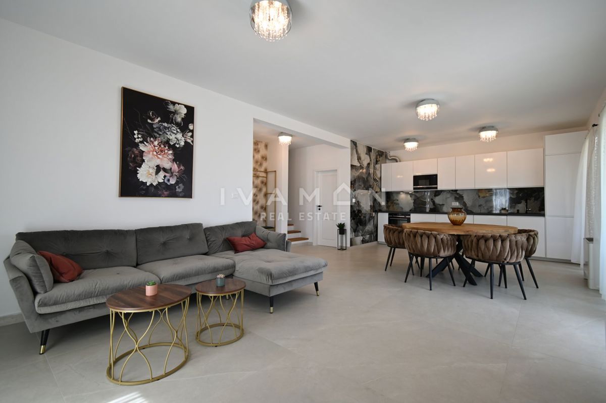 Zum Verkauf: Schönes, neues Haus in unmittelbarer Nähe von Poreč. Befindet sich in einem kleinen Ort mit allen notwendigen Annehmlichkeiten für das Leben, nur 3 km vom Strand entfernt. Das Haus hat eine Fläche von 124 m2, ideal verteilt auf das Erdgescho