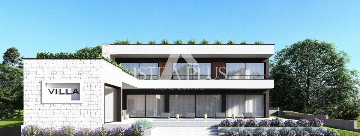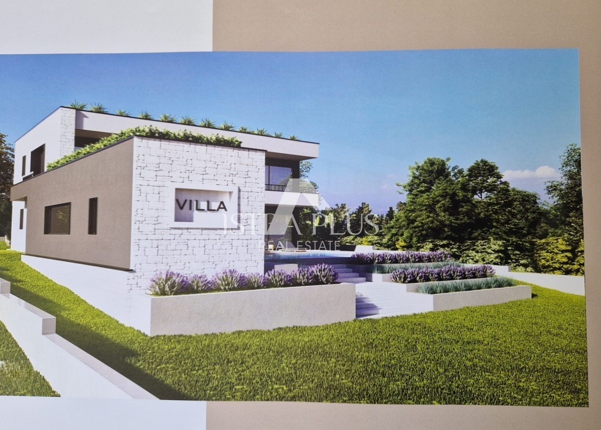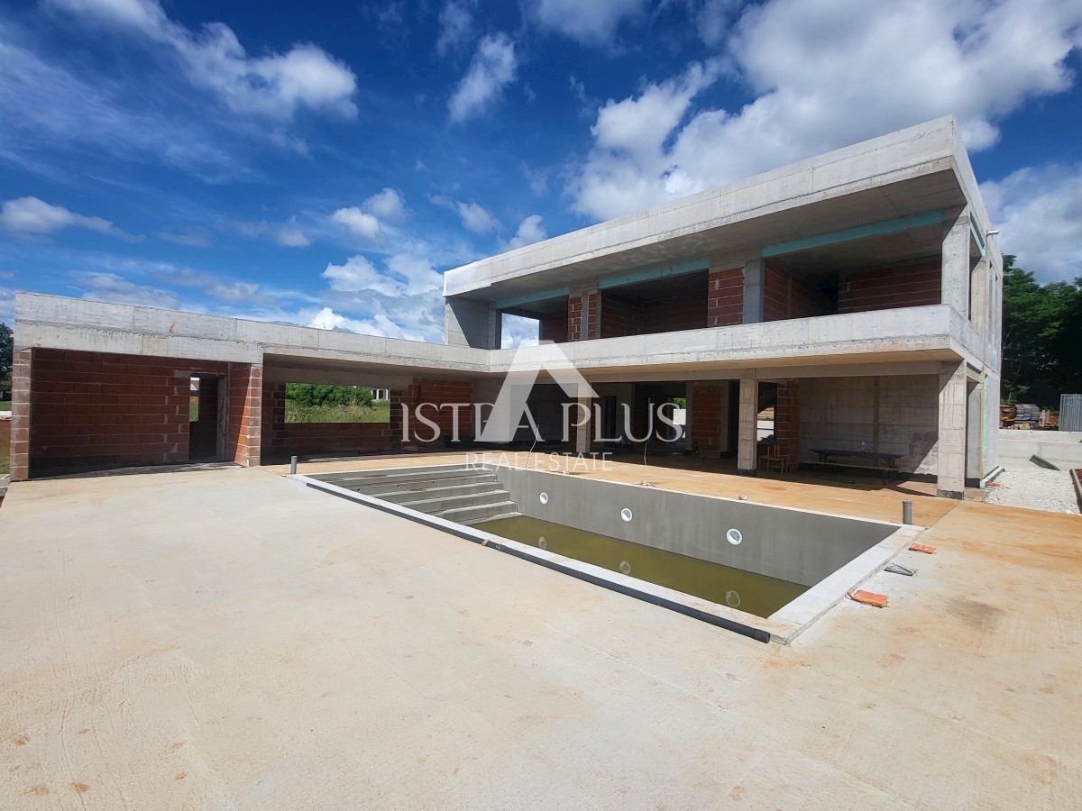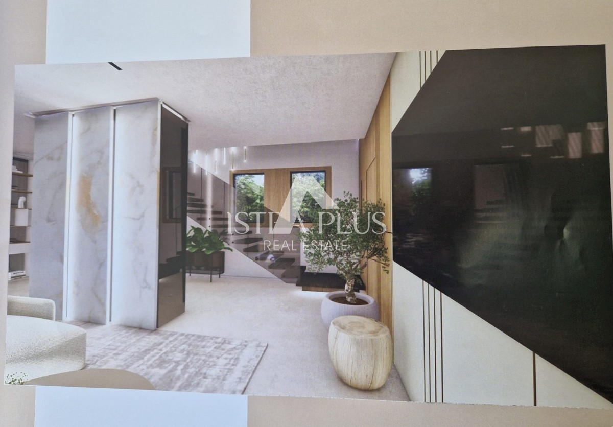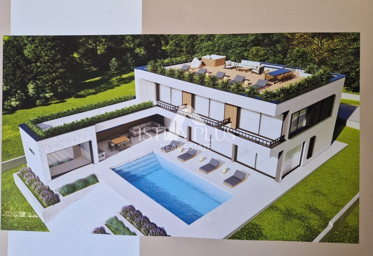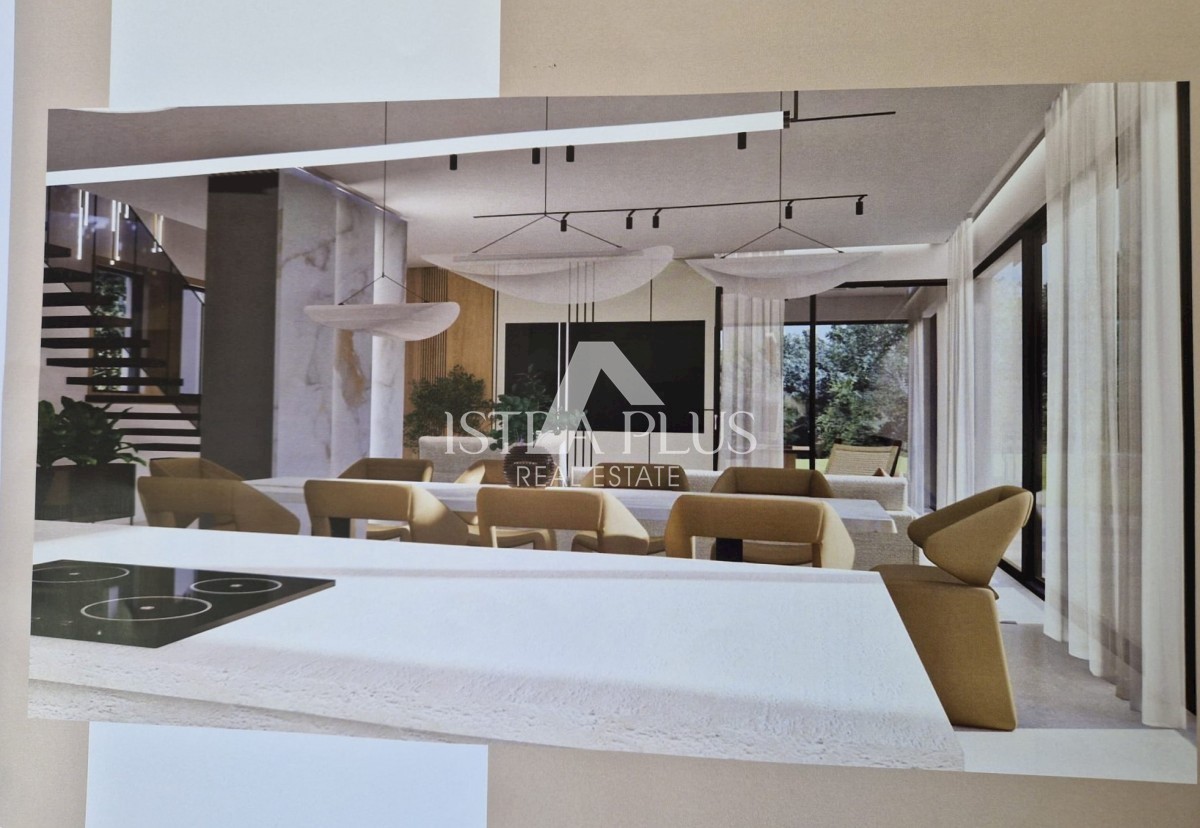 K208 Luxusvilla mit Pool – Umgebung von Poreč Die Villa befindet sich auf einem Grundstück von 1388 m2 und erstreckt sich über zwei Etagen. Im Erdgeschoss gibt es einen überdachten Eingang, durch den man die Villa betritt, wo sich ein Wohnzimmer, eine Küc